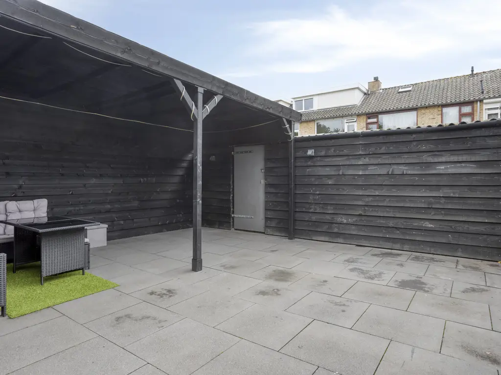 De zonnige tuin ligt op het zuiden en beschikt over een overkapping, waardoor je ook op minder zonnige dagen van buiten kunt genieten. Het vrije uitzicht over het water maakt de tuin compleet.