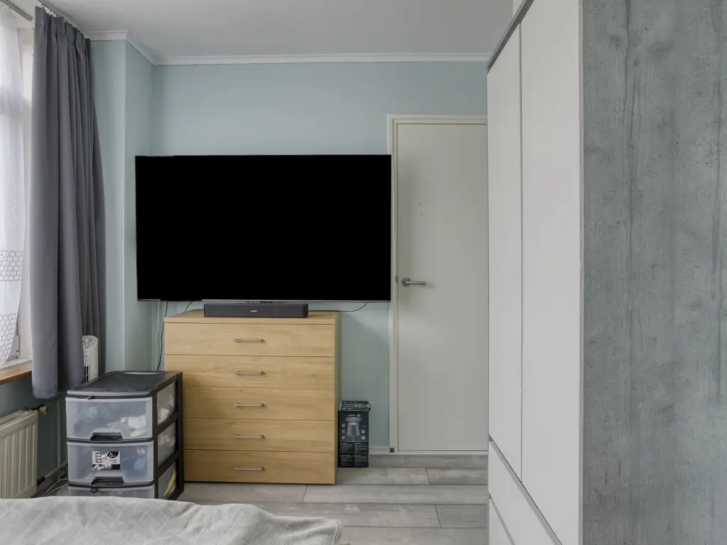 De tweede verdieping biedt een overloop met ketelopstelling en wasmachineaansluiting. De ruime slaapkamer met dakkapel over de volledige breedte zorgt voor veel lichtinval en een ruimtelijk gevoel. Perfect als tienerkamer, kantoor of hobbyruimte.
