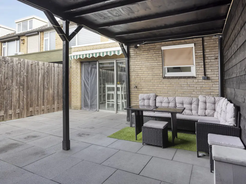 De zonnige tuin ligt op het zuiden en beschikt over een overkapping, waardoor je ook op minder zonnige dagen van buiten kunt genieten. Het vrije uitzicht over het water maakt de tuin compleet.