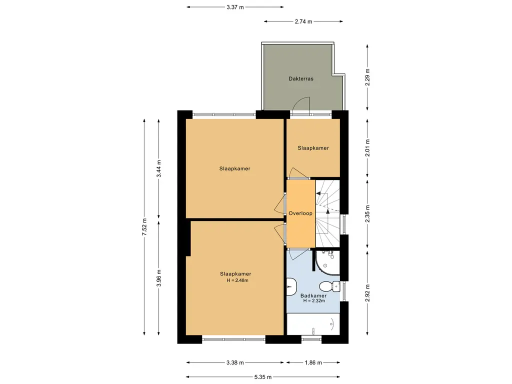 Hier bevinden zich twee ruime slaapkamers en een derde kleinere kamer, ideaal als studeer- of babykamer.