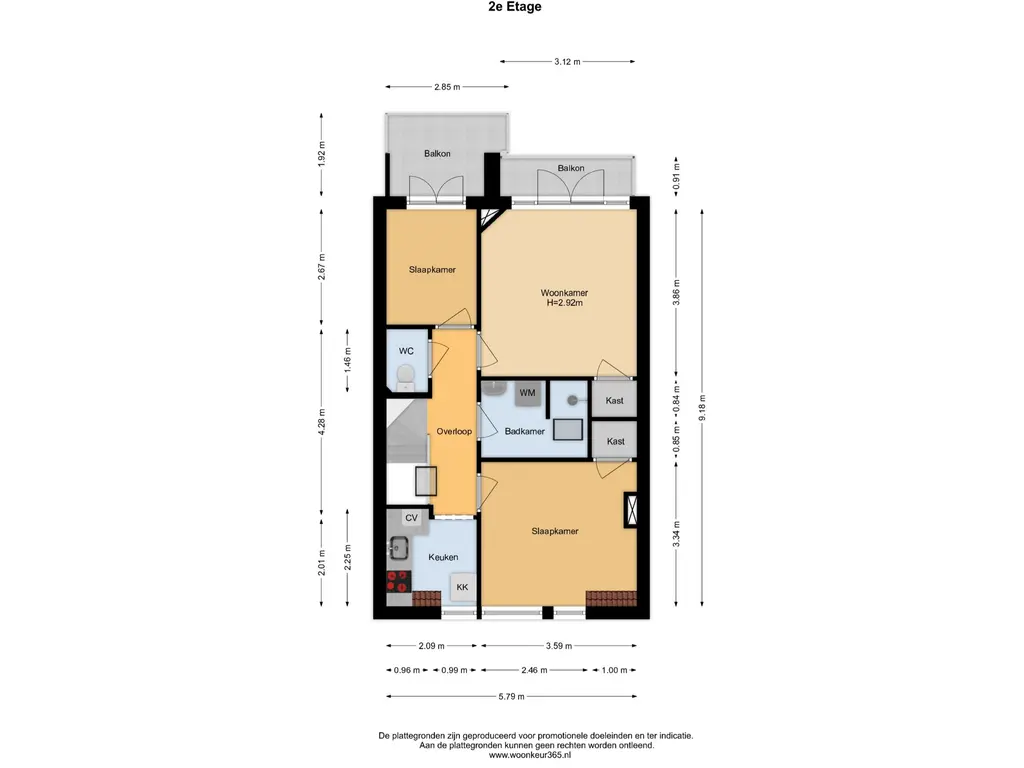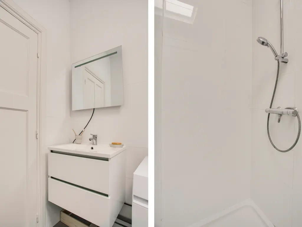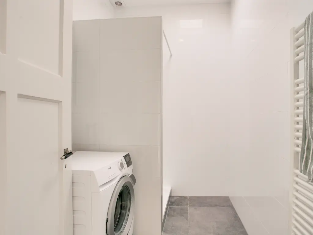 Er zijn twee slaapkamers: een ruime kamer aan de voorzijde en een  tweede kamer aan de achterzijde, ideaal als werkplek of logeerkamer. Ook deze kamer heeft openslaande deuren naar het achterbalkon. De badkamer is fris en compact met een douche, wastafelmeubel en aansluiting voor de wasmachine. Het toilet is apart.