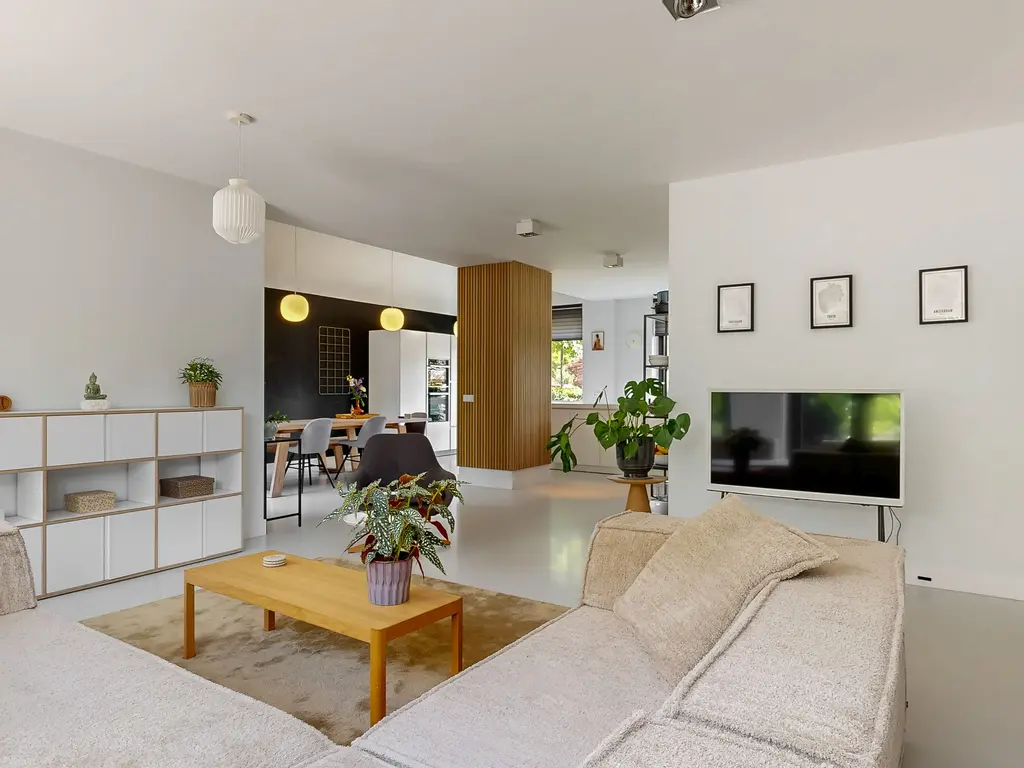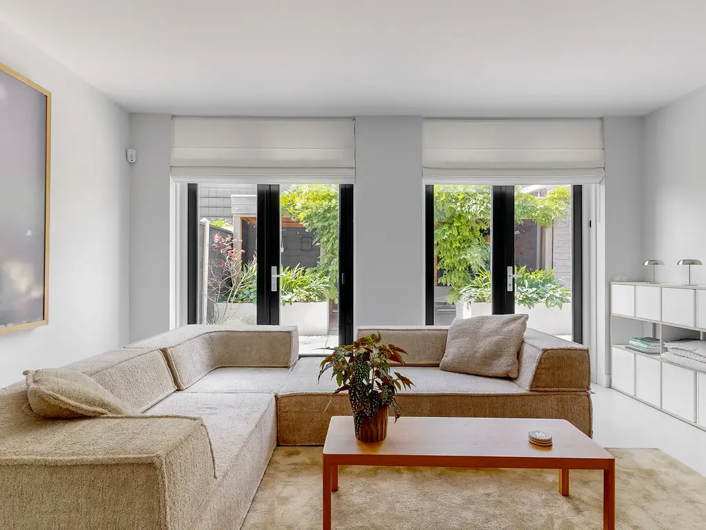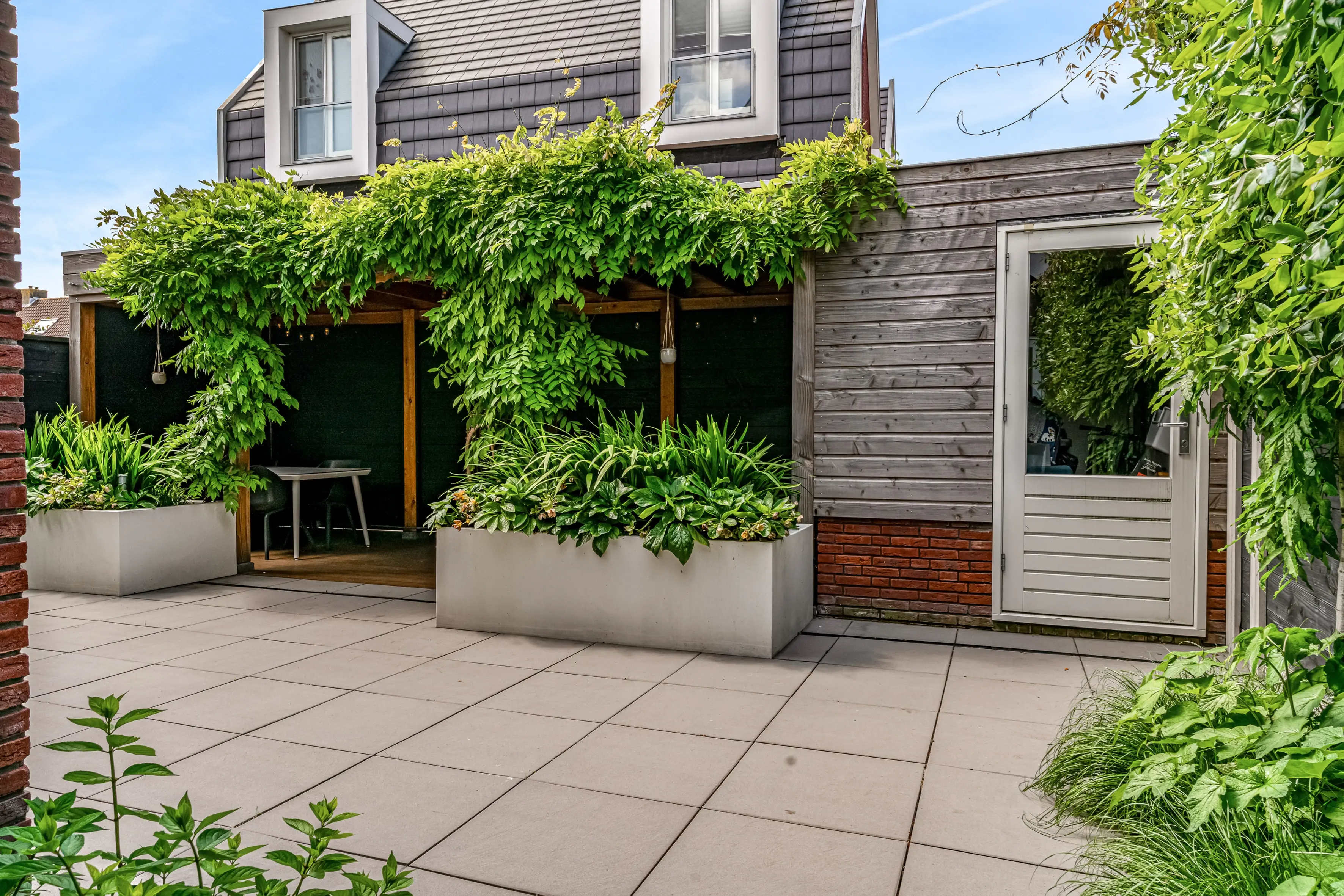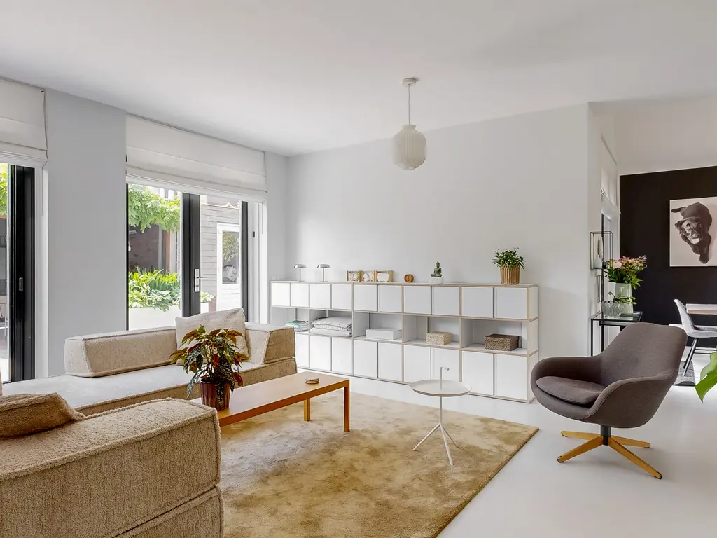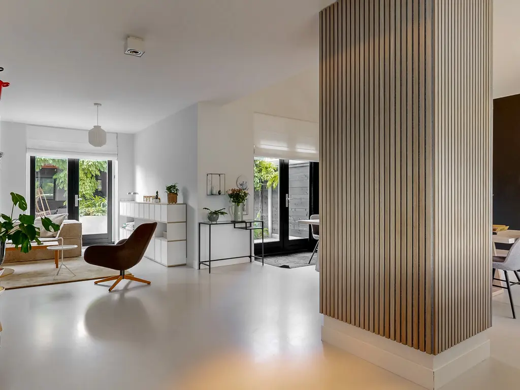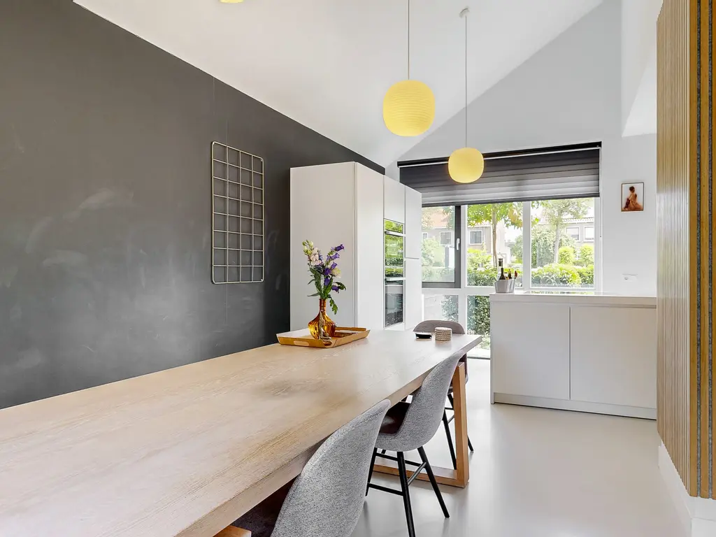 Voortuin en oprit met plaats voor twee auto’s op eigen terrein. Entree, hal met toilet, meterkast, trap naar de verdieping, een kast en toegang tot de keuken en woonkamer. De mooie Bulthaup keuken aan de voorzijde van de woning is van alle moderne gemakken en (inbouw)apparatuur voorzien. Zo heeft het bijvoorbeeld een inductie kookplaat met ingebouwde afzuigkap, een Quooker, vaatwasser, koel-/ vriescombinatie, een oven en een combi-stoomoven. Dankzij de uitbouw aan de zijkant is er extra veel leefruimte gecreëerd in de lichte woonkamer. De royale woonkamer heeft een moderne gietvloer met vloerverwarming, glad gestuukte muren en plafond en via de openslaande deuren heeft u toegang tot de zonnige en verzorgde achtertuin, waar je heerlijk kunt genieten van het buitenleven. In de tuin staat een heerlijke veranda met berging. ideaal voor fietsen en opslag.