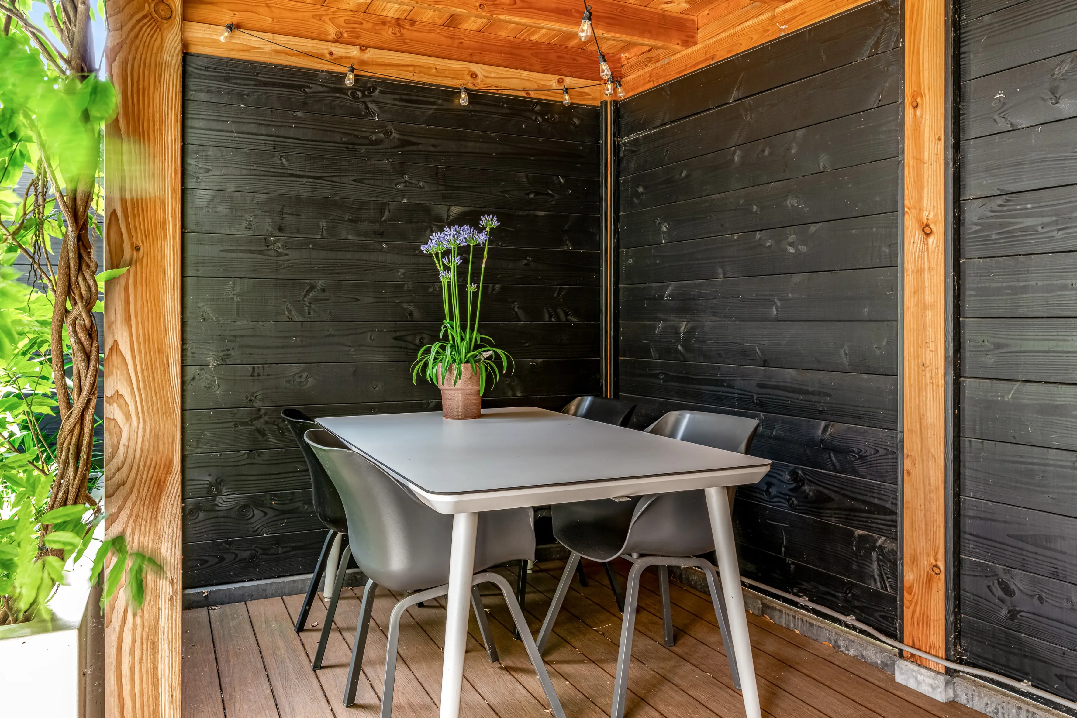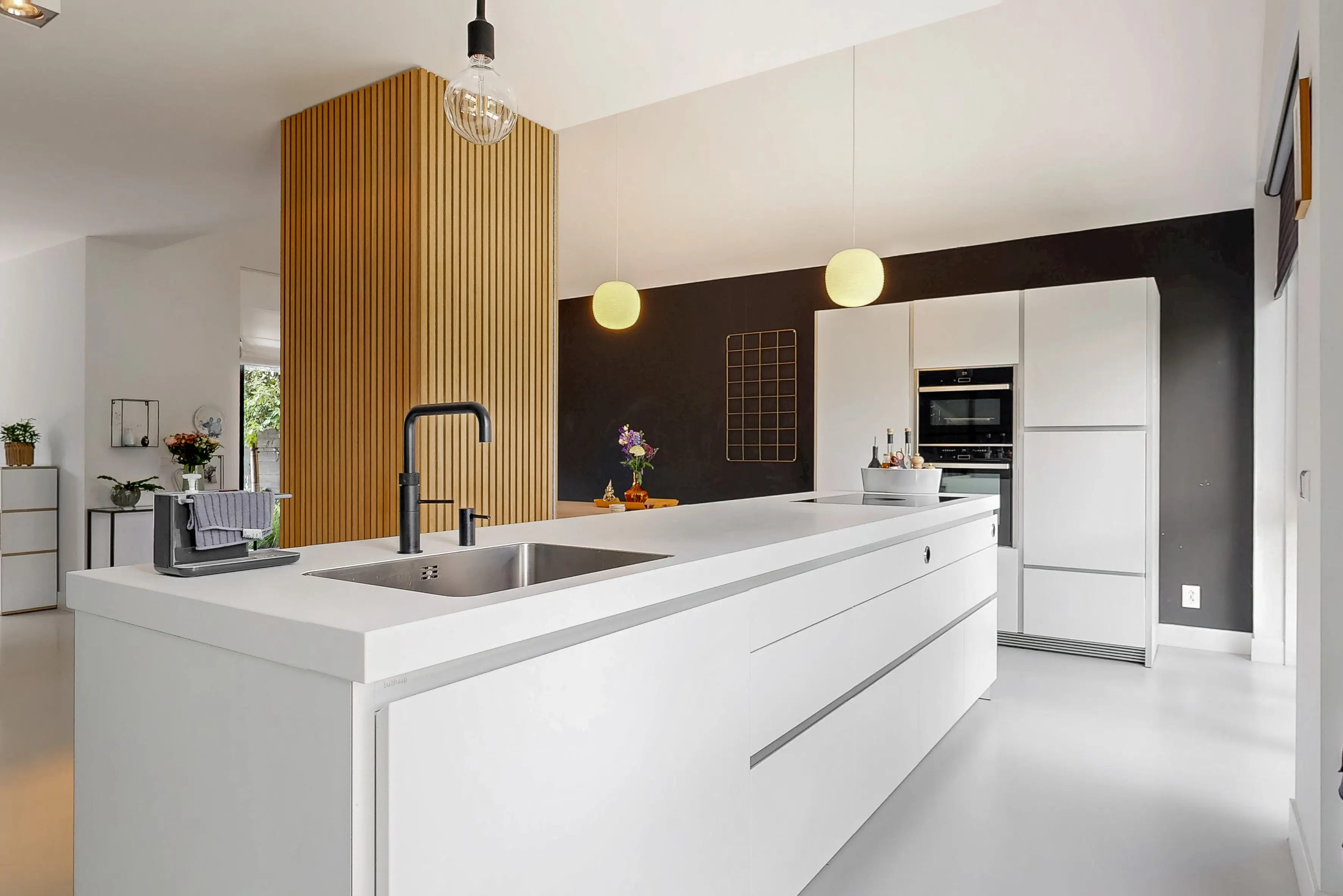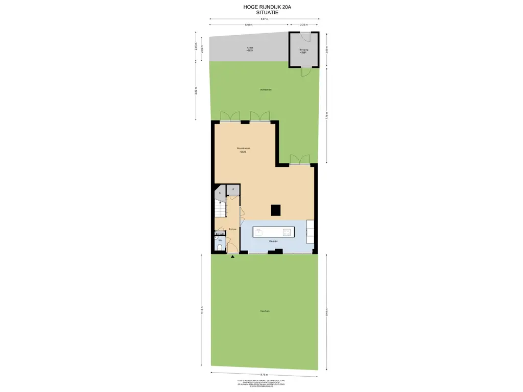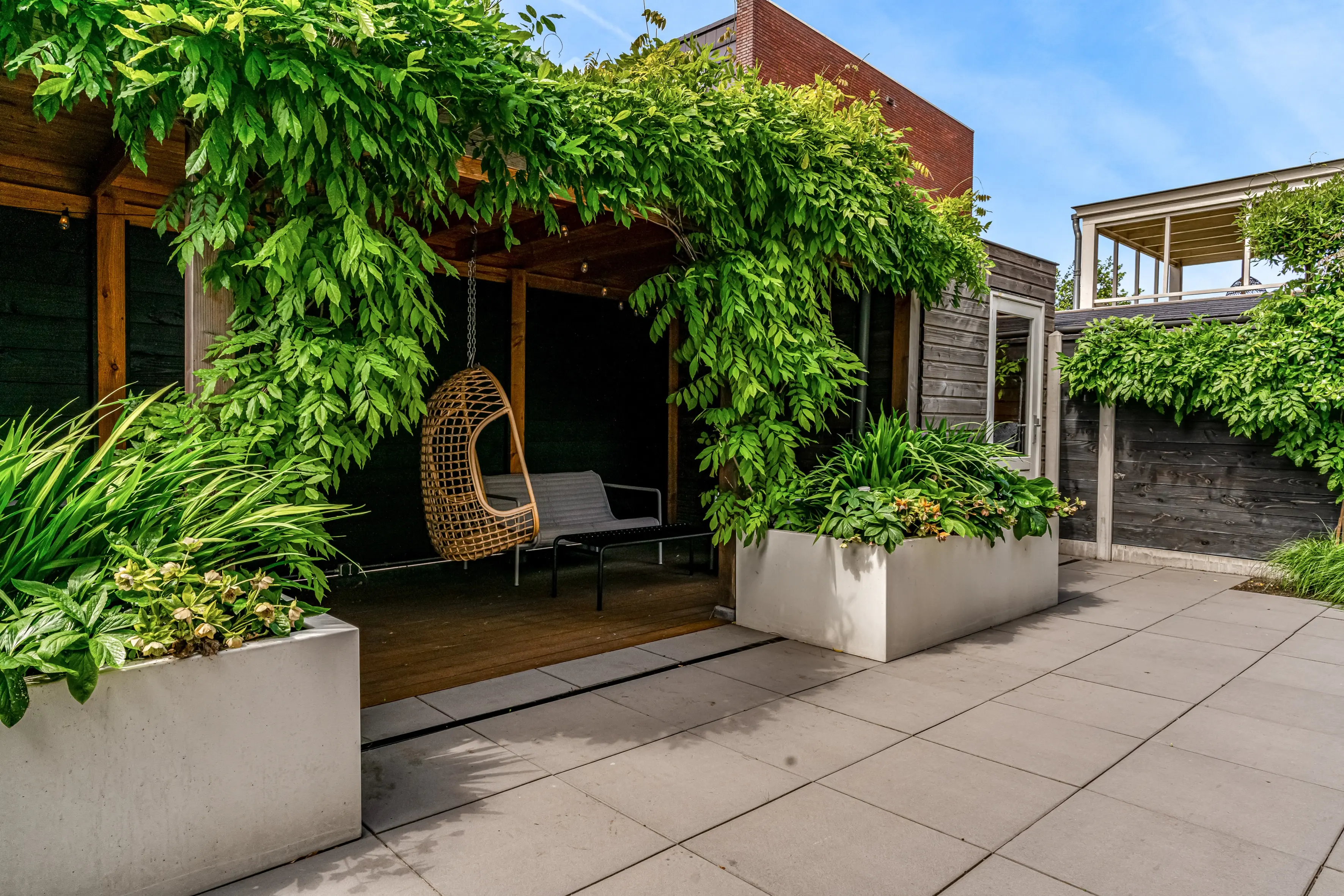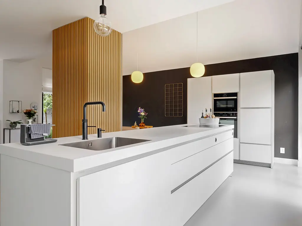 Voortuin en oprit met plaats voor twee auto’s op eigen terrein. Entree, hal met toilet, meterkast, trap naar de verdieping, een kast en toegang tot de keuken en woonkamer. De mooie Bulthaup keuken aan de voorzijde van de woning is van alle moderne gemakken en (inbouw)apparatuur voorzien. Zo heeft het bijvoorbeeld een inductie kookplaat met ingebouwde afzuigkap, een Quooker, vaatwasser, koel-/ vriescombinatie, een oven en een combi-stoomoven. Dankzij de uitbouw aan de zijkant is er extra veel leefruimte gecreëerd in de lichte woonkamer. De royale woonkamer heeft een moderne gietvloer met vloerverwarming, glad gestuukte muren en plafond en via de openslaande deuren heeft u toegang tot de zonnige en verzorgde achtertuin, waar je heerlijk kunt genieten van het buitenleven. In de tuin staat een heerlijke veranda met berging. ideaal voor fietsen en opslag.