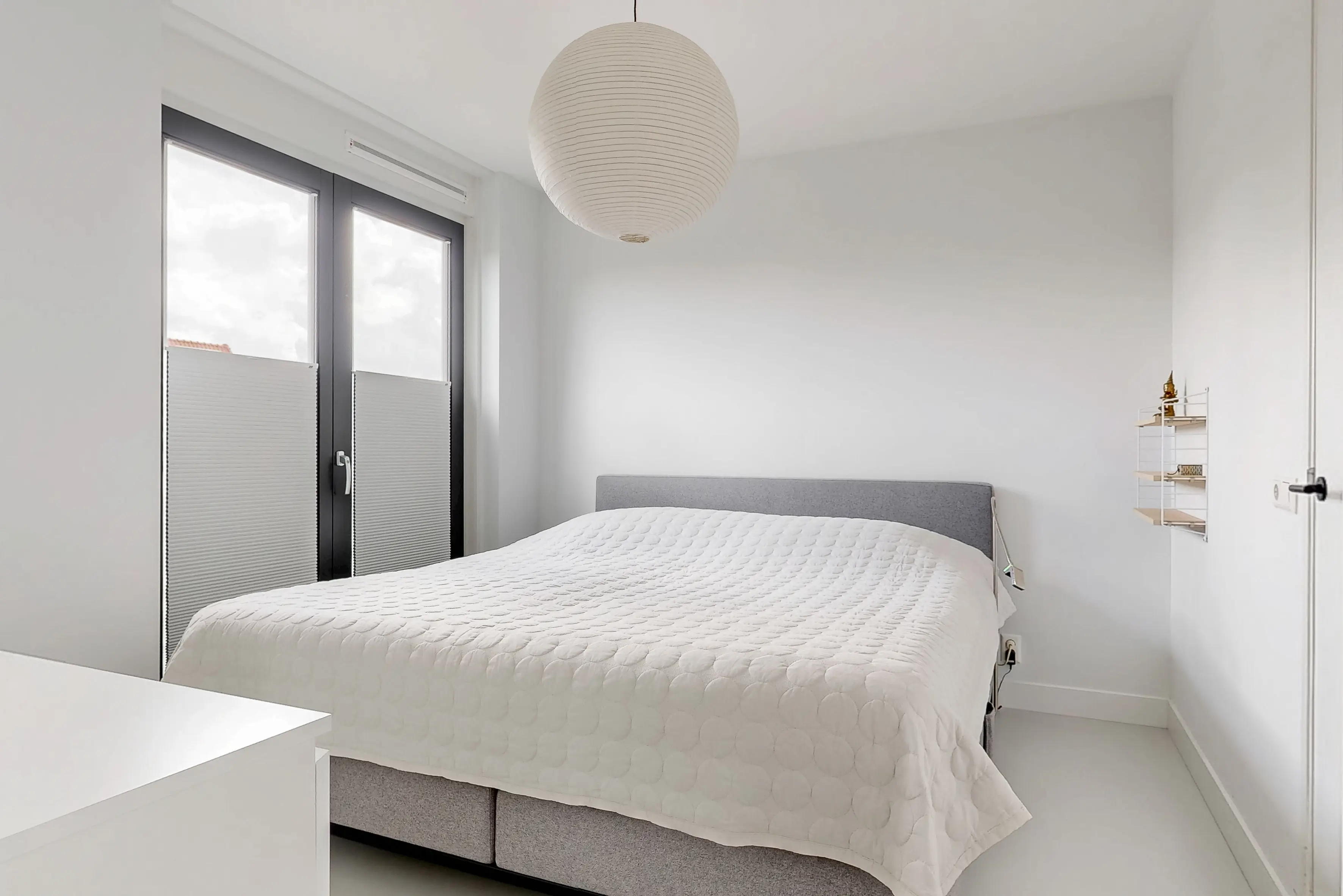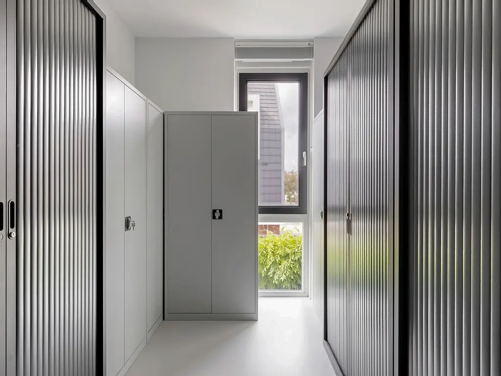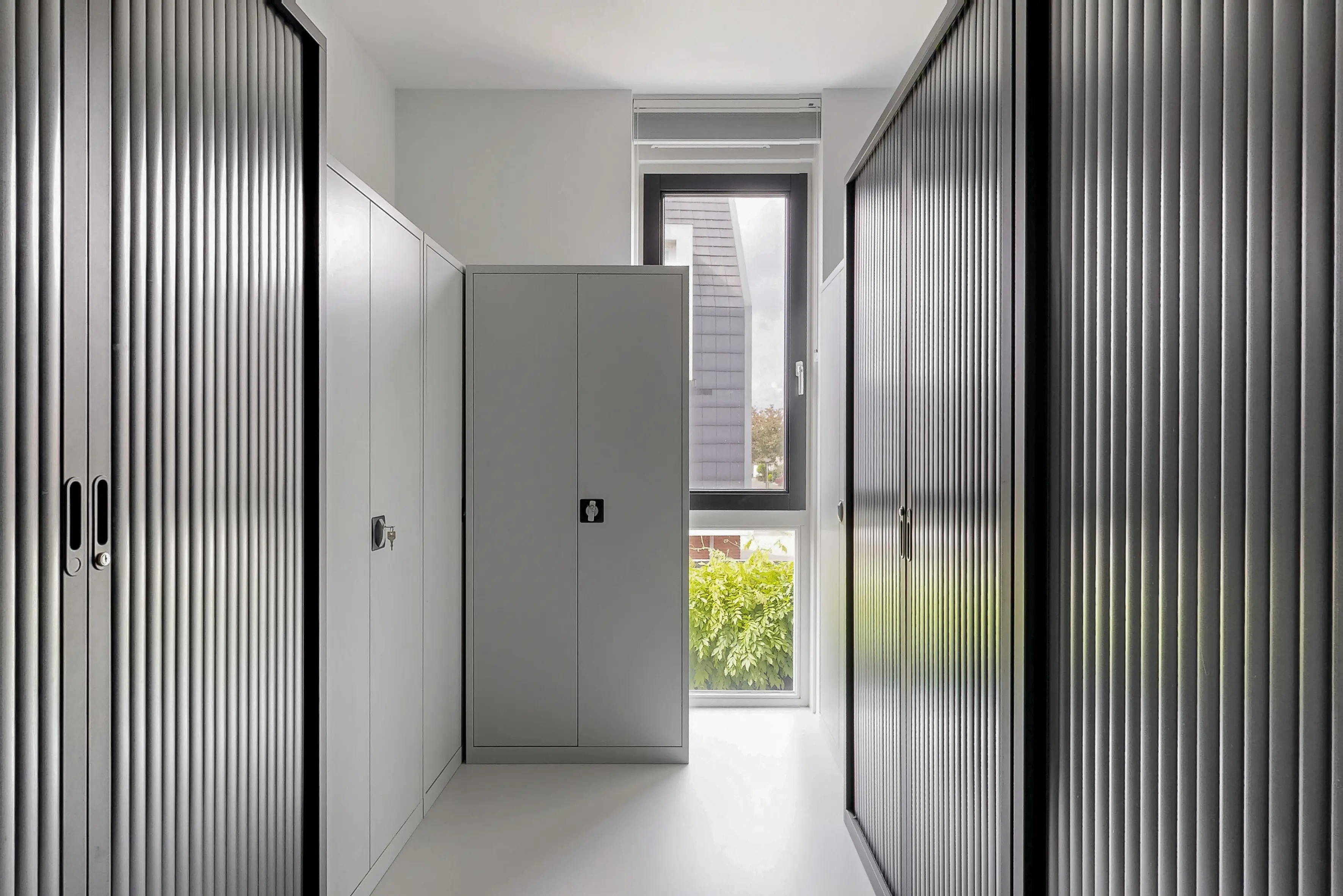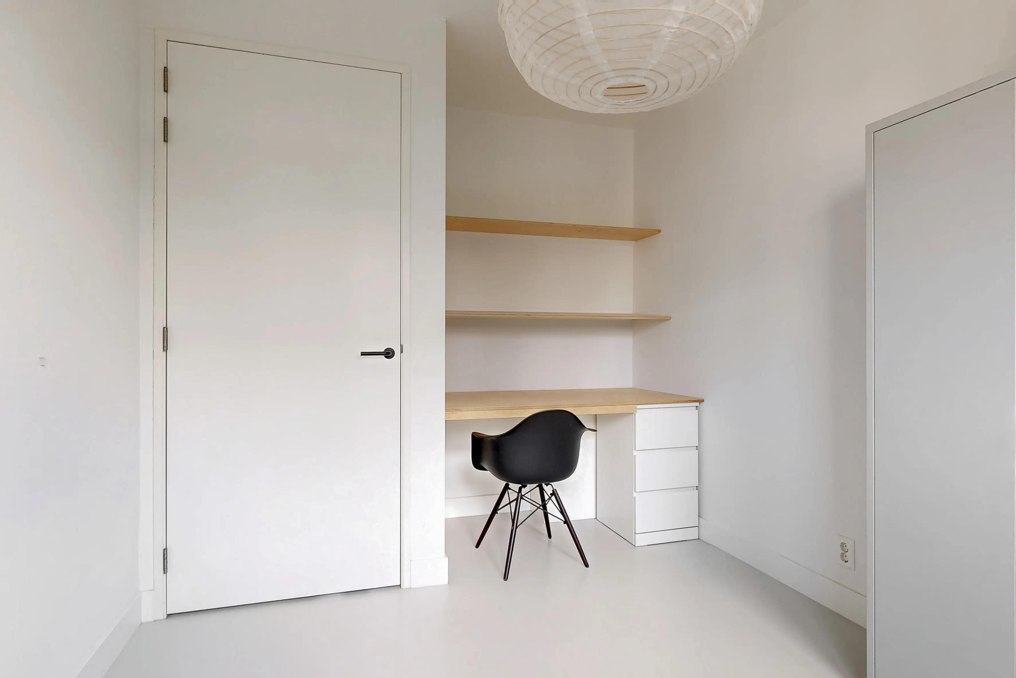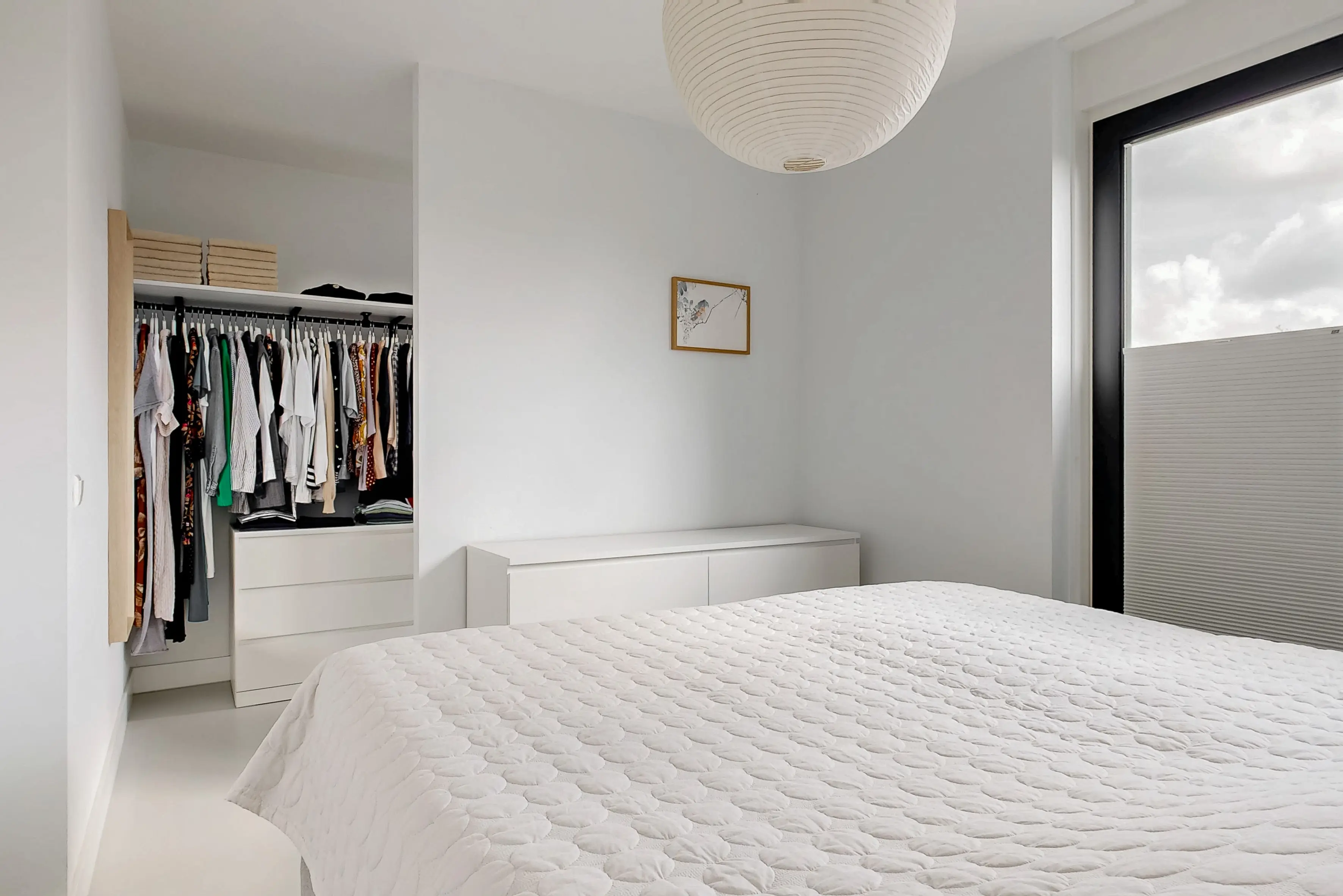 Op de eerste verdieping bevinden zich drie ruime (slaap-)kamers en een moderne badkamer met alle voorzieningen voor een ontspannen start van de dag. Zo is er een inloopdouche, tweede toilet en een duo-wastafel met meubel en spiegel. De grote slaapkamer aan de voorzijde van de woning is voorzien van een walk in closet. De gehele verdieping heeft dezelfde gietvloer met vloerverwarming.
