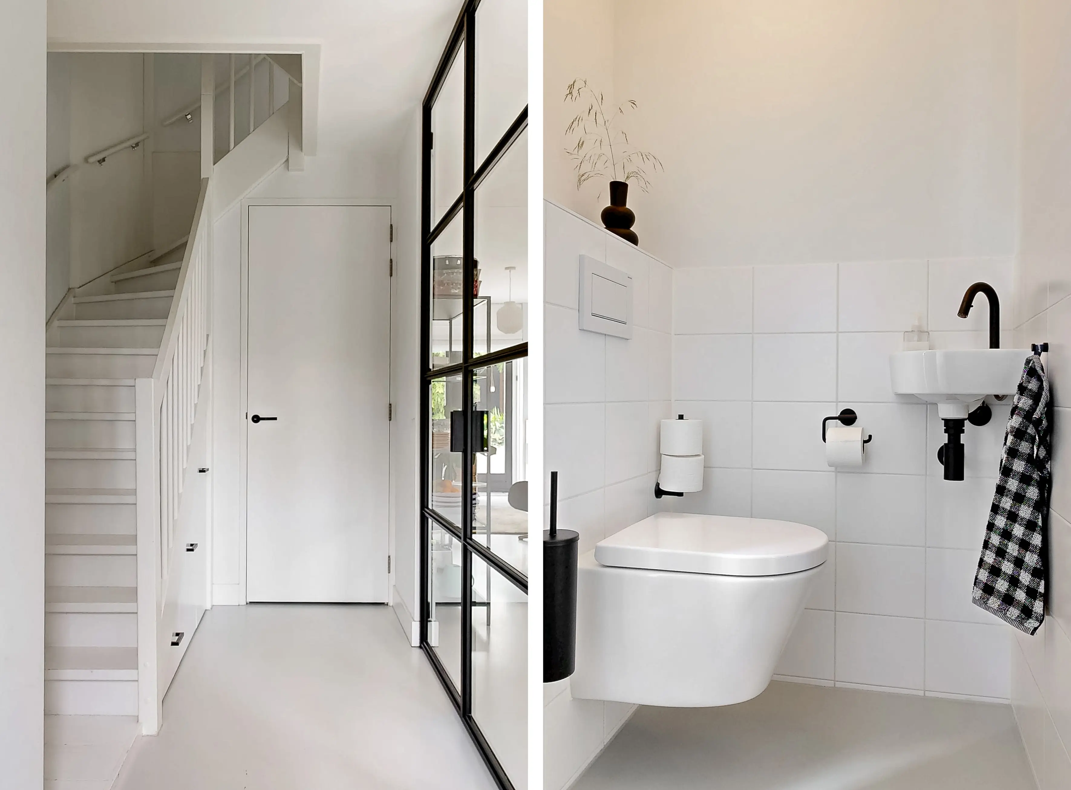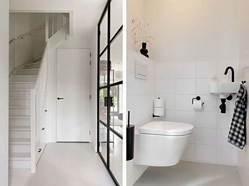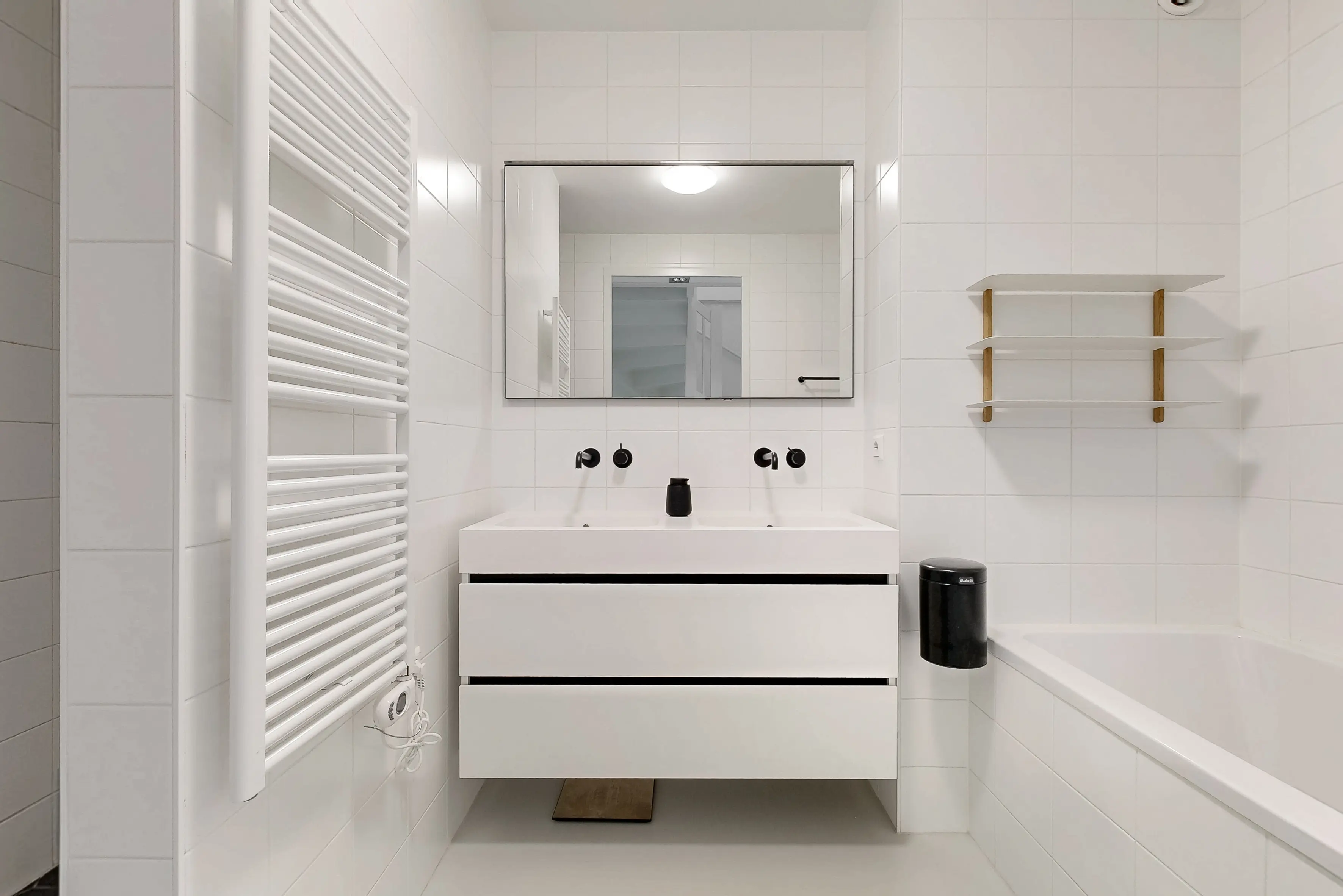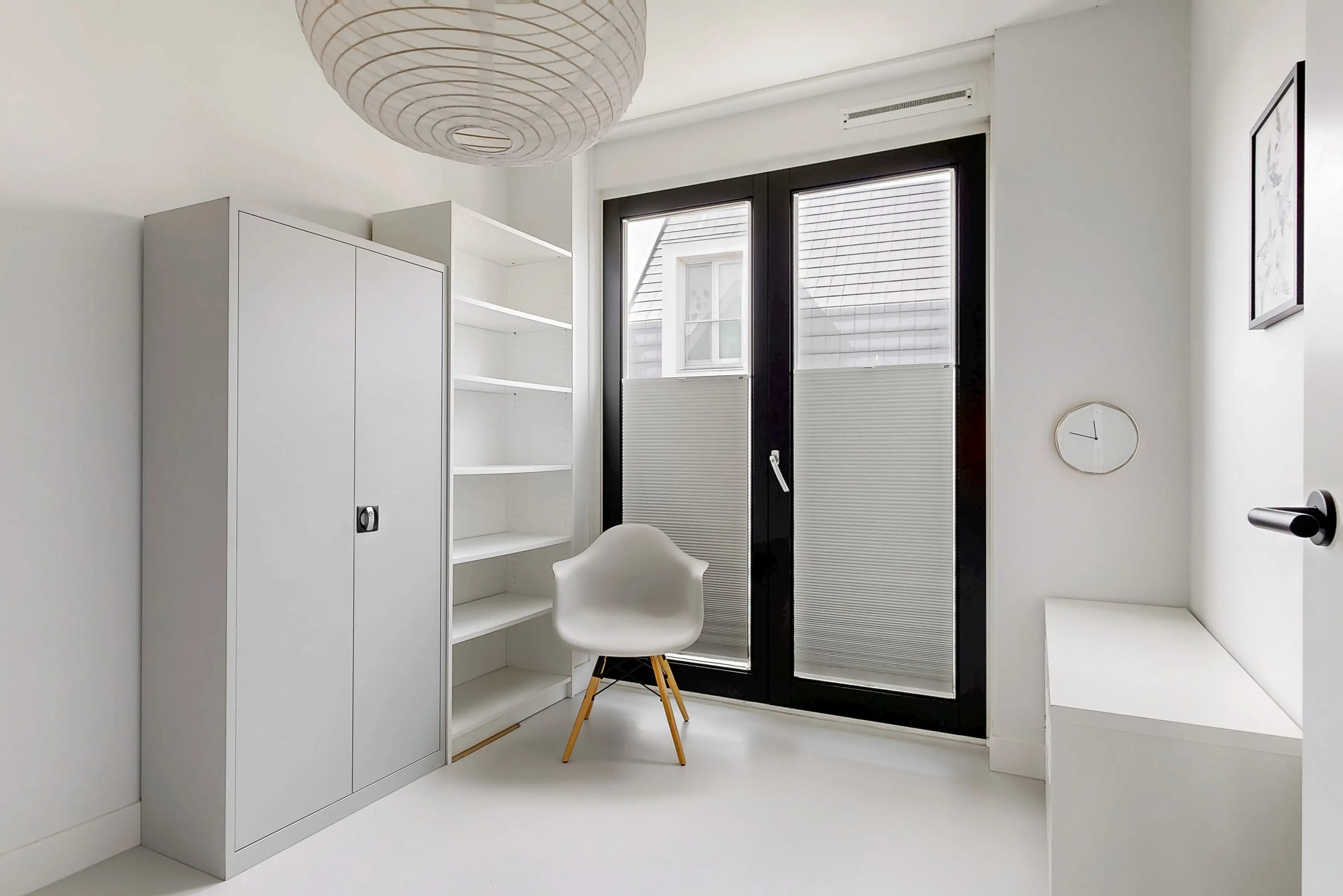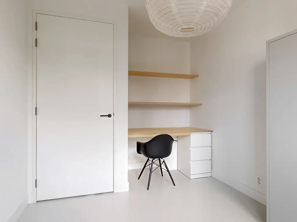 Op de eerste verdieping bevinden zich drie ruime (slaap-)kamers en een moderne badkamer met alle voorzieningen voor een ontspannen start van de dag. Zo is er een inloopdouche, tweede toilet en een duo-wastafel met meubel en spiegel. De grote slaapkamer aan de voorzijde van de woning is voorzien van een walk in closet. De gehele verdieping heeft dezelfde gietvloer met vloerverwarming.