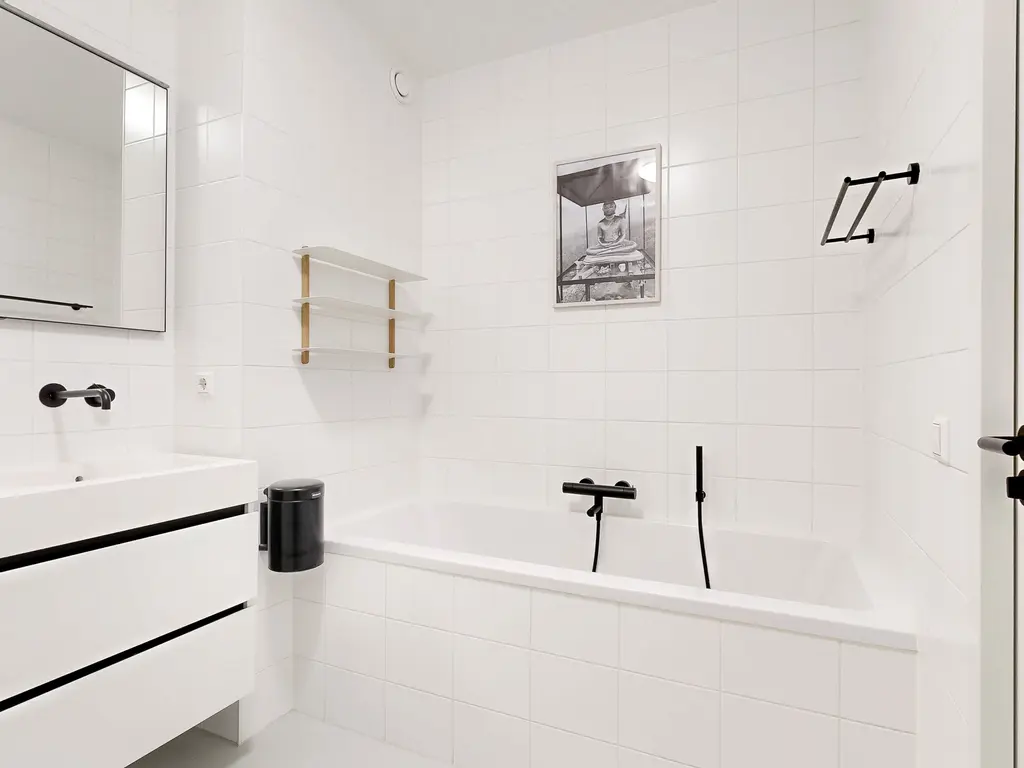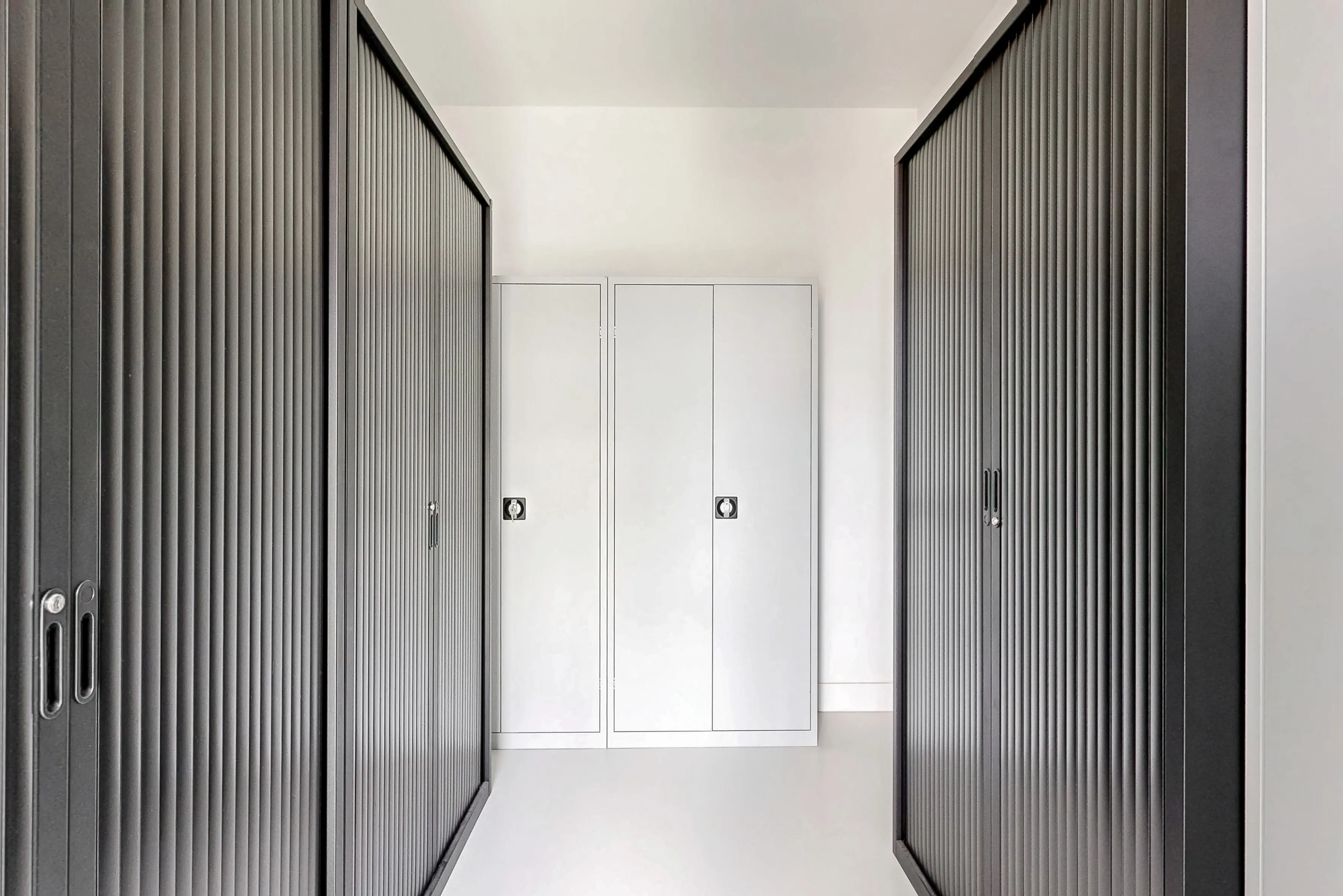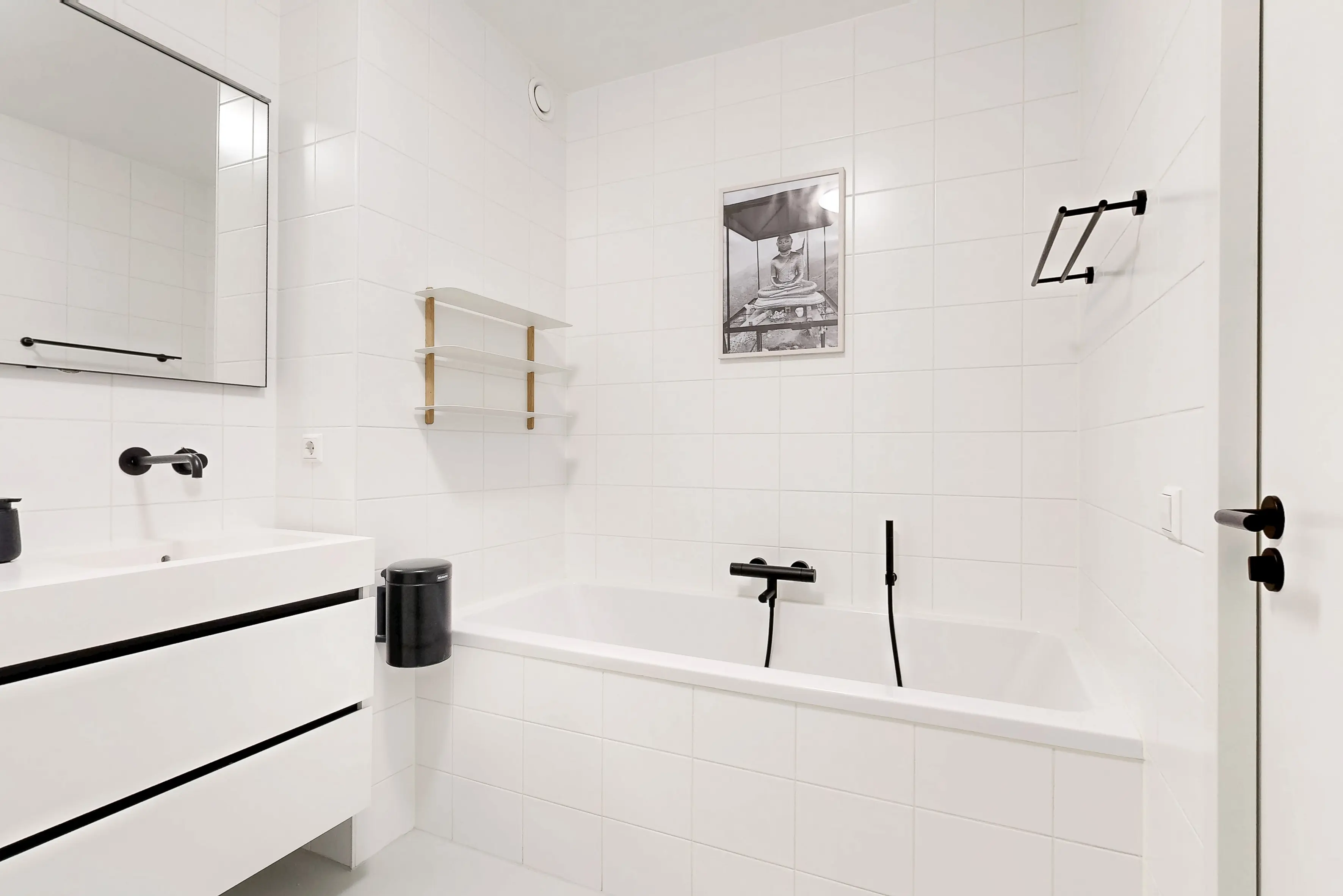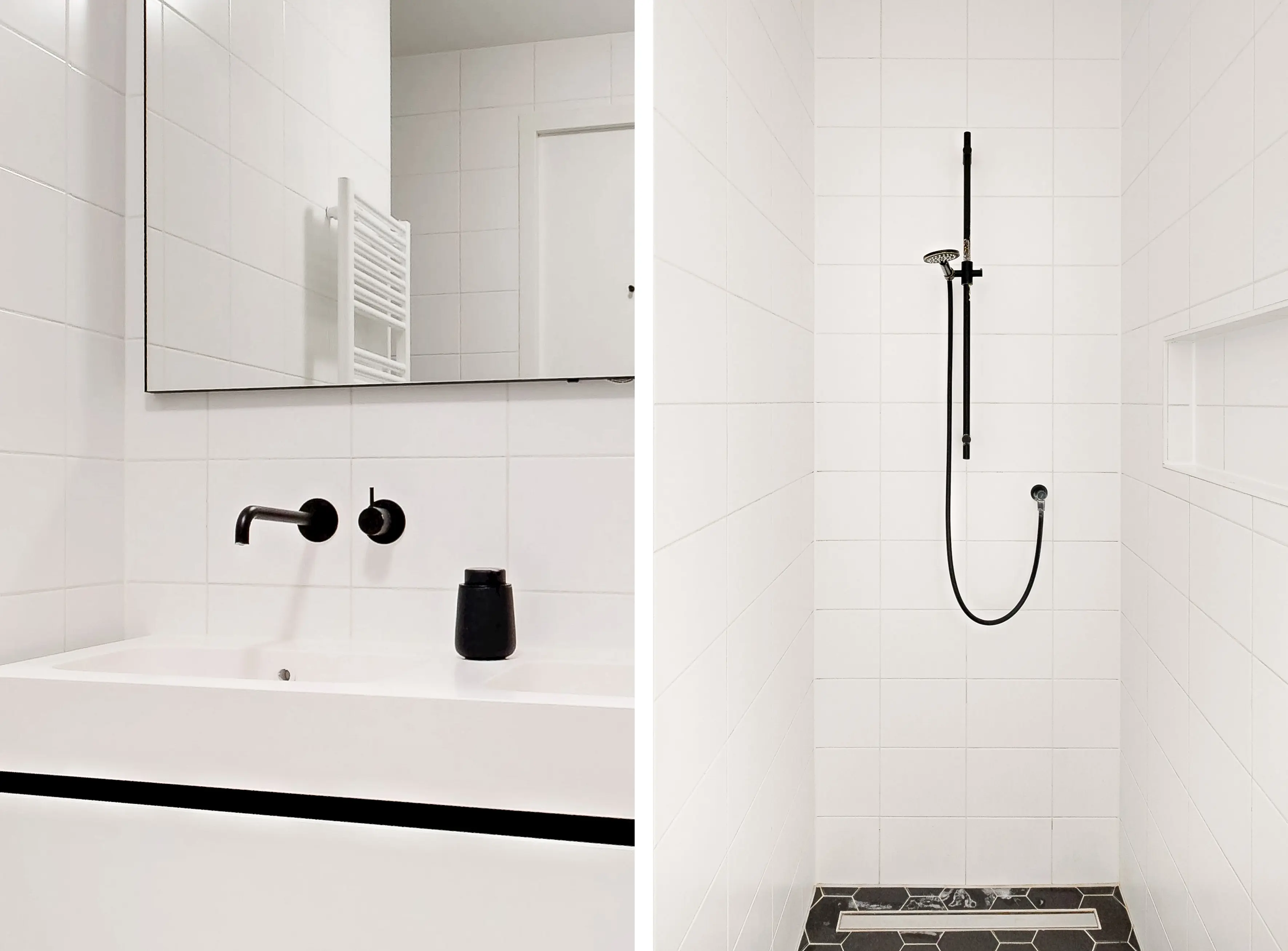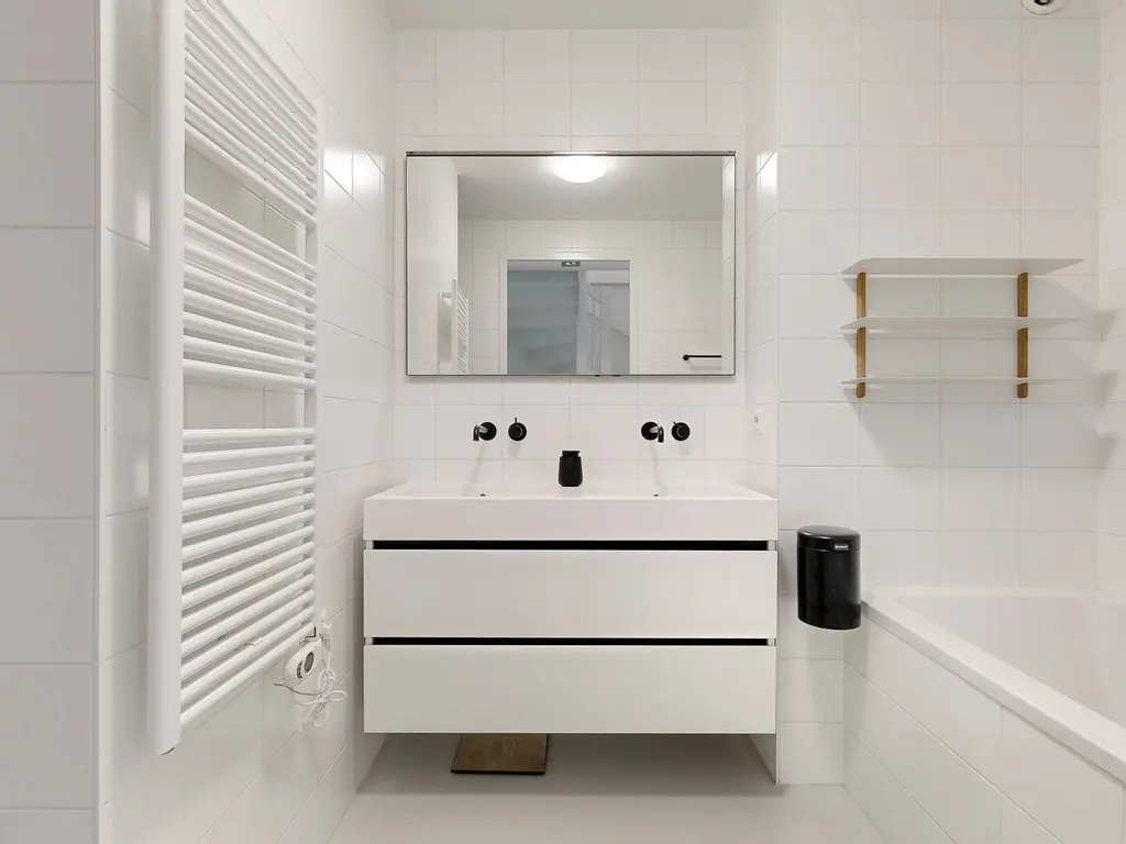 Op de eerste verdieping bevinden zich drie ruime (slaap-)kamers en een moderne badkamer met alle voorzieningen voor een ontspannen start van de dag. Zo is er een inloopdouche, tweede toilet en een duo-wastafel met meubel en spiegel. De grote slaapkamer aan de voorzijde van de woning is voorzien van een walk in closet. De gehele verdieping heeft dezelfde gietvloer met vloerverwarming.
