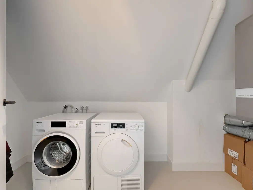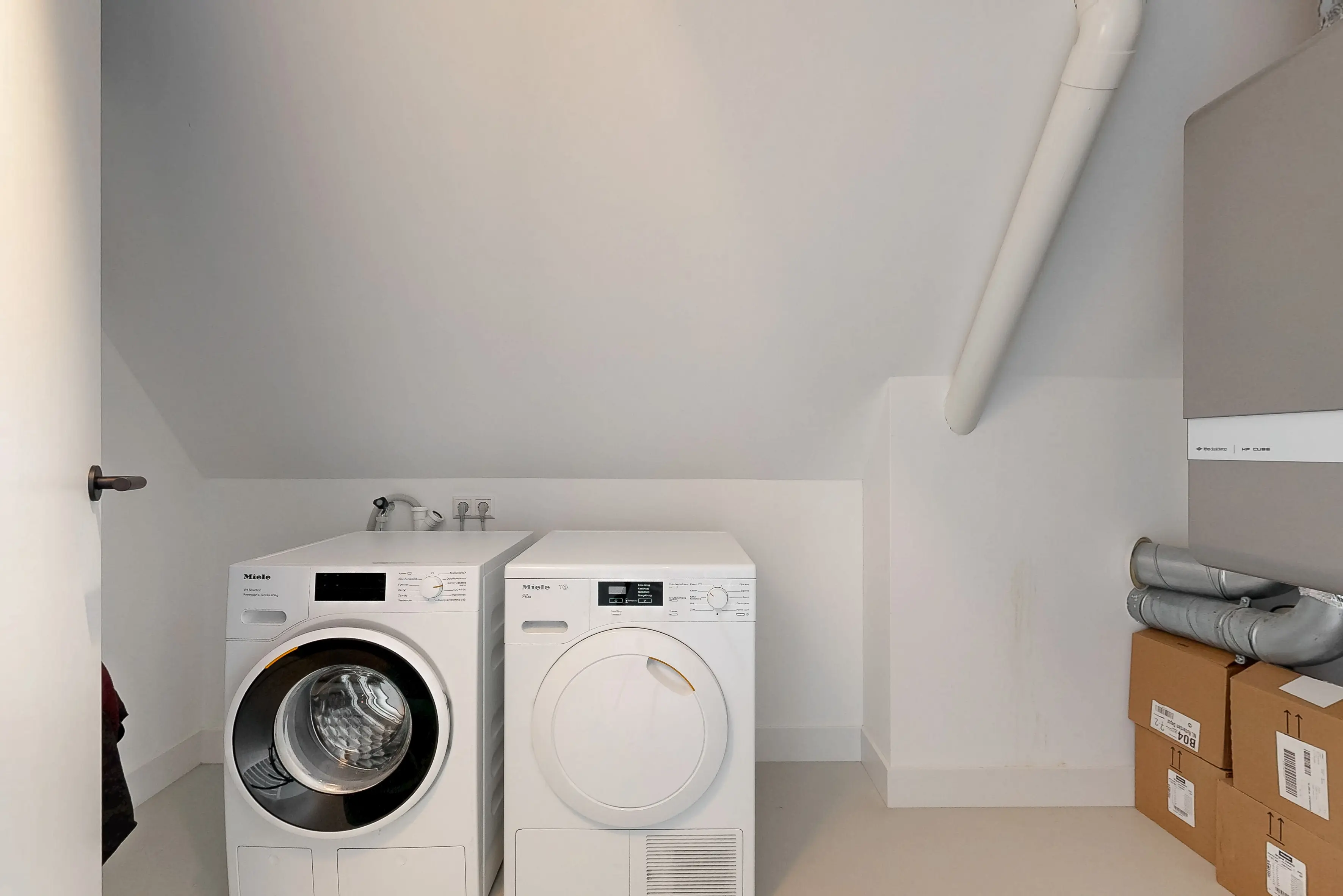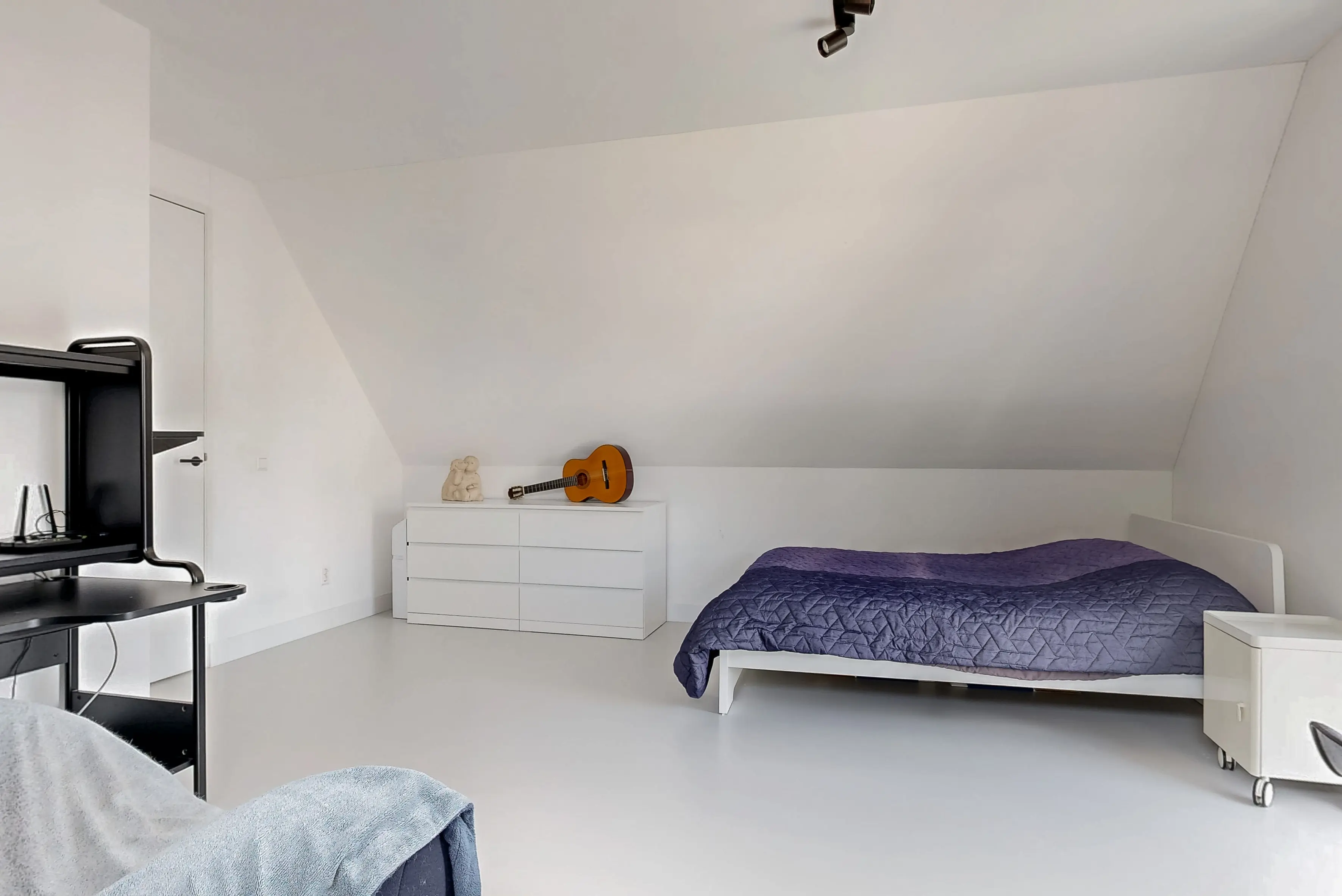 De woning valt direct op door zijn charmante gevel, die zorgt voor een bijzonder mooie tweede verdieping. Hier vind je de royale vierde slaapkamer en een vijfde slaapkamer, die ook gebruikt kan worden als werk- of hobbyruimte. Daarnaast is er een aparte technische-/wasruimte, wat extra gemak biedt. Voor de koffers en de kerstspullen kunt u via een luik met vlizotrap naar de vliering met veel bergruimte.