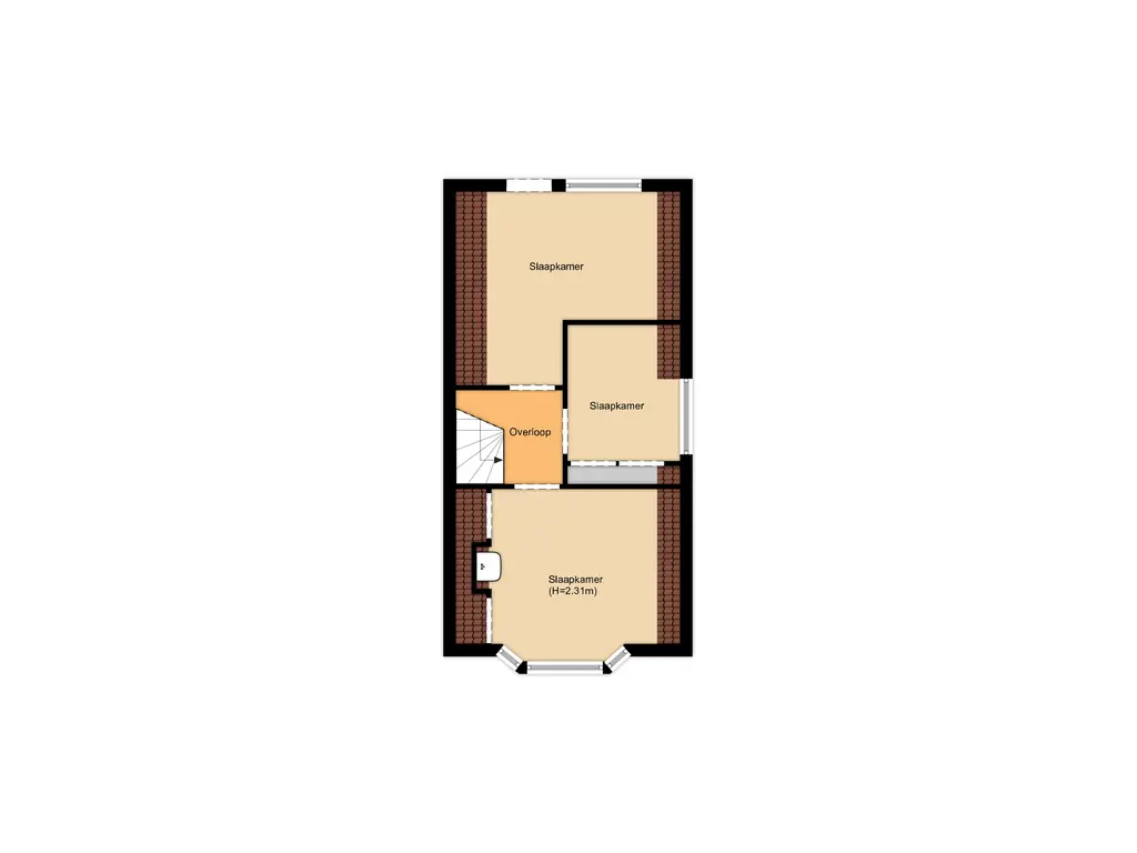 Hier vind je drie slaapkamers, elk met voldoende ruimte en lichtinval. De verdieping biedt een goede basis om naar eigen smaak te vernieuwen – ideaal voor wie droomt van een moderne slaapverdieping of bijvoorbeeld een thuiswerkplek.