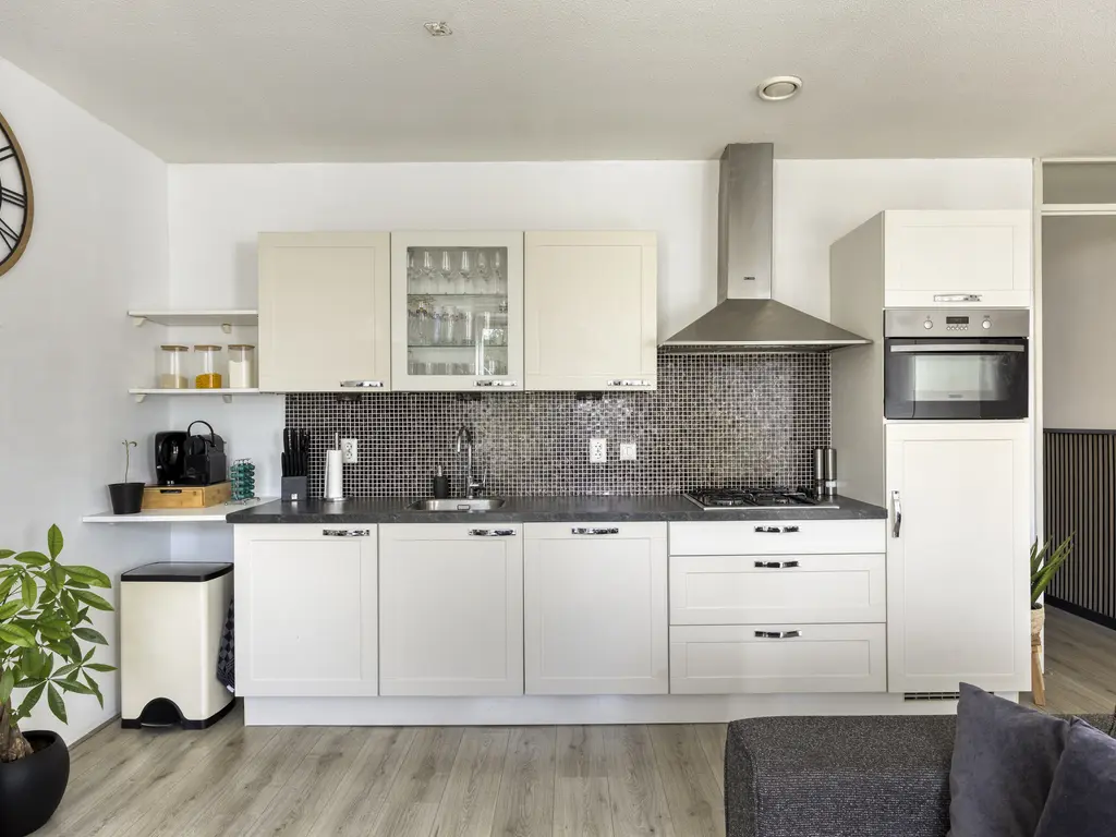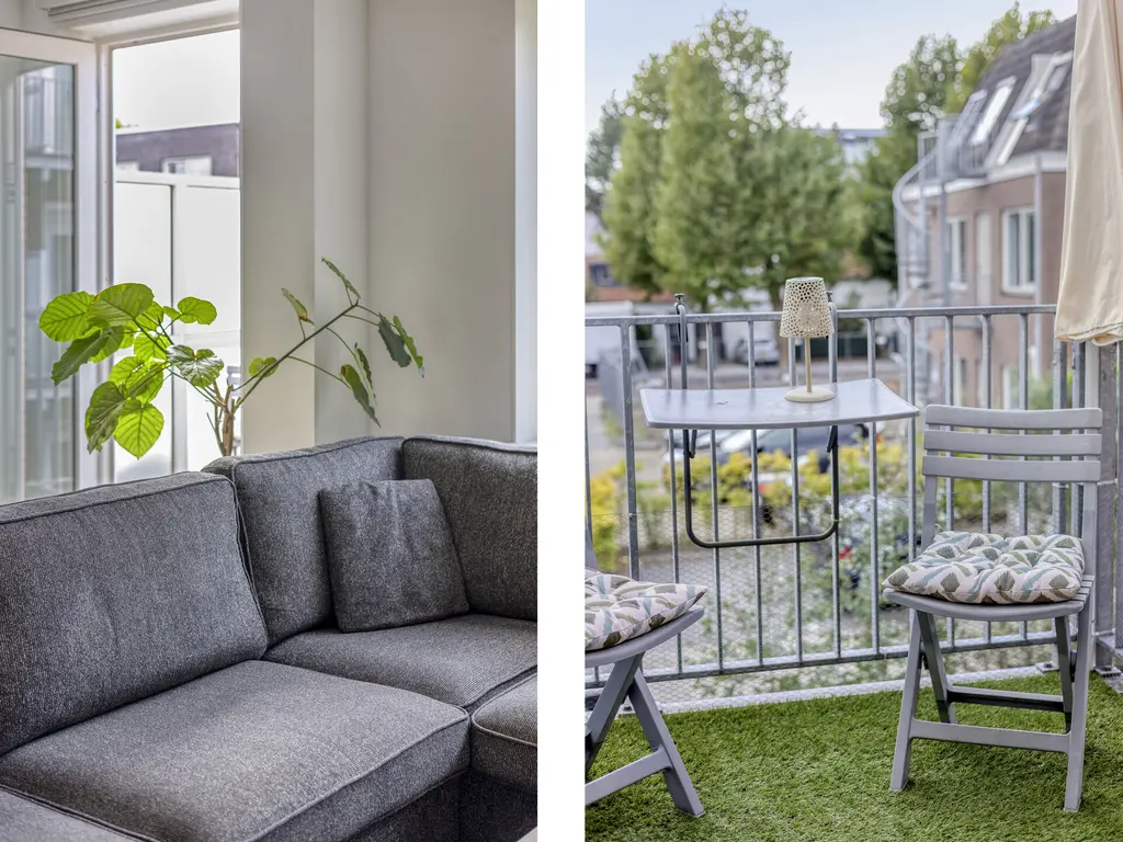 Je stapt het appartement binnen in een lichte hal die toegang geeft tot alle vertrekken. Zodra je de woonkamer binnenloopt, valt direct de fijne lichtinval op. De grote ramen zorgen voor een prettige sfeer en via de openslaande deur bereik je het balkon op het zuidwesten – een heerlijke plek om van de zon te genieten.
