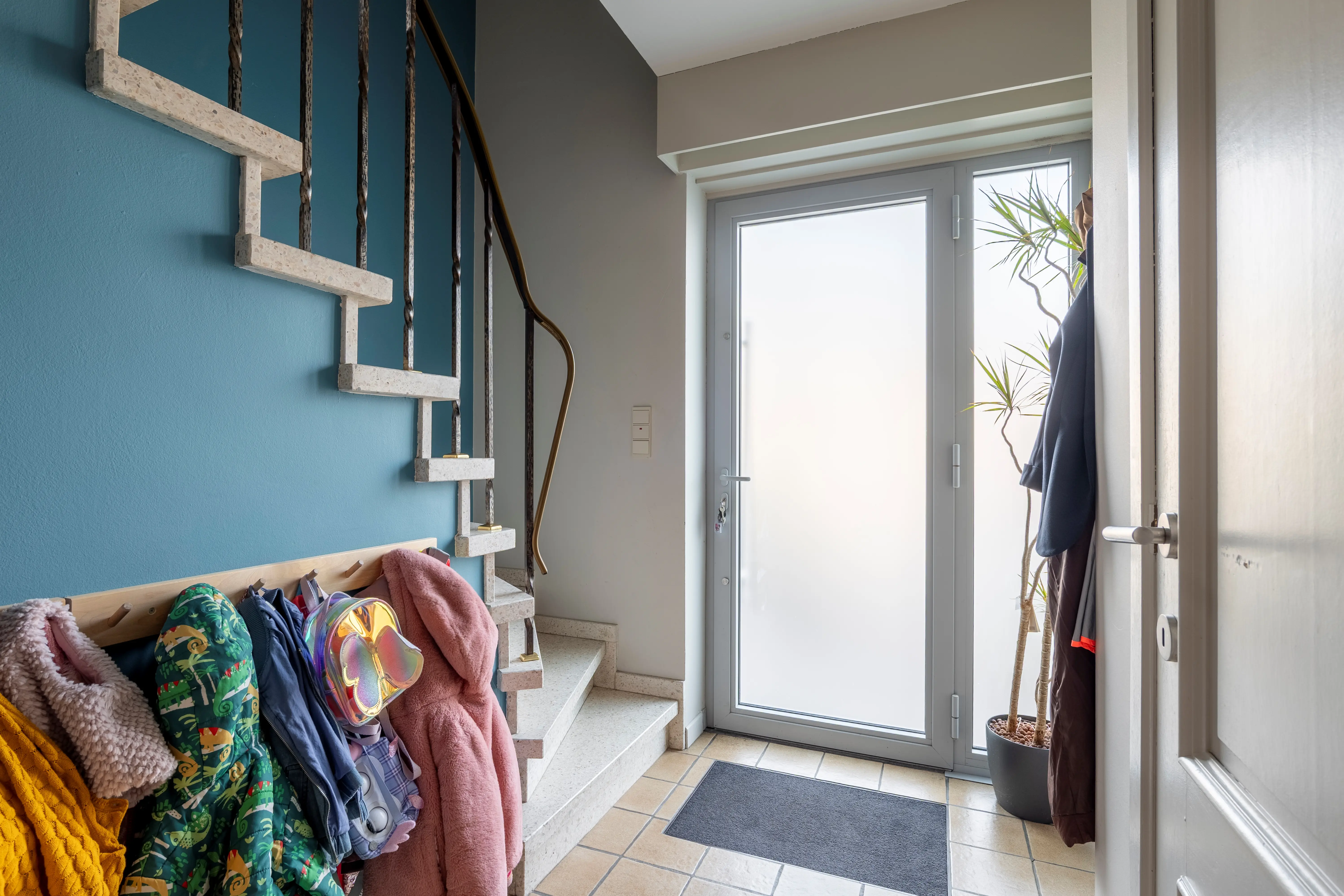 Via de inkomhal met vestiairegedeelte en gastentoilet heeft u toegang tot de ruime leefruimte.