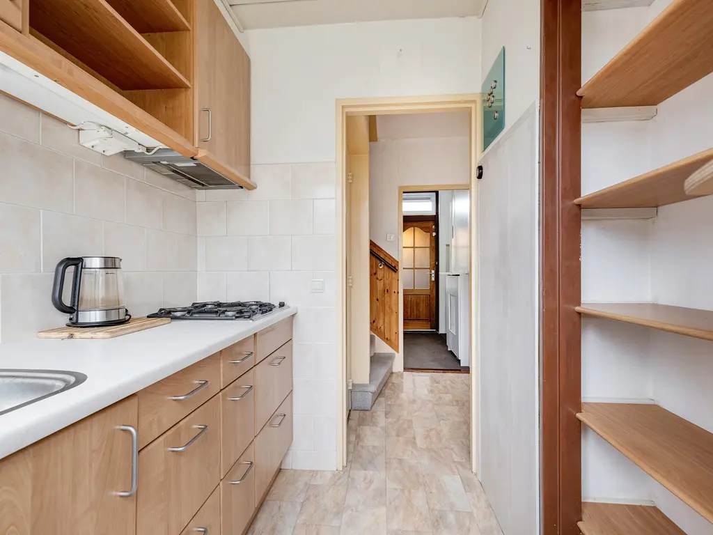 Binnen treft u een lichte doorzonwoonkamer, een aparte keuken, bijkeuken met doorgang naar de berging, drie slaapkamers en een nette badkamer op de eerste verdieping, en een ruime vierde slaapkamer met dakkapel op zolder. De woning is gedateerd maar biedt volop mogelijkheden om te moderniseren en volledig naar eigen smaak aan te passen.