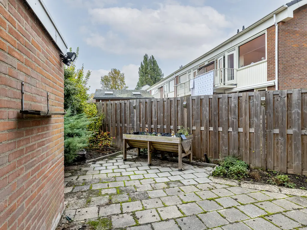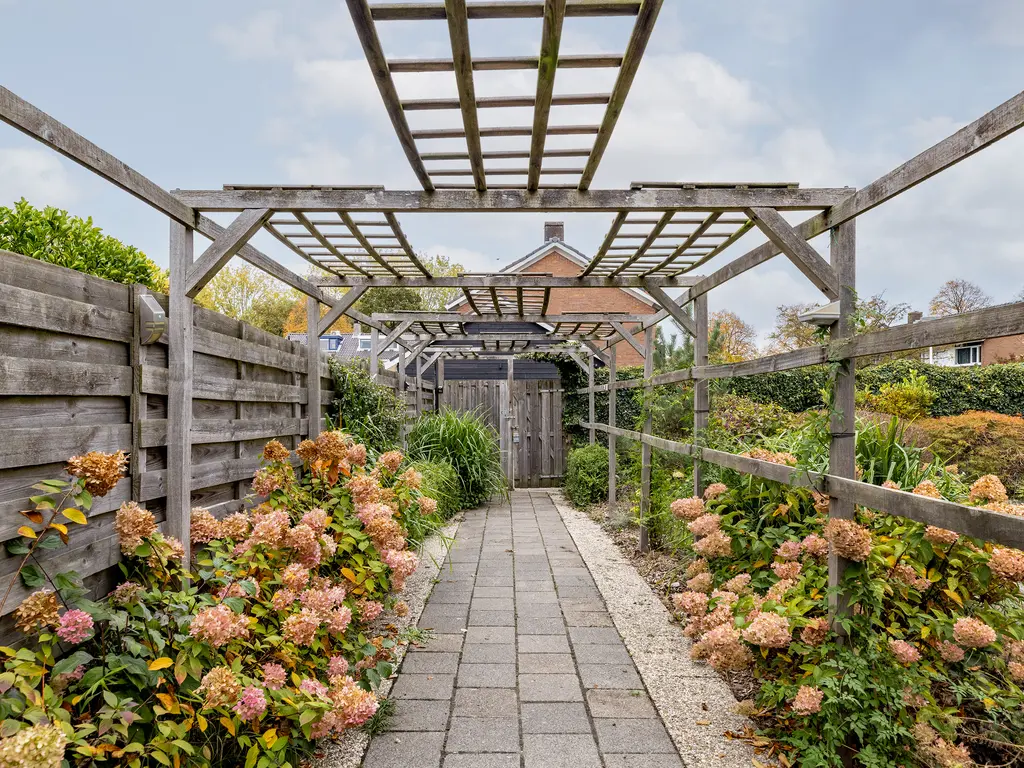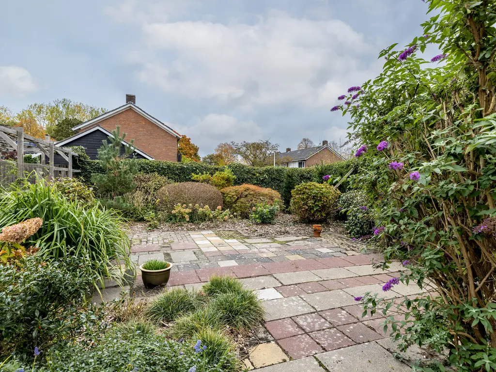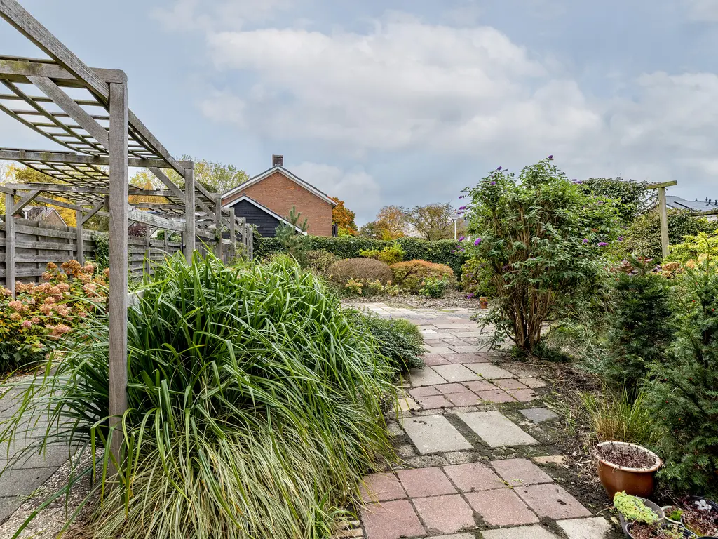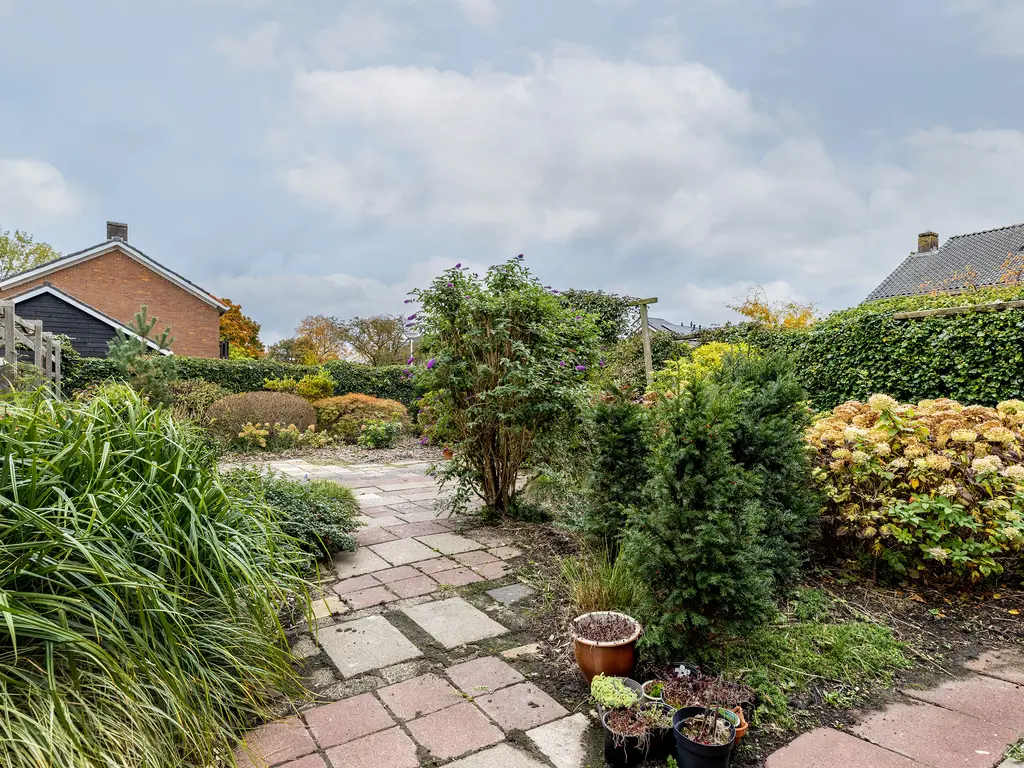 De tuin is werkelijk een unieke buitenruimte: rondom de woning gelegen, met volop groen, privacy en verschillende zitmogelijkheden. De riante zijtuin is perfect voor lange zomeravonden of een gezellige barbecue met vrienden. In 1978 is er een extra perceel van 168 m² bijgekocht, wat het totale perceel brengt op een riante 345 m², een buitenkans in deze gewilde woonwijk.