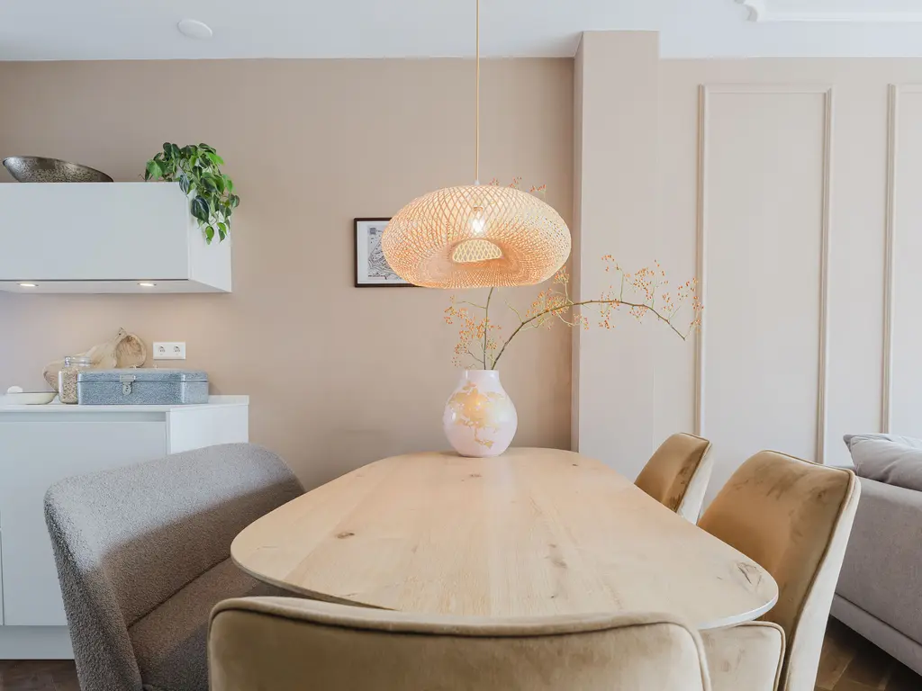 Bij binnenkomst voel je het meteen: hier zit liefde in, dit huis is met zorg en smaak afgewerkt. De prachtige visgraatvloer met vloerverwarming, gestucte wanden en warme kleuren creëren een luxe en huiselijke sfeer.