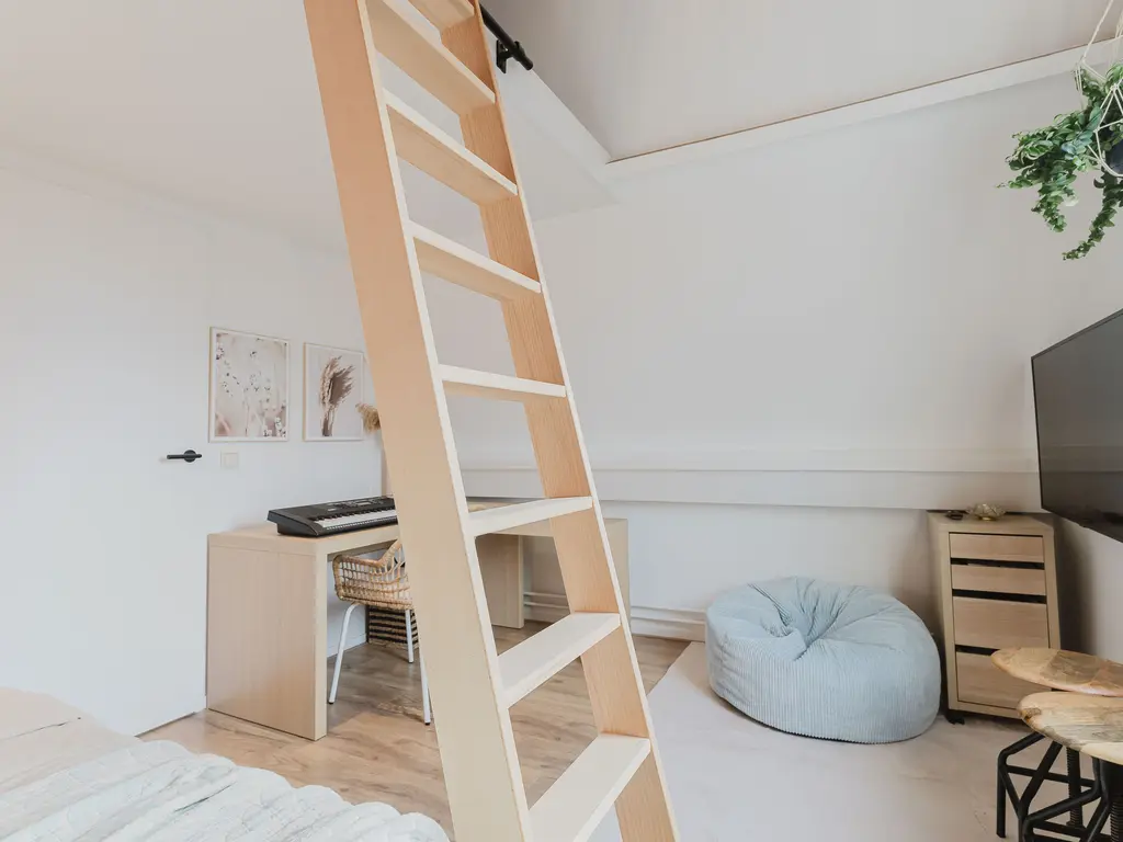 Via een vaste trap bereik je de tweede verdieping met nog eens twee lichte slaapkamers met een vide. Op de overloop zijn keurige kasten gerealiseerd voor het plaatsen van de wasmachine en droger, tevens is hier nog een wastafel geplaatst en biedt een vliering nog extra opbergruimte.