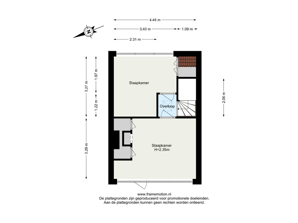 De overloop biedt toegang tot twee slaapkamers en de bergvliering.