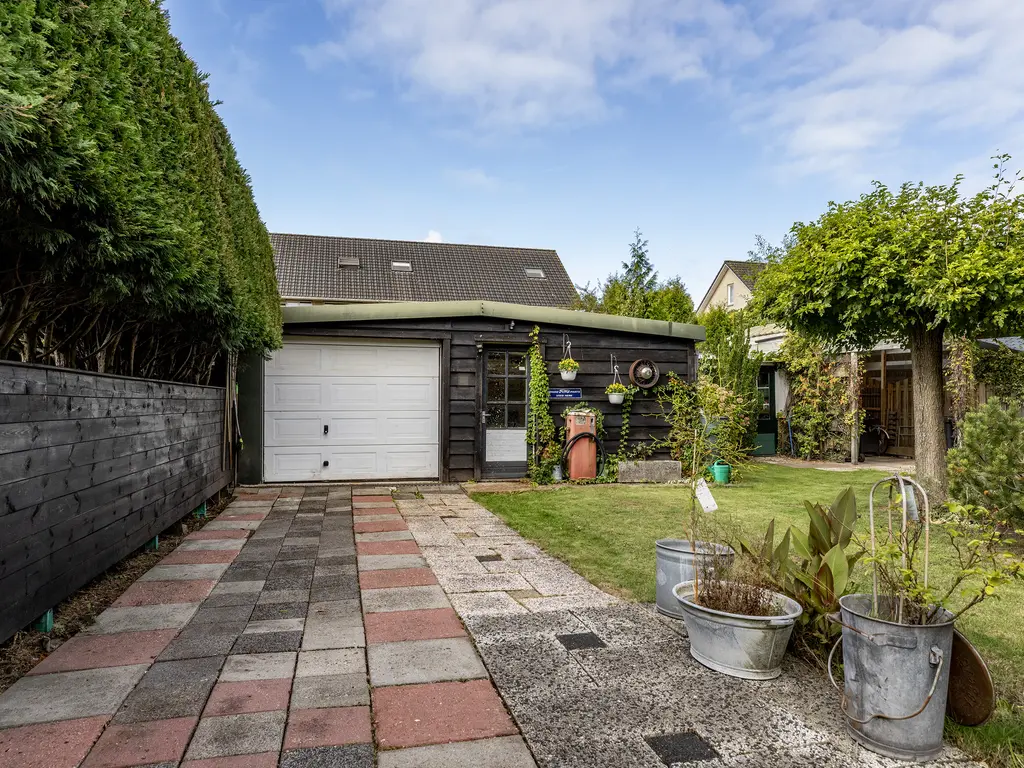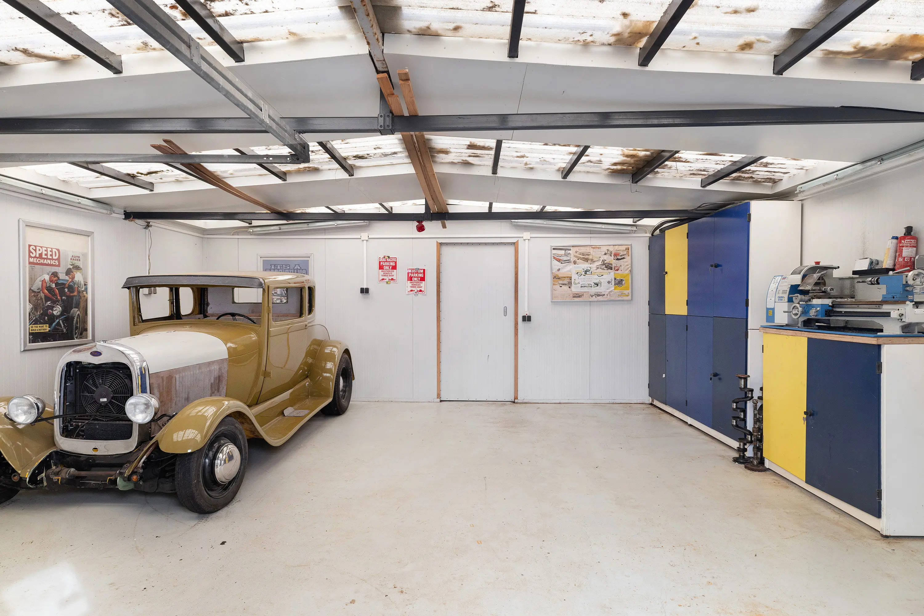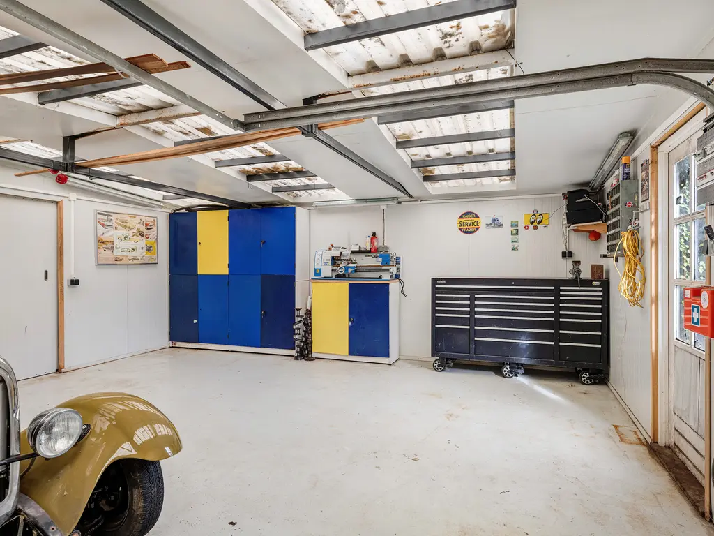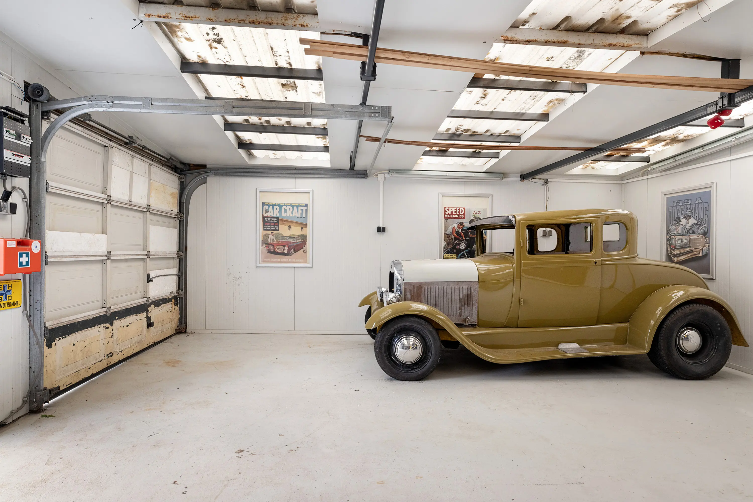 Achterin de tuin staat de grote vrijstaande loods/garage, ideaal voor de autoliefhebber, hobbyist of ondernemer aan huis. De loods biedt plek aan meerdere auto's en beschikt over extra inpandige bergruimte.