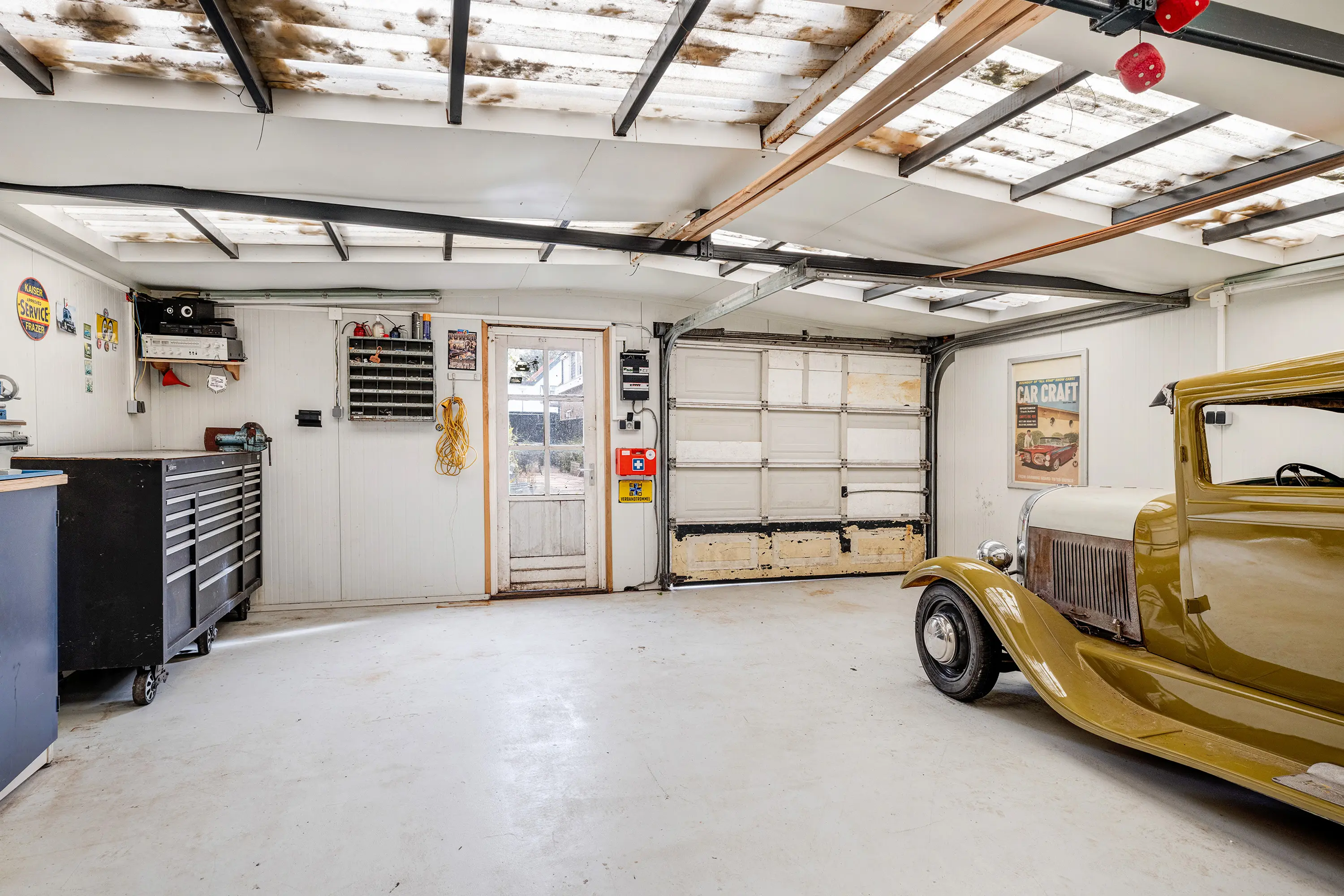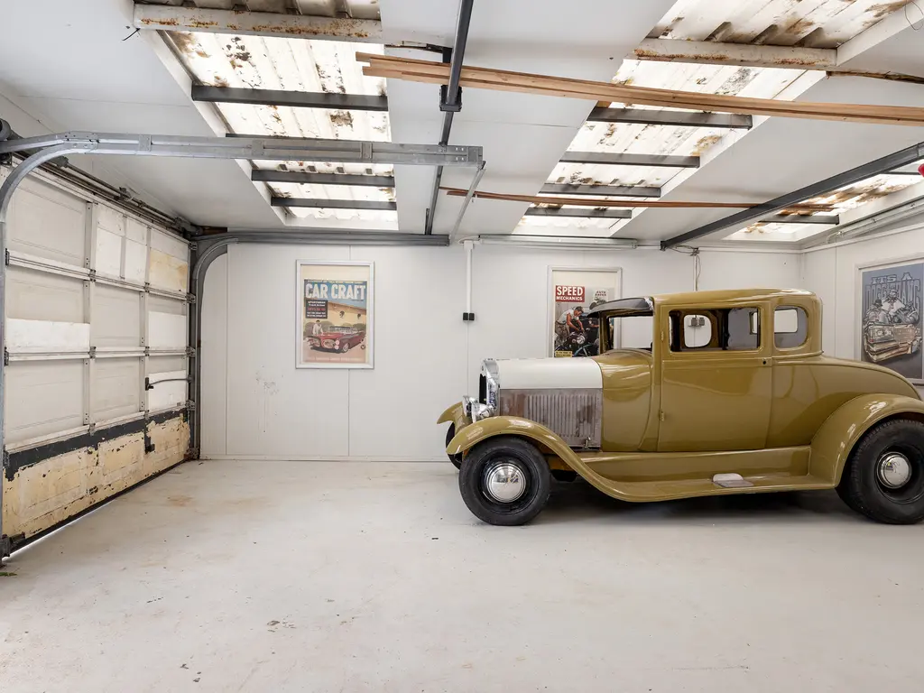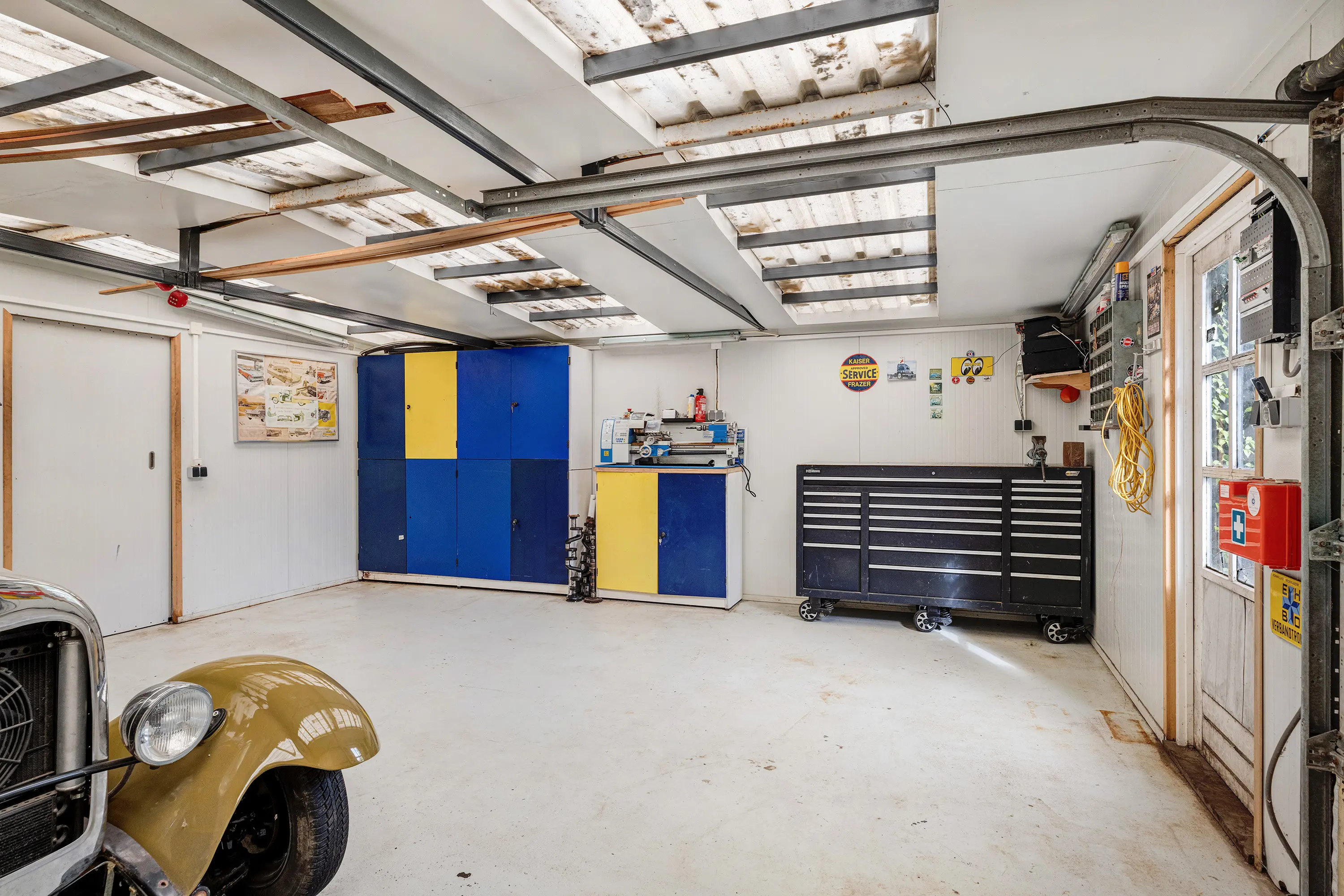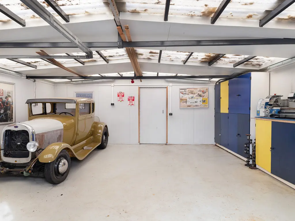 Achterin de tuin staat de grote vrijstaande loods/garage, ideaal voor de autoliefhebber, hobbyist of ondernemer aan huis. De loods biedt plek aan meerdere auto's en beschikt over extra inpandige bergruimte.