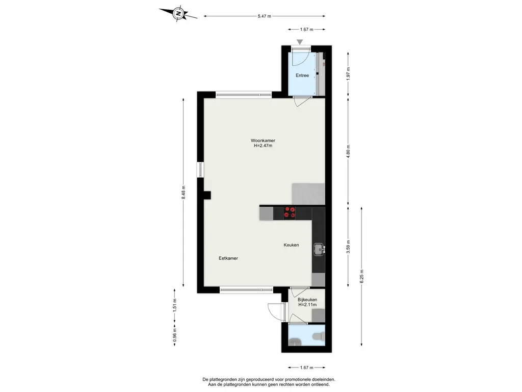 Entree met hal en garderoberuimte. De lichte woonkamer beschikt over grote raampartijen aan zowel de voor- als achterzijde en in de zijgevel, waardoor er veel daglicht binnenkomt. De open trap naar de eerste verdieping geeft de ruimte een speels karakter.