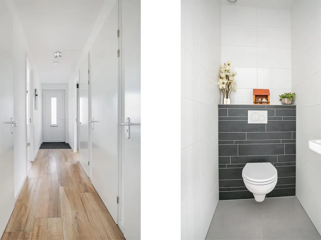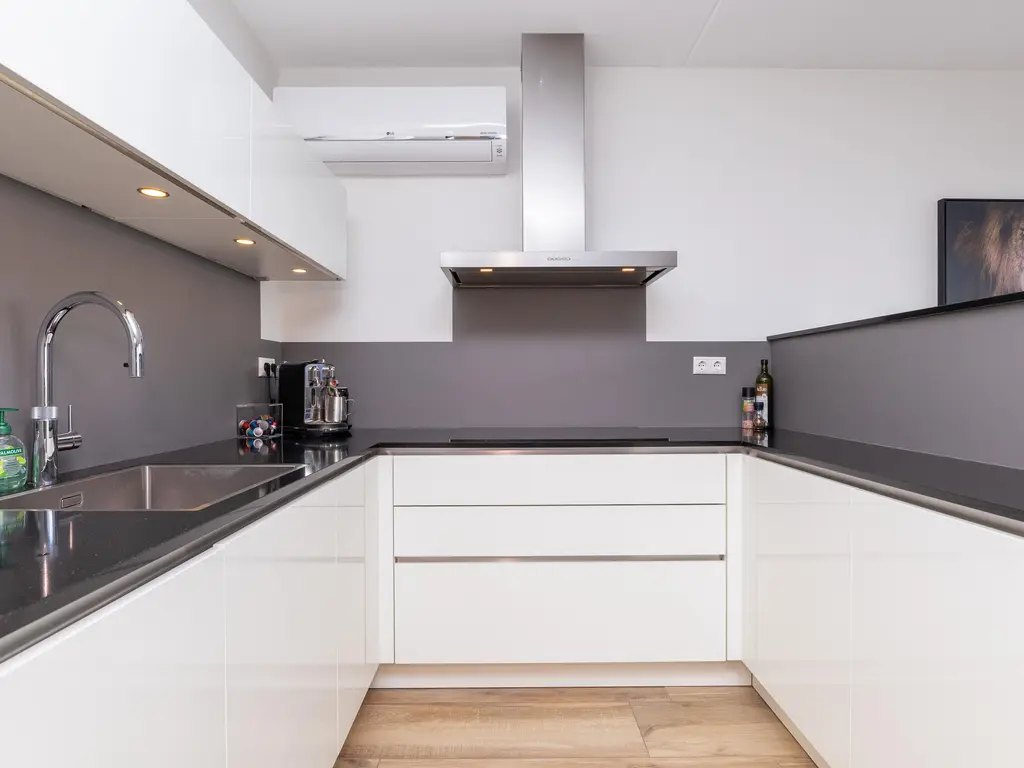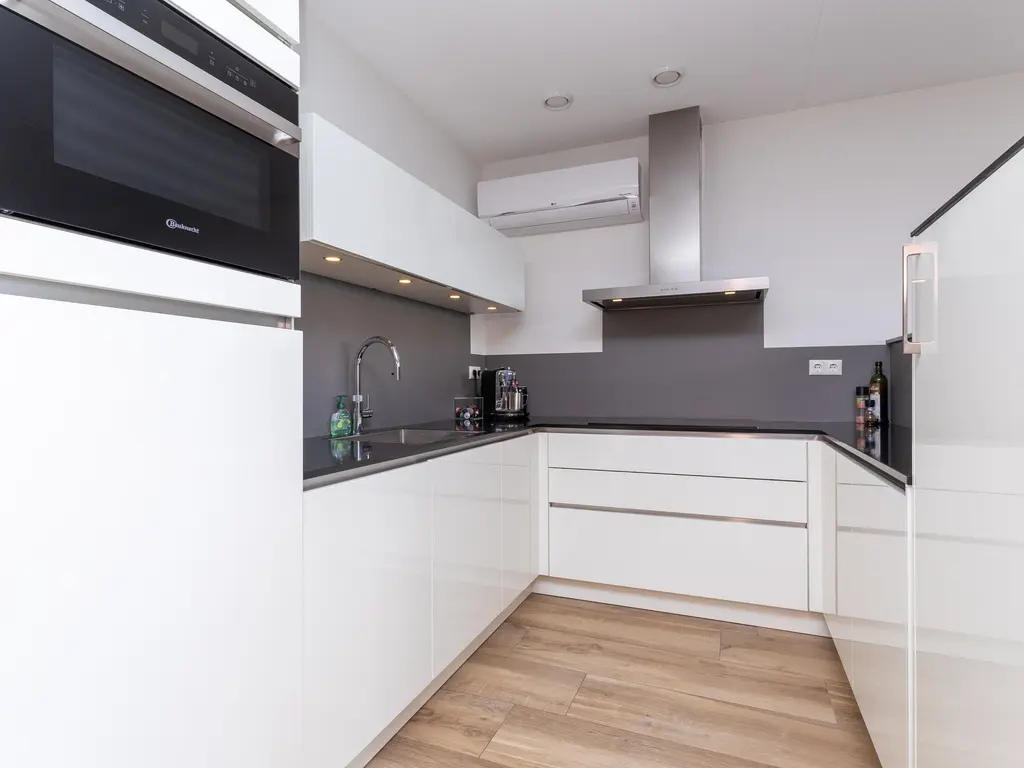 De royale living is modern ingericht en strak afgewerkt. De open keuken in U-opstelling is een echte eyecatcher en voorzien van hoogwaardige inbouwapparatuur zoals een inductiekookplaat, vaatwasser, combi-oven, koelkast, afzuigkap én een Quooker. Dankzij de vloerverwarming én airconditioning is het hier elk seizoen heerlijk genieten.