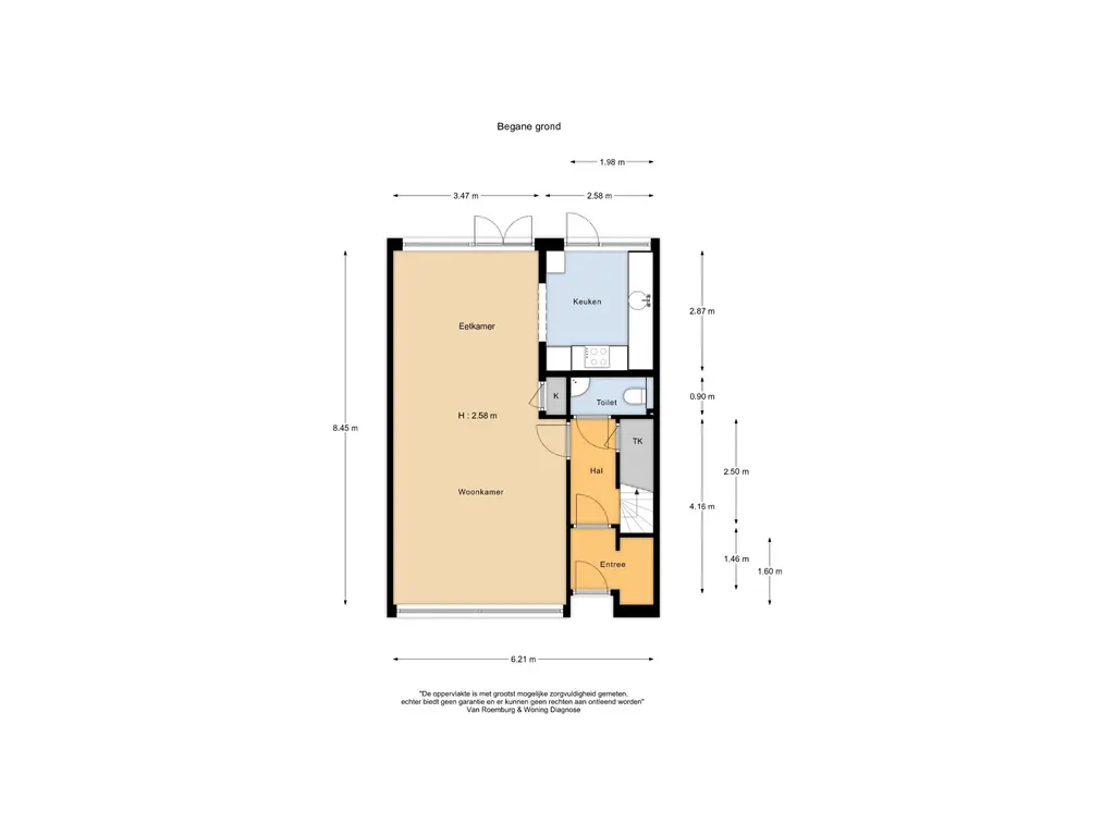 Via de entree kom je binnen in de hal met toegang tot de woonkamer en keuken. De lichte en ruime woonkamer vormt het hart van het huis en staat in verbinding met de keuken. Vanuit de keuken is er direct toegang tot de achtertuin (NW). De keuken heeft een koelkast, vriezer, oven, en een 5 pits gascomfort.