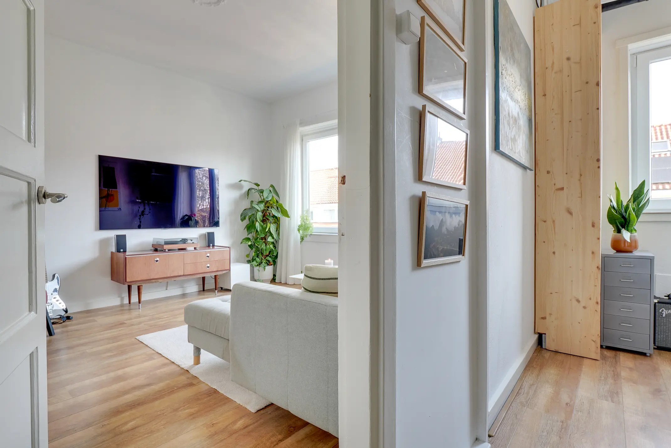 Via de eigen entree bereik je de eerste verdieping, waar een prettige woonverdieping je verwelkomt.