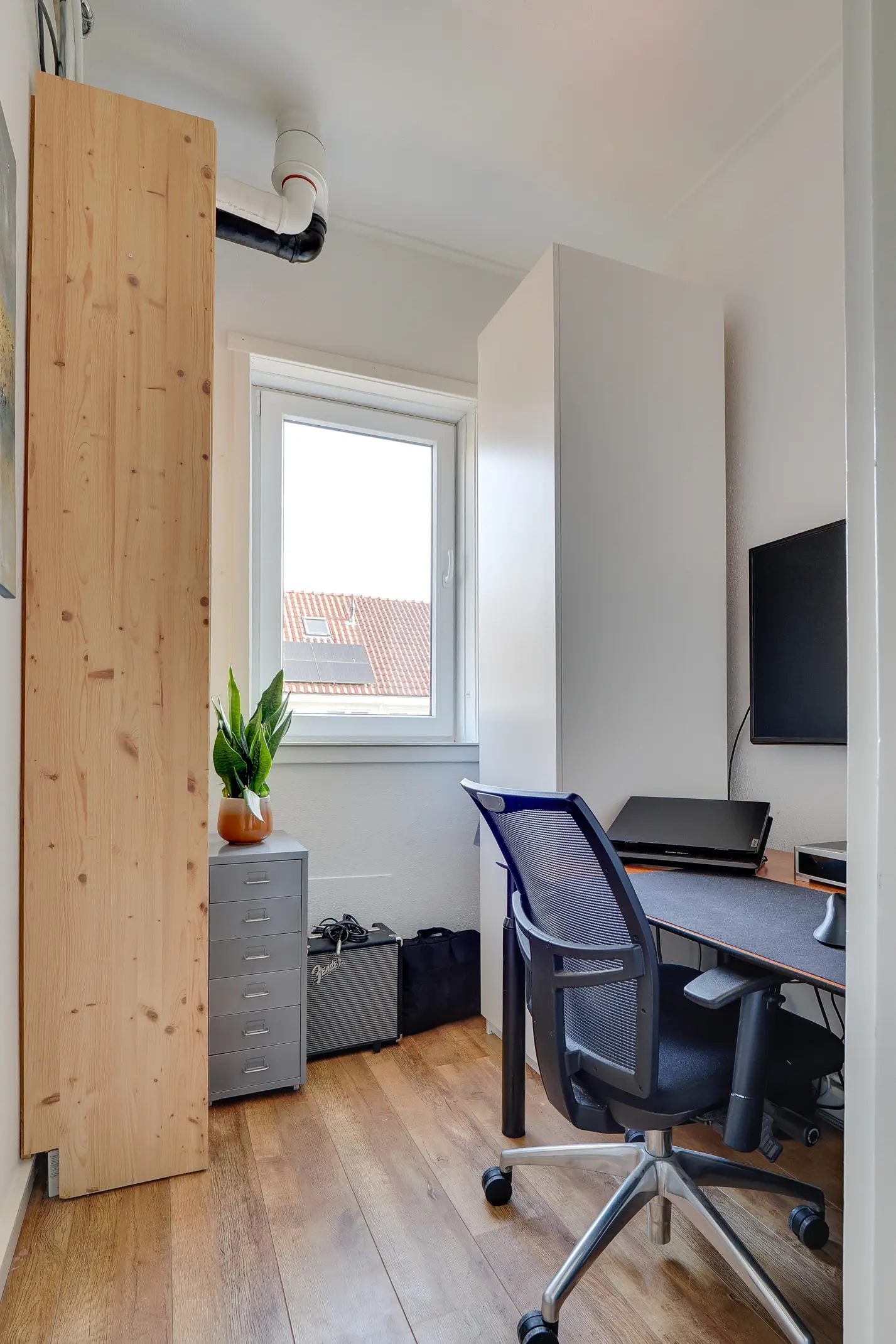 Verder beschikt de woning over twee slaapkamers, waarvan er één uitstekend geschikt is als kinder- of werkkamer.