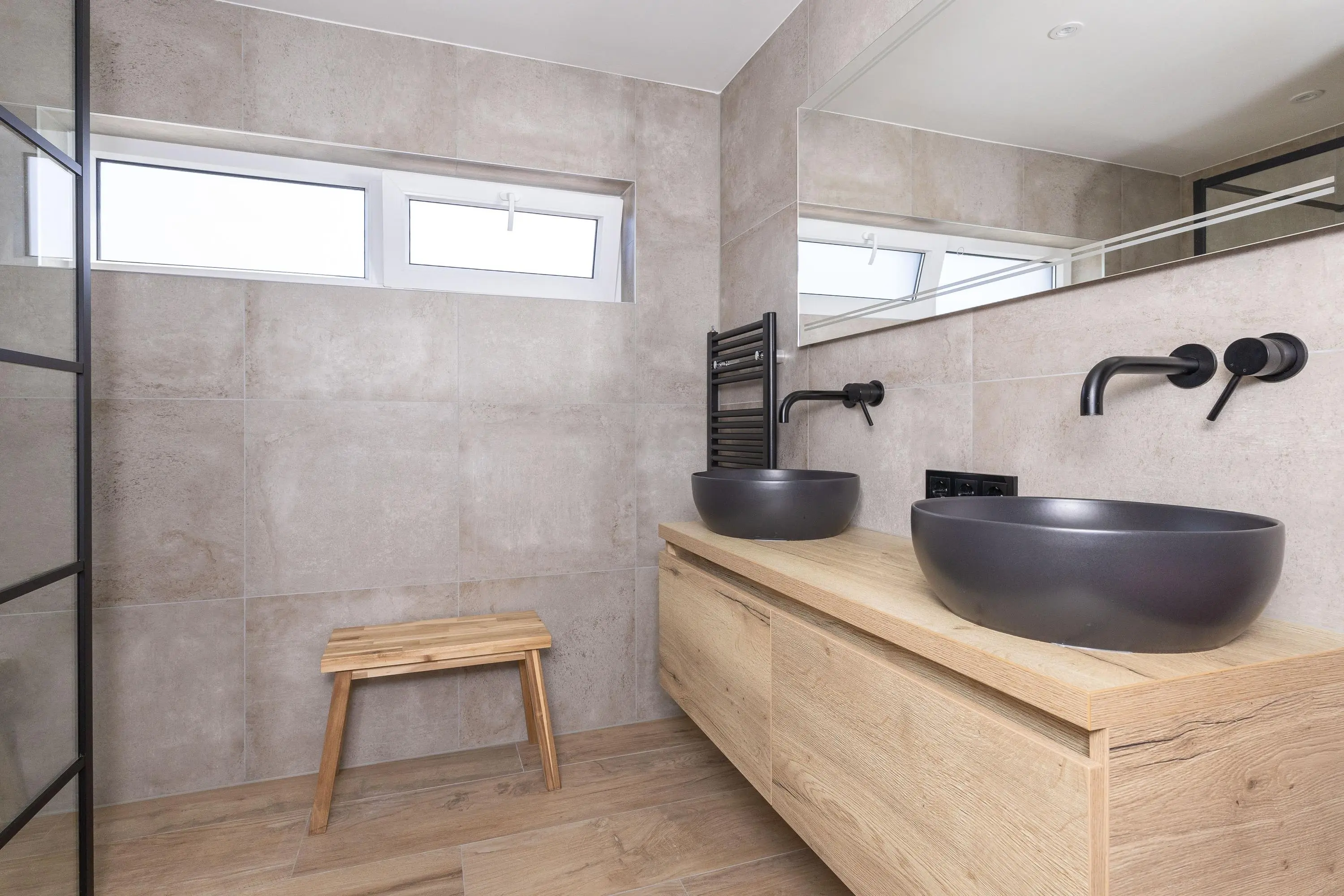 •met Moderne badkamer met inloopdouche en dubbel wastafelmeubel (2021)