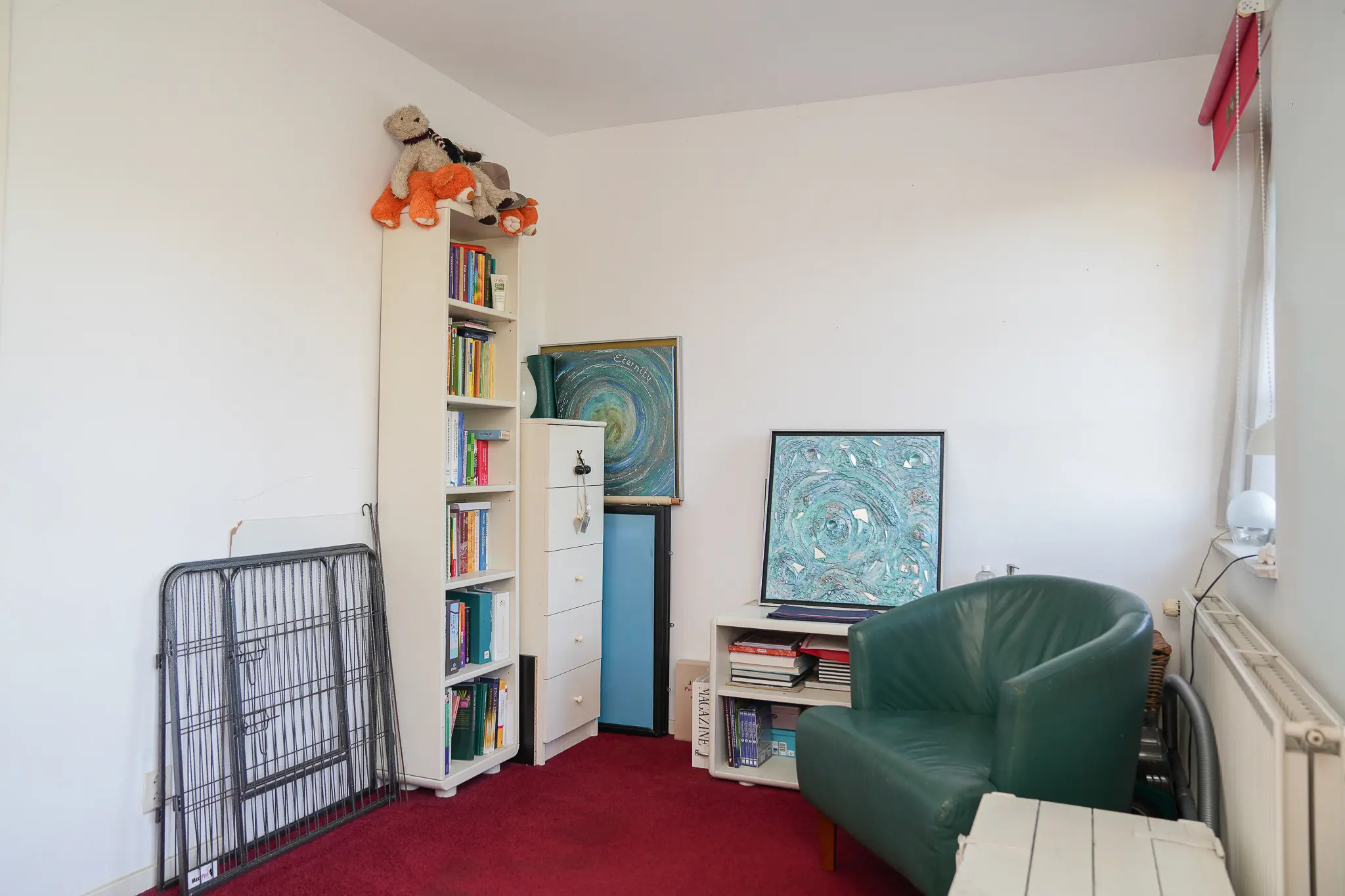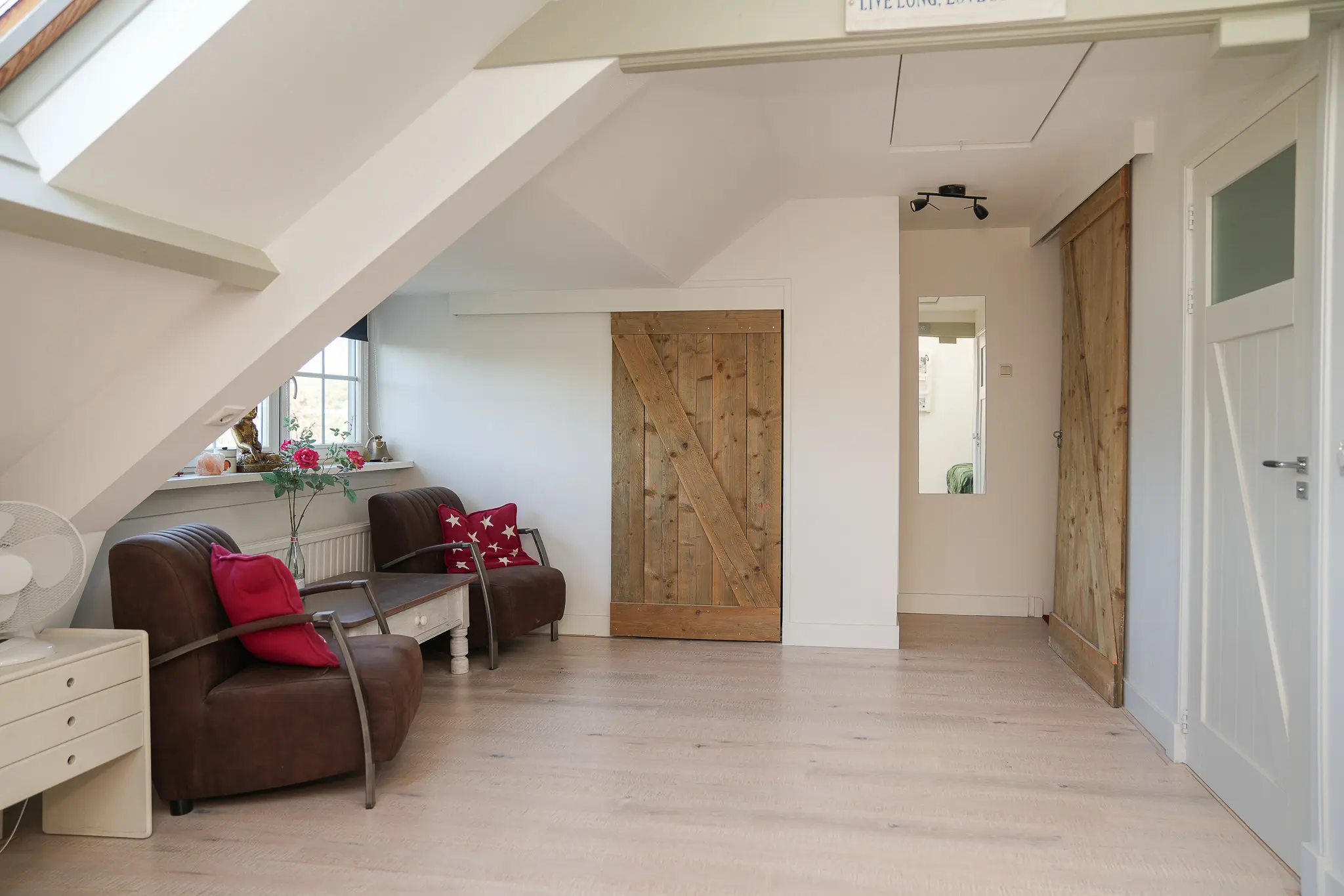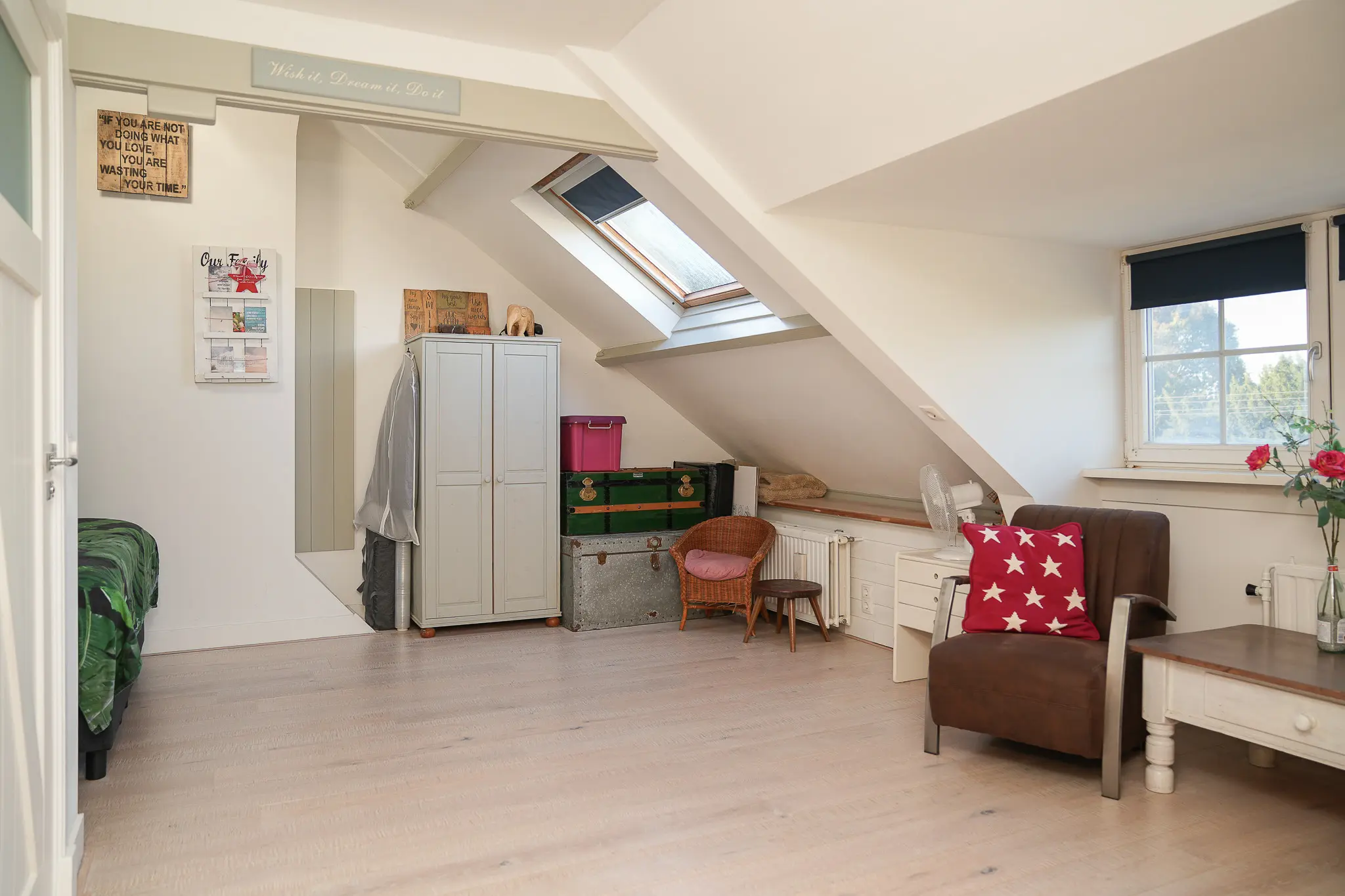 De tweede verdieping biedt nog een extra kamer en een tweede badkamer met inloopdouche, wastafel en toilet. Een perfecte verdieping voor gasten, een thuiskantoor of een tienerkamer met eigen voorzieningen.
