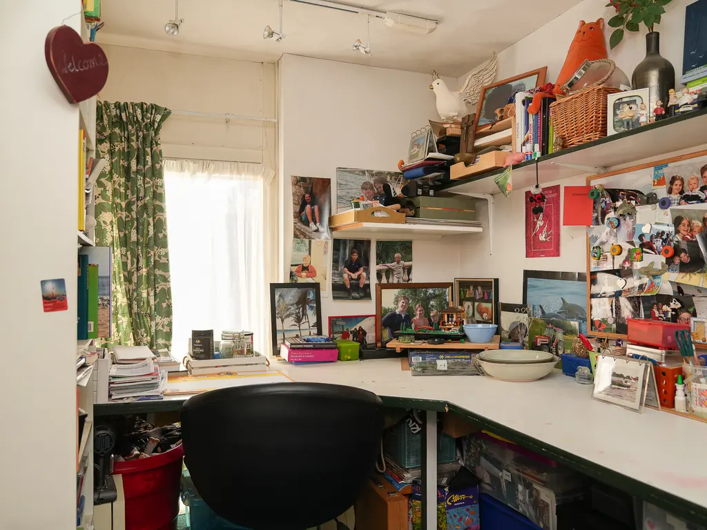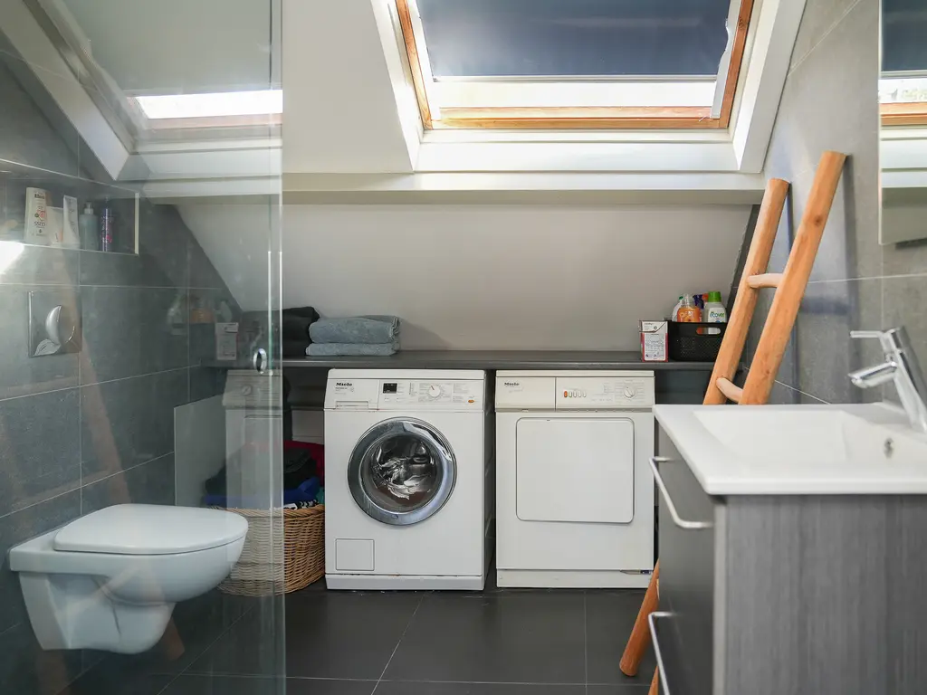 De tweede verdieping biedt nog een extra kamer en een tweede badkamer met inloopdouche, wastafel en toilet. Een perfecte verdieping voor gasten, een thuiskantoor of een tienerkamer met eigen voorzieningen.