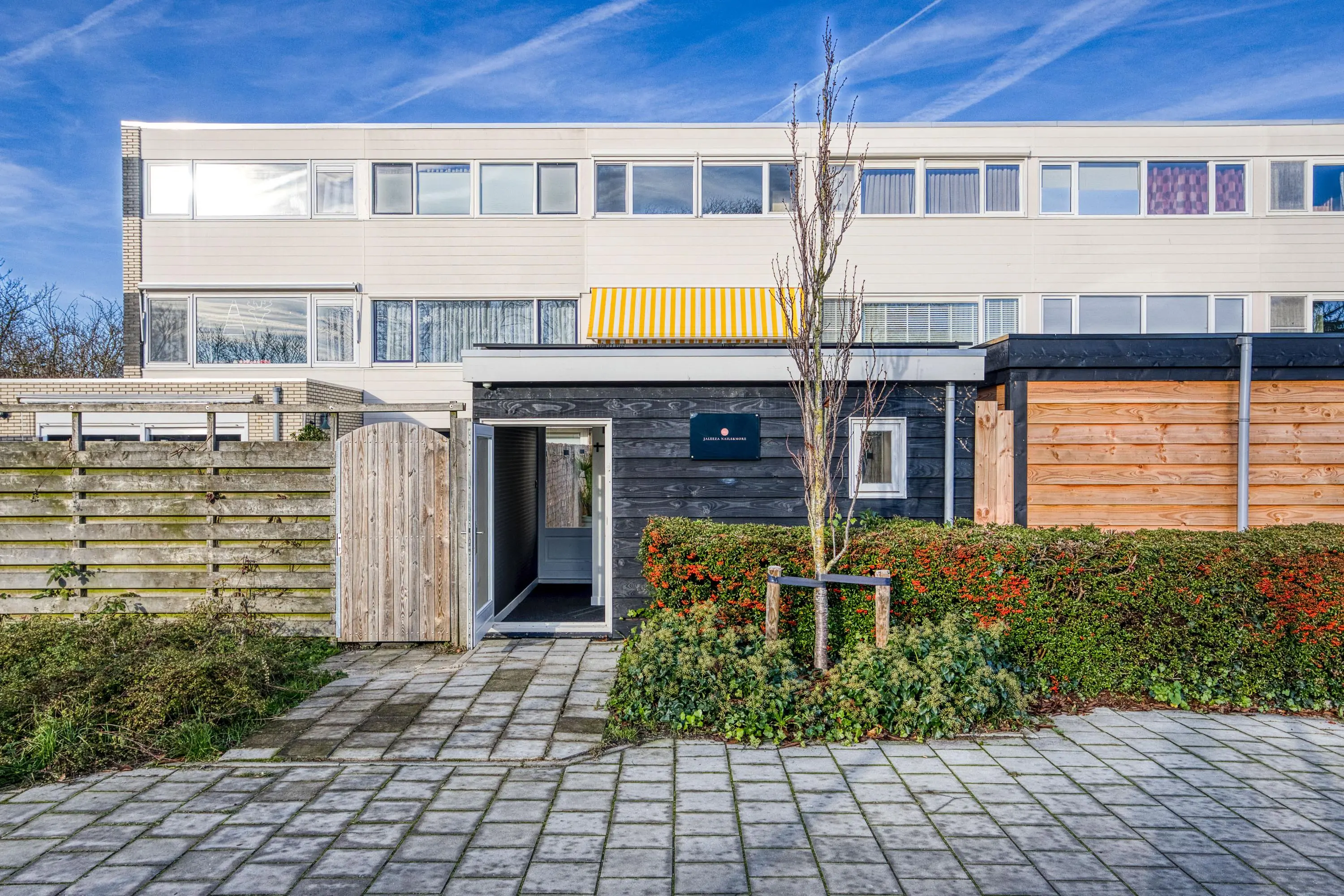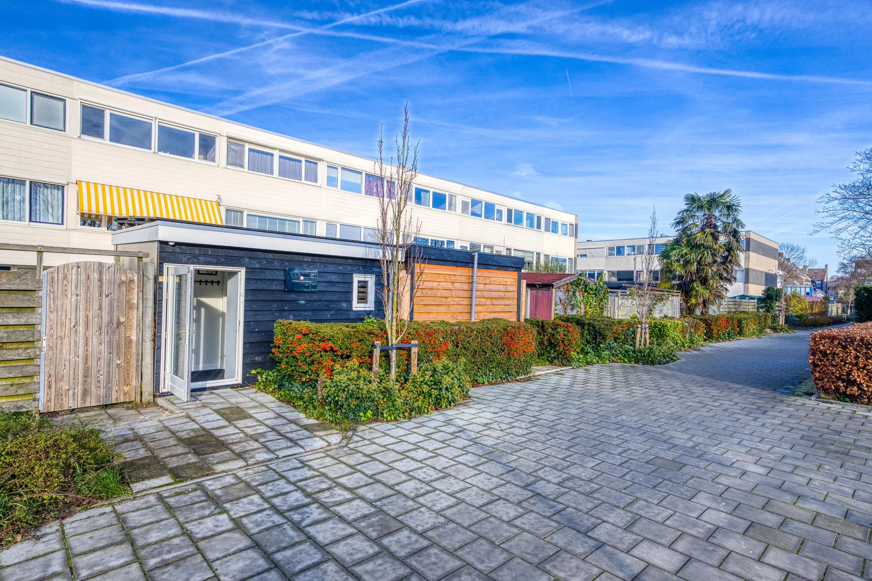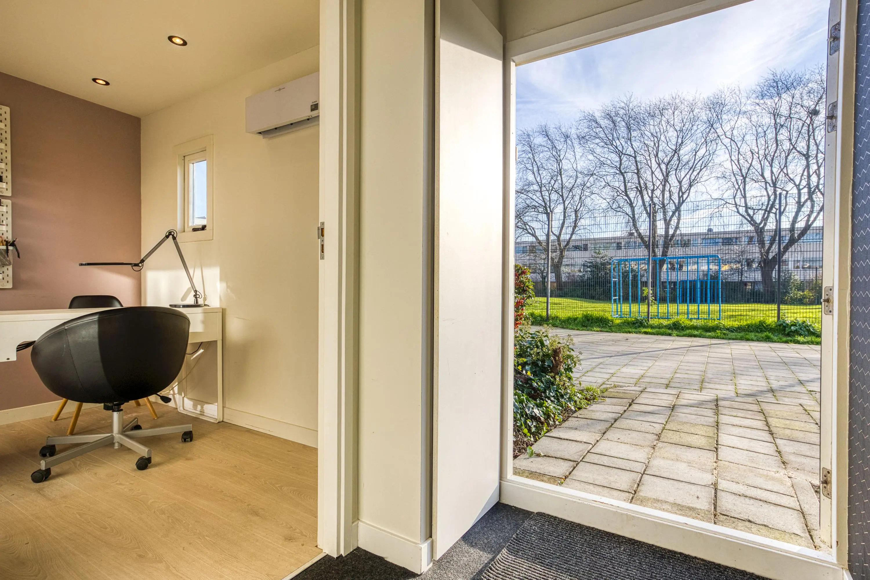 De zonnige achtertuin op het zuiden biedt meerdere zitplekken en grenst direct aan een grasveld. Via het achterpad loop je zo naar winkelcentrum De Huesmolen. De volledig geïsoleerde tuinstudio maakt de tuin extra veelzijdig: ideaal voor werken, logeren, sporten of hobby’s.