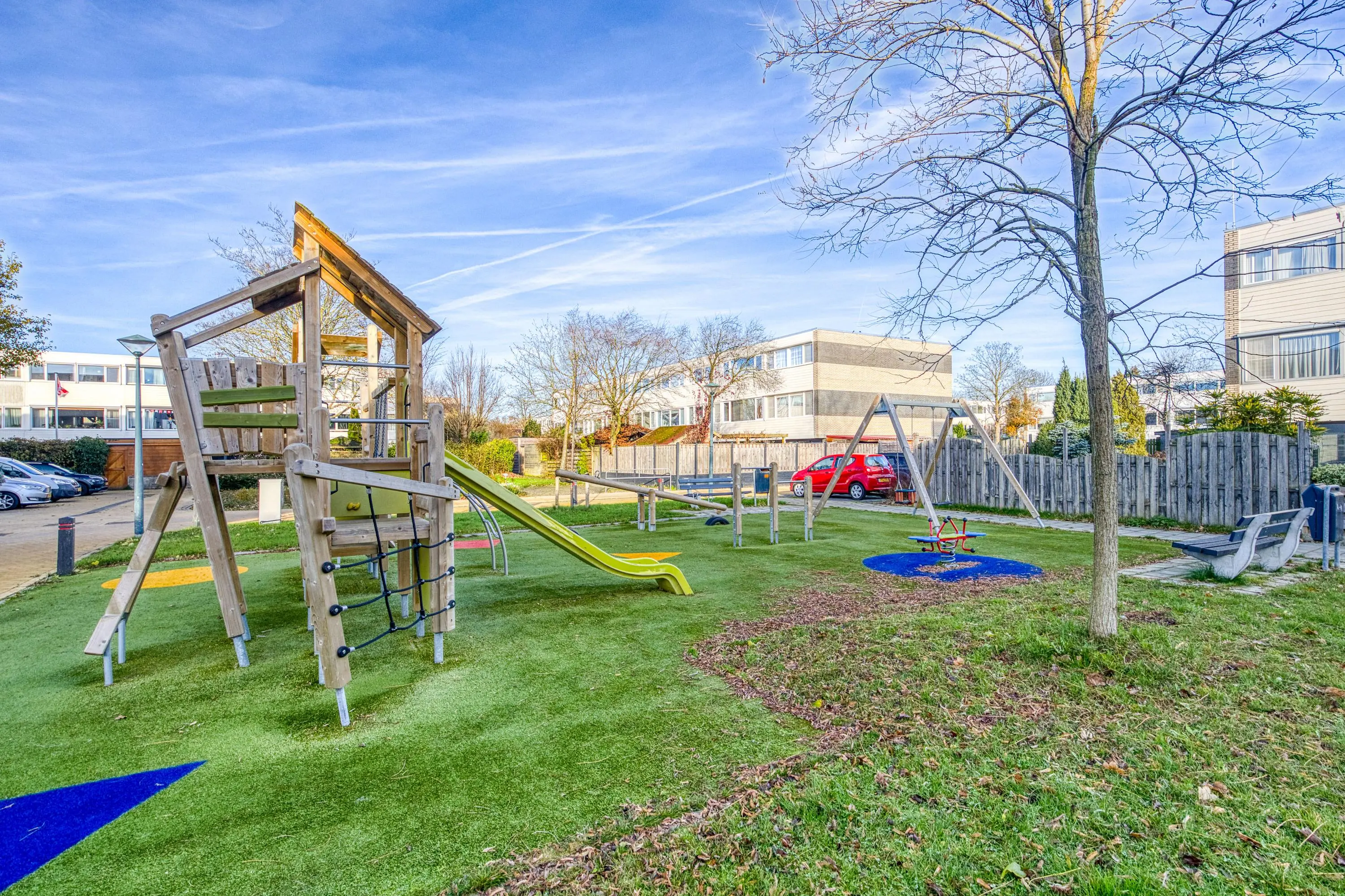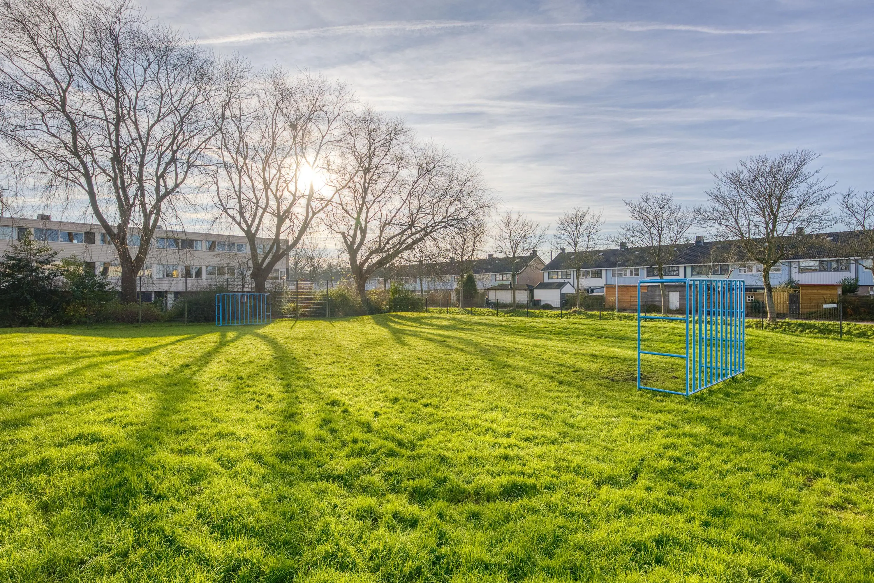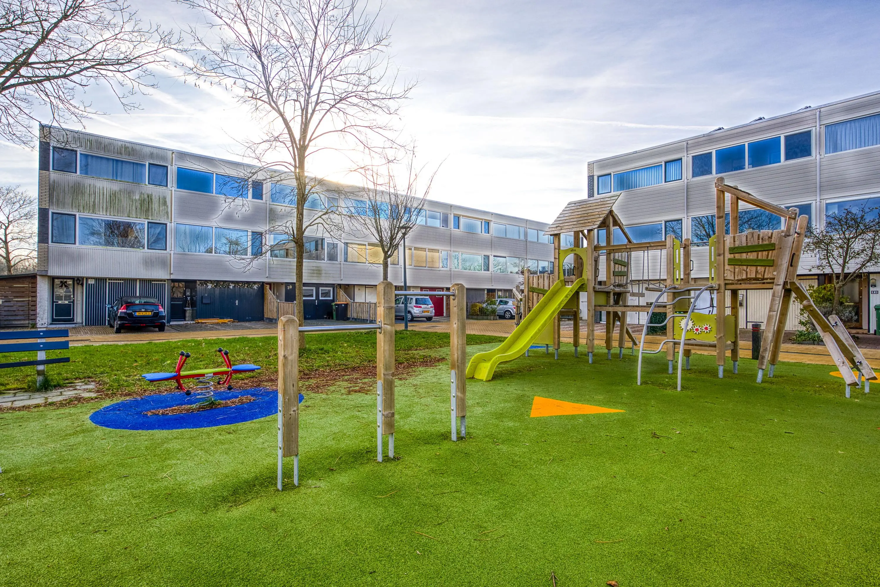 De zonnige achtertuin op het zuiden biedt meerdere zitplekken en grenst direct aan een grasveld. Via het achterpad loop je zo naar winkelcentrum De Huesmolen. De volledig geïsoleerde tuinstudio maakt de tuin extra veelzijdig: ideaal voor werken, logeren, sporten of hobby’s.