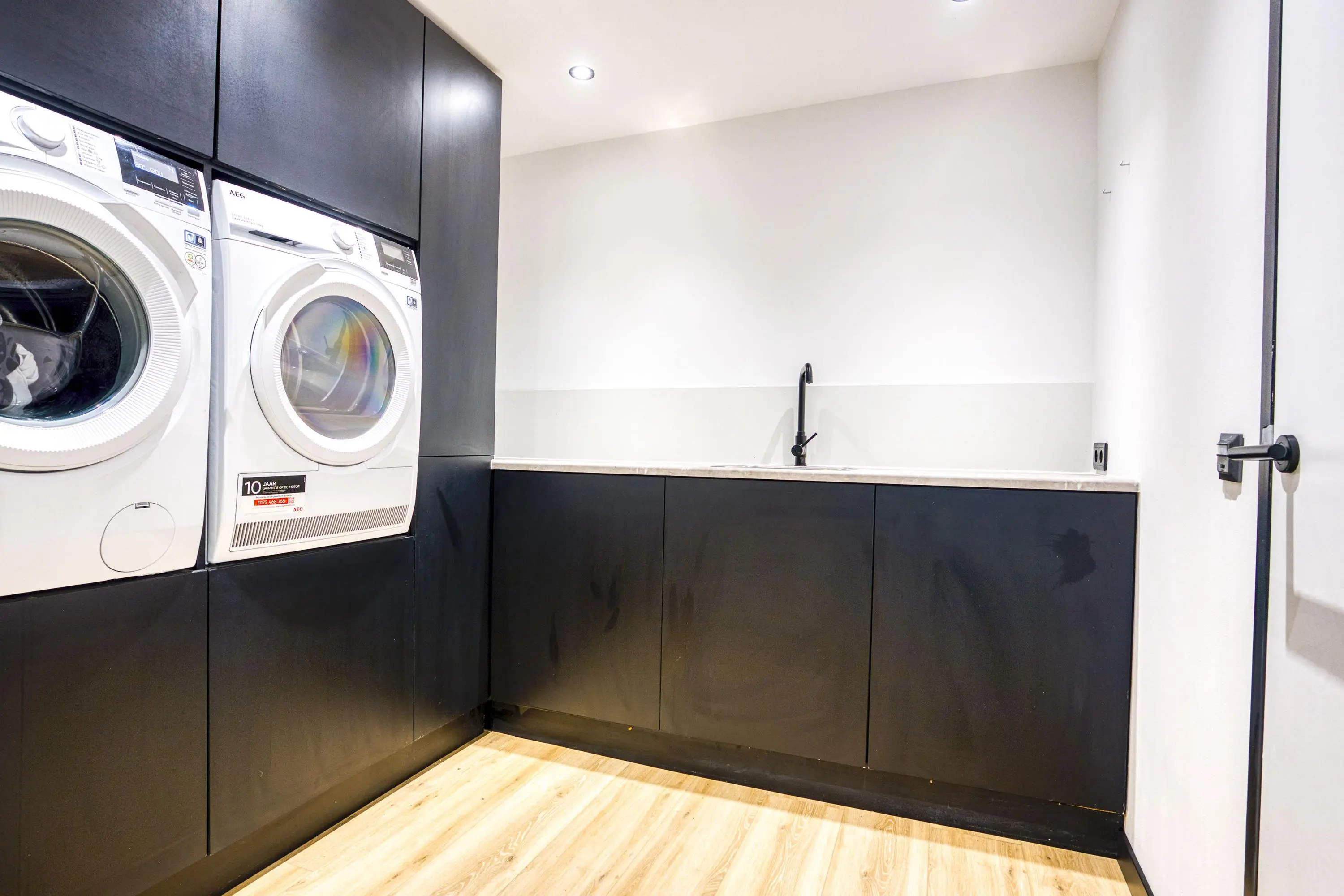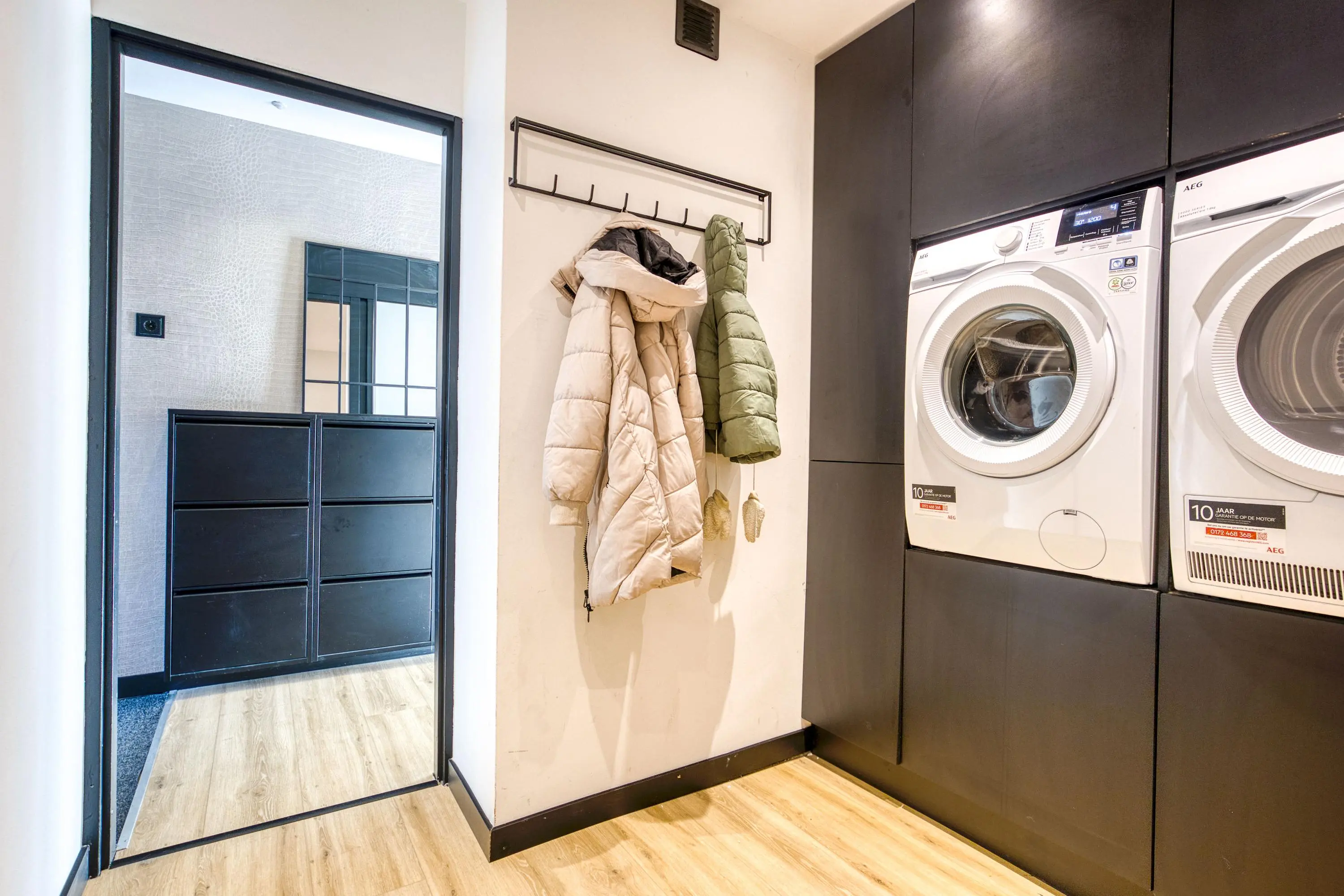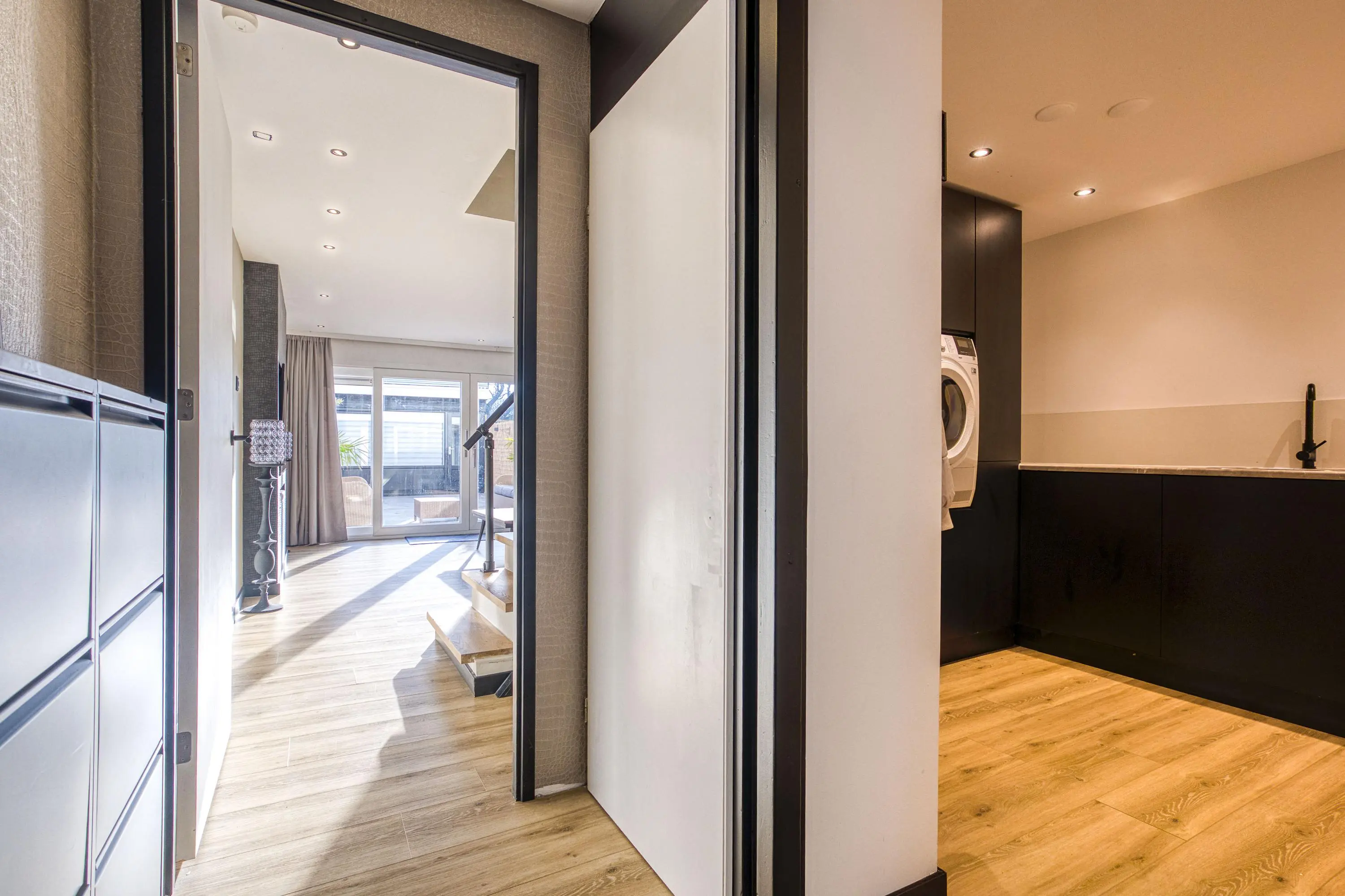 Ruime entree met toegang tot de garage. Aan de tuinzijde ligt de royale tuinkamer, perfect als extra woonkamer, werk-/hobbyruimte of speelkamer. Deze verdieping beschikt daarnaast over een separate wasruimte met wasmachine- en drogeropstelling en extra kastruimte en toegang naar de bergruimte.