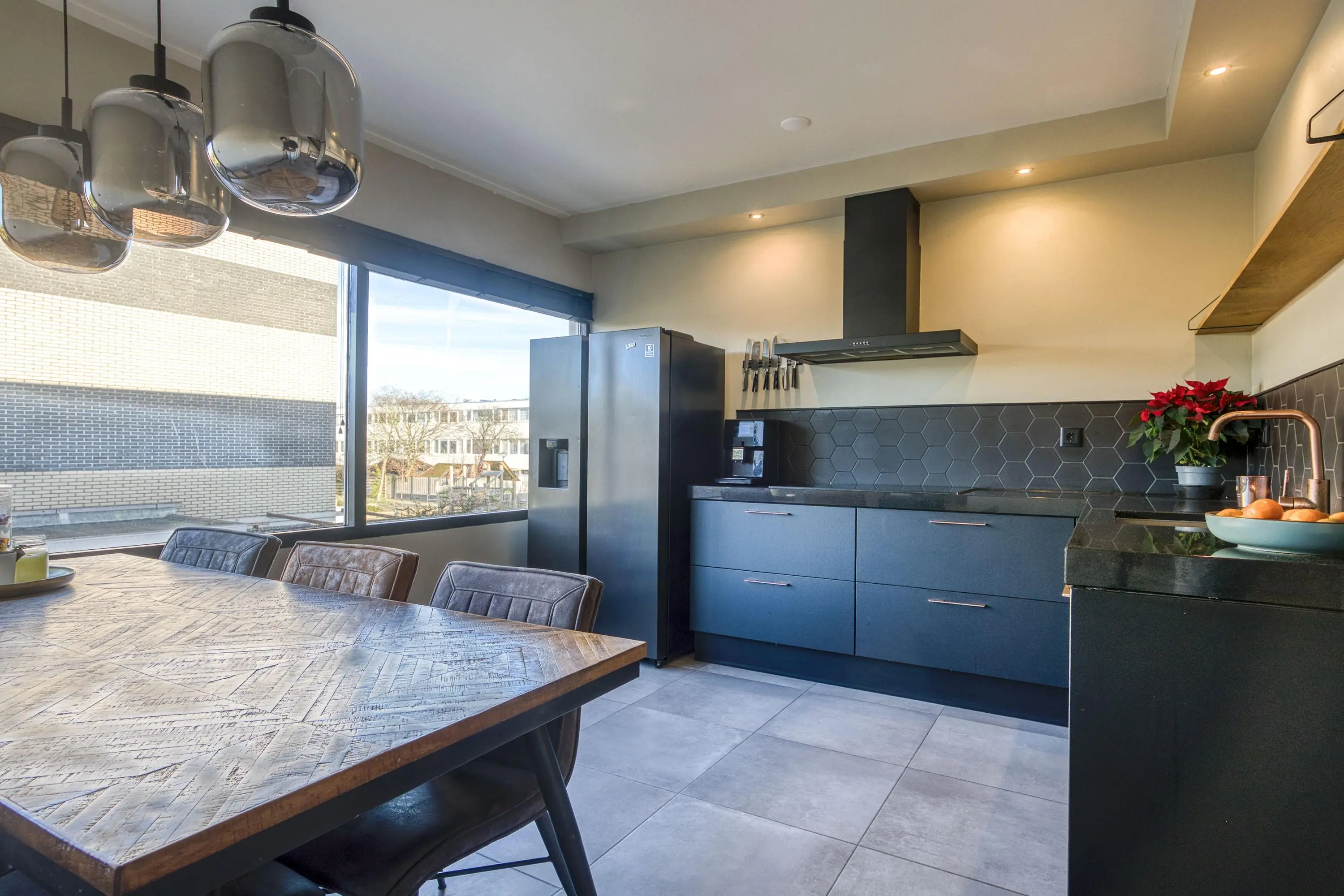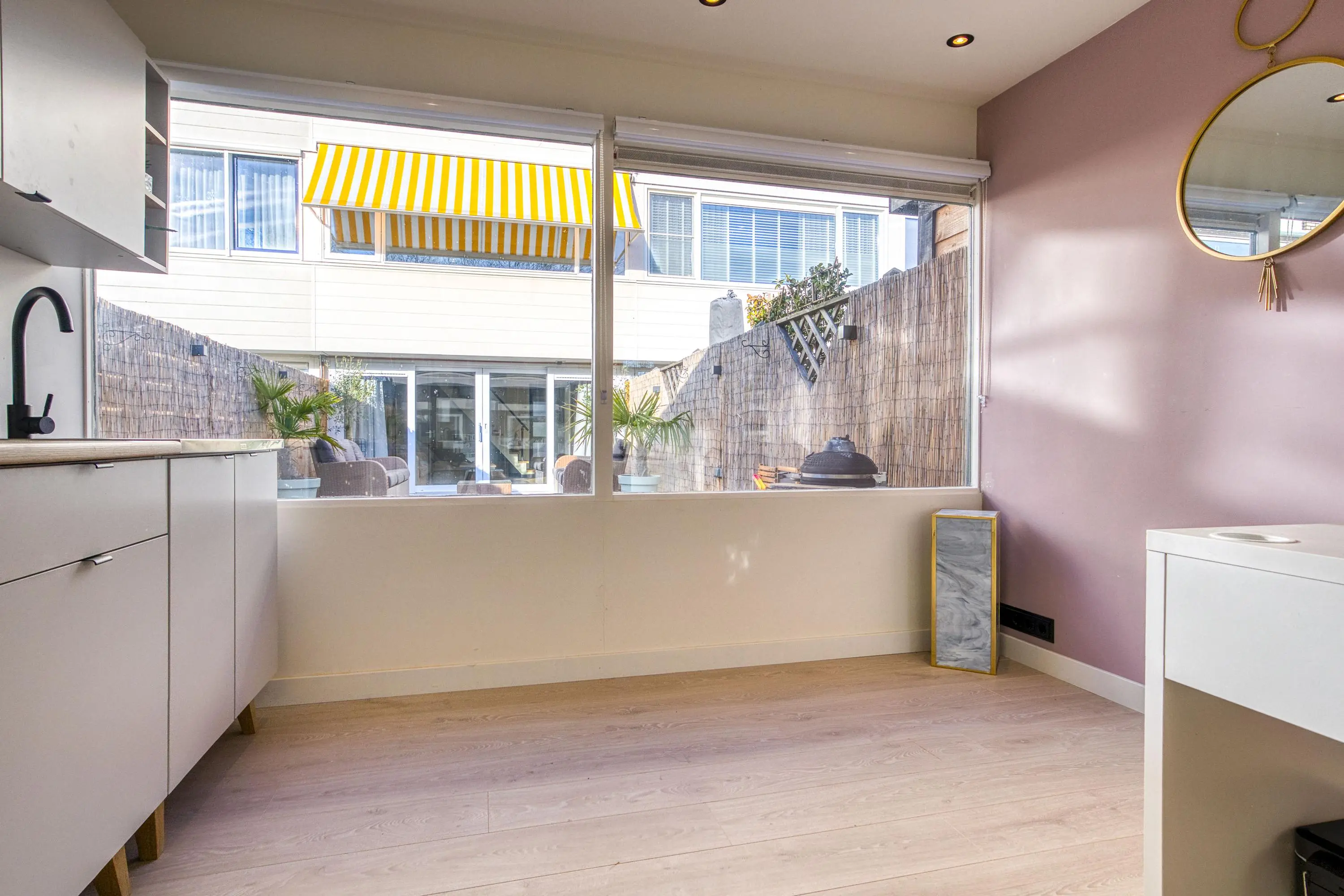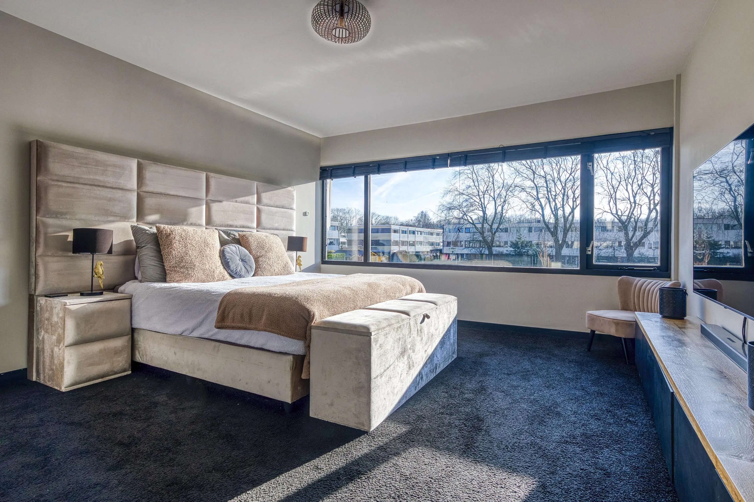 Een heerlijke, royale slaapkamer met zonnescherm en fraai uitzicht op de achterzijde. Tevens eenvoudig weer in gebruik te nemen als woonkamer. Aan de straatzijde een moderne woonkeuken met vaatwasser, combi-oven, koelkast, 5-pits inductiekookplaat, afzuigkap en een composiet aanrechtblad.