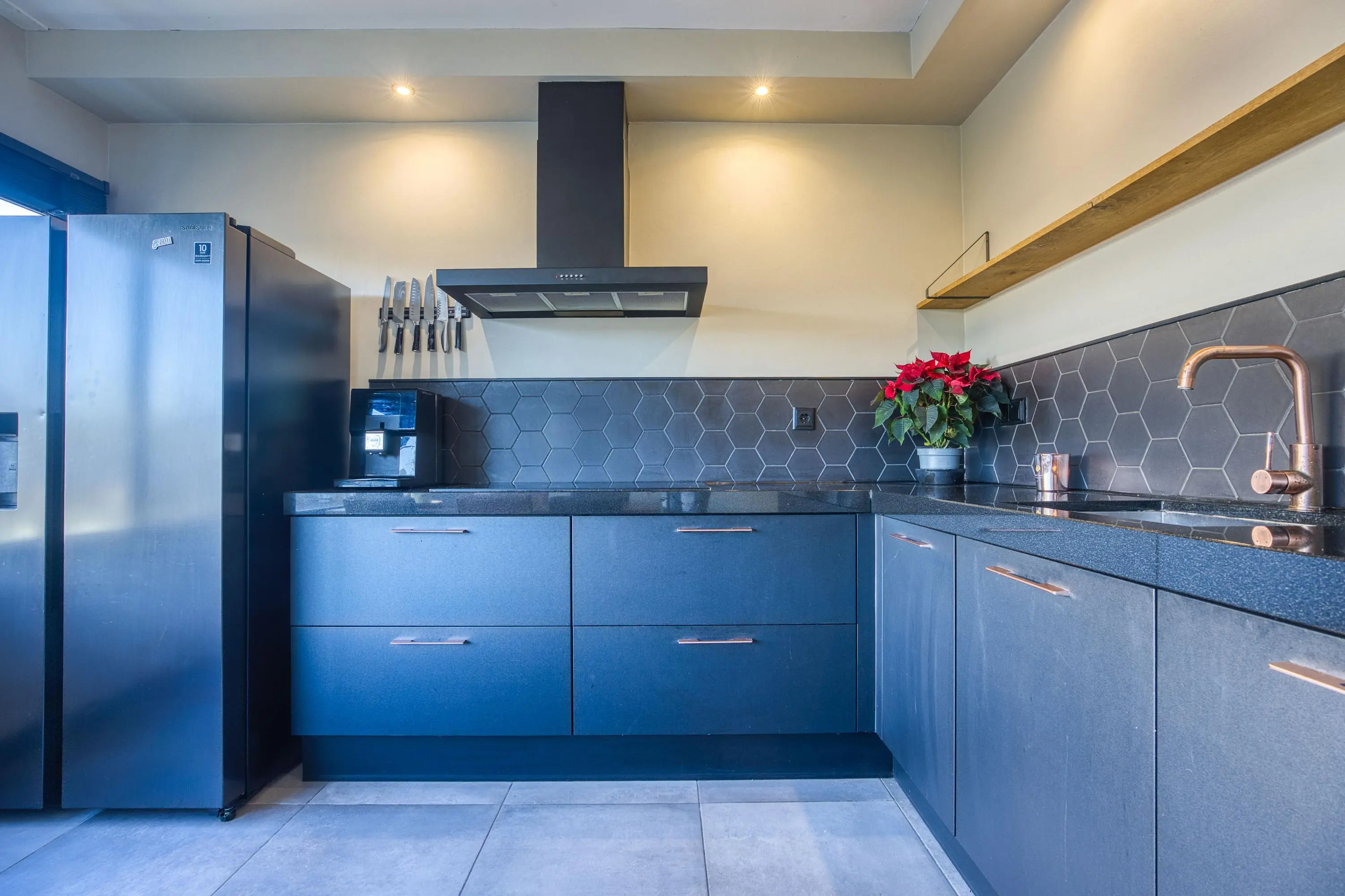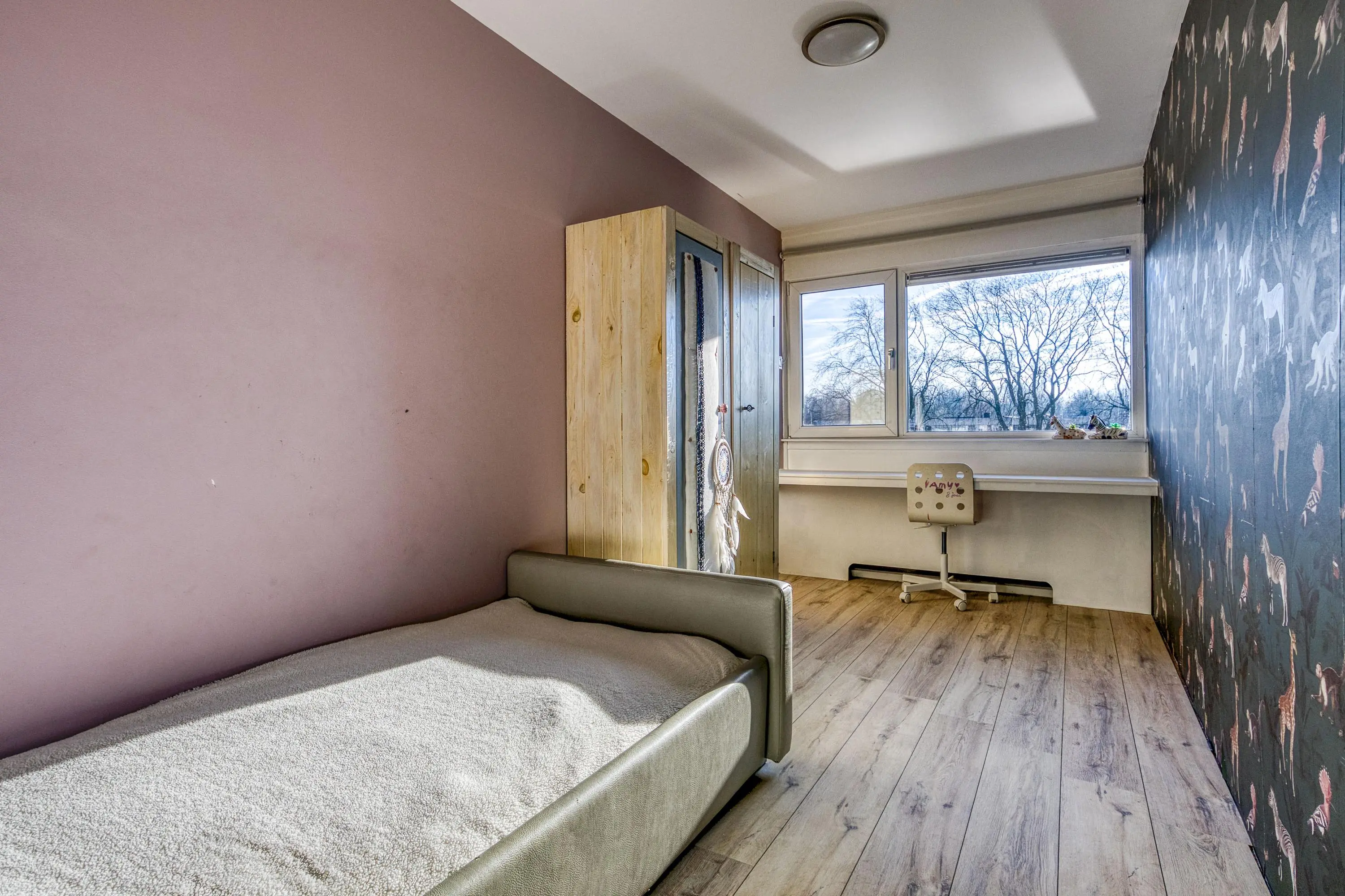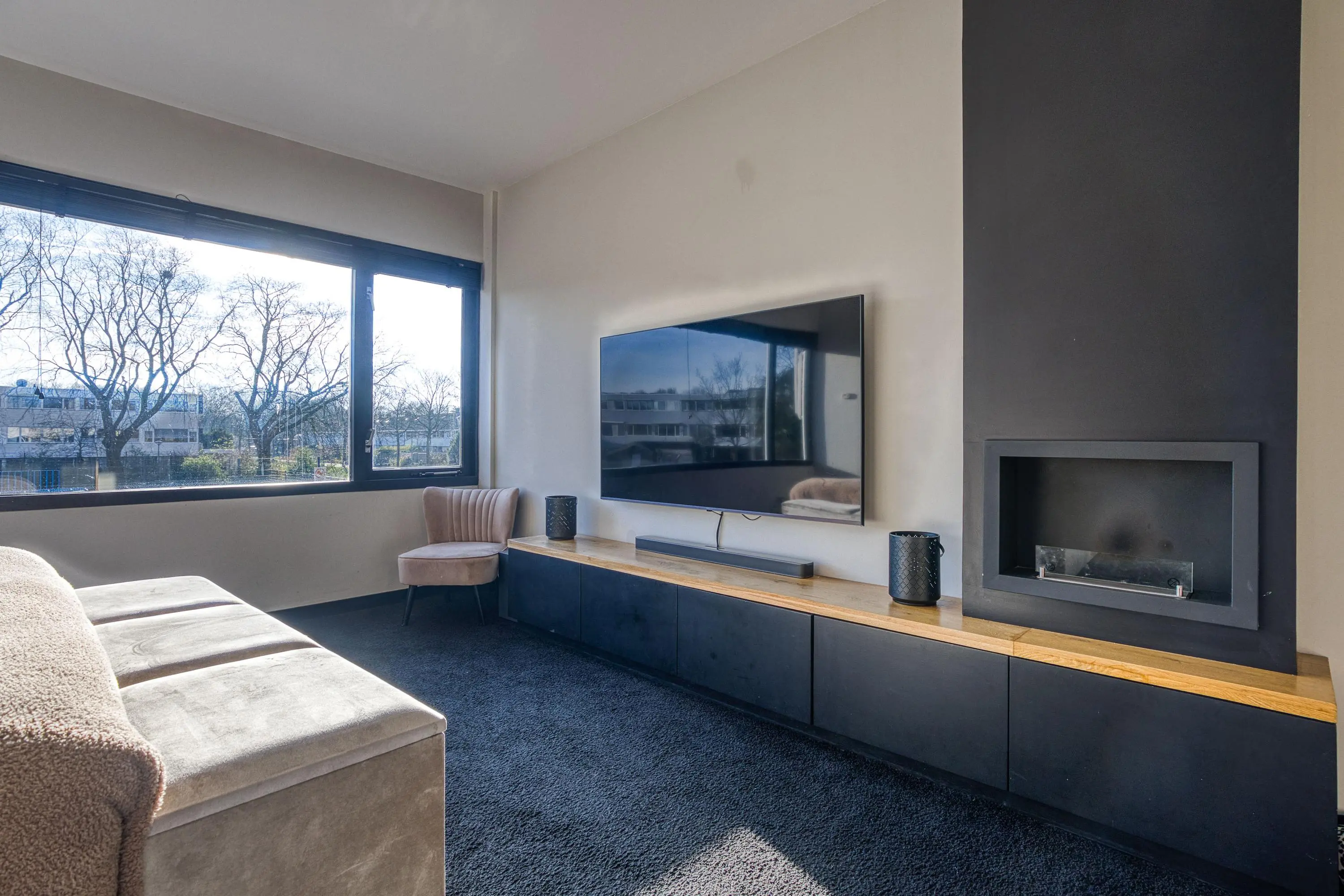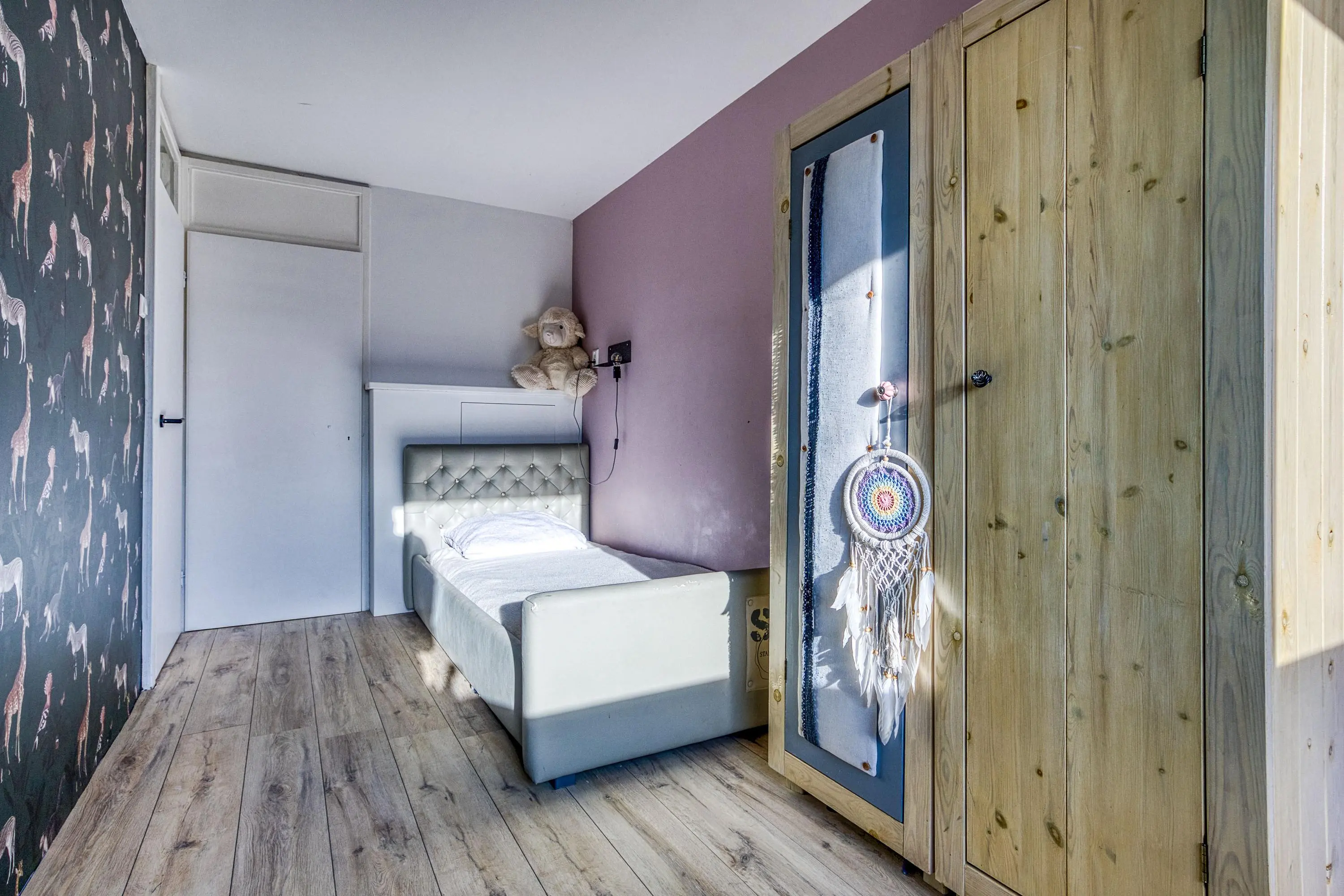 Een heerlijke, royale slaapkamer met zonnescherm en fraai uitzicht op de achterzijde. Tevens eenvoudig weer in gebruik te nemen als woonkamer. Aan de straatzijde een moderne woonkeuken met vaatwasser, combi-oven, koelkast, 5-pits inductiekookplaat, afzuigkap en een composiet aanrechtblad.