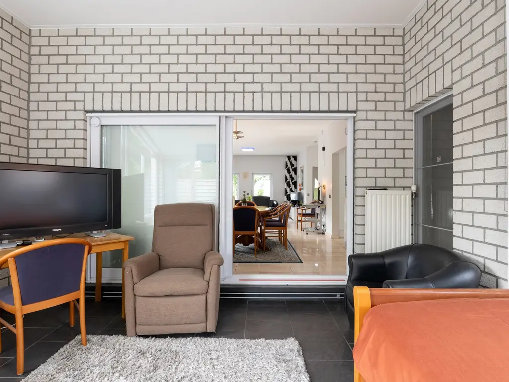 Vanuit de leefruimte is de lichtrijke veranda en de open leefkeuken bereikbaar.