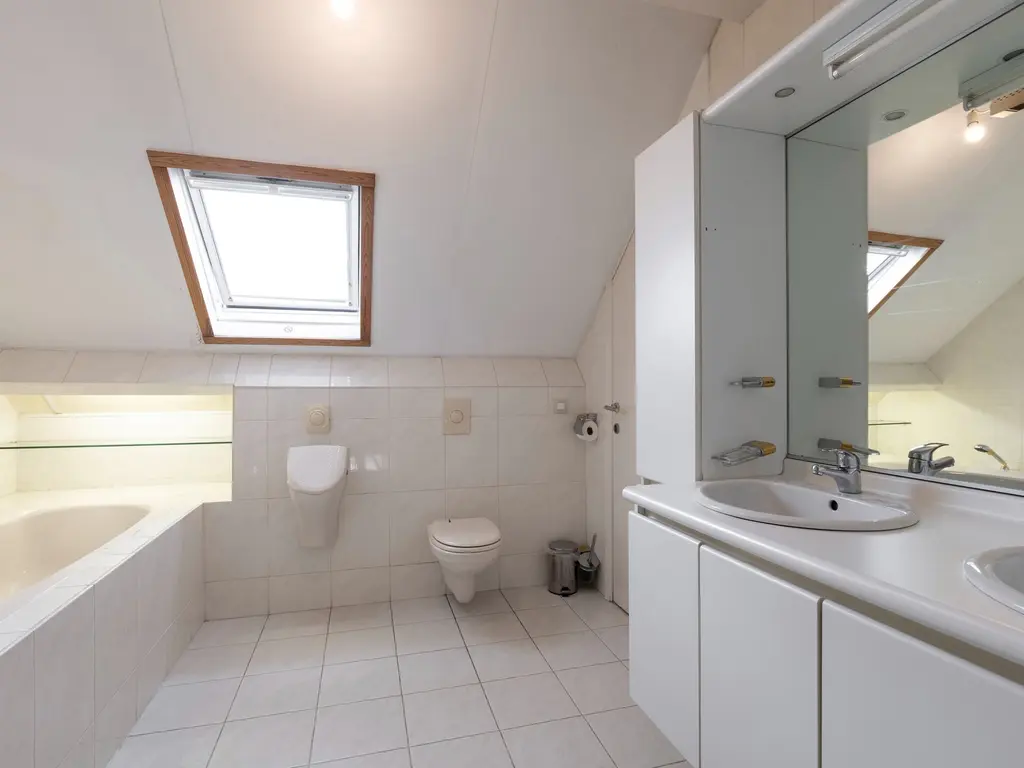 De vaste trap in de inkomhal brengt u verder naar de eerste verdieping. Hier bevinden zich 3 ruime slaapkamers en de badkamer met ligbad, een lavabo, inloopdouche en een toilet.