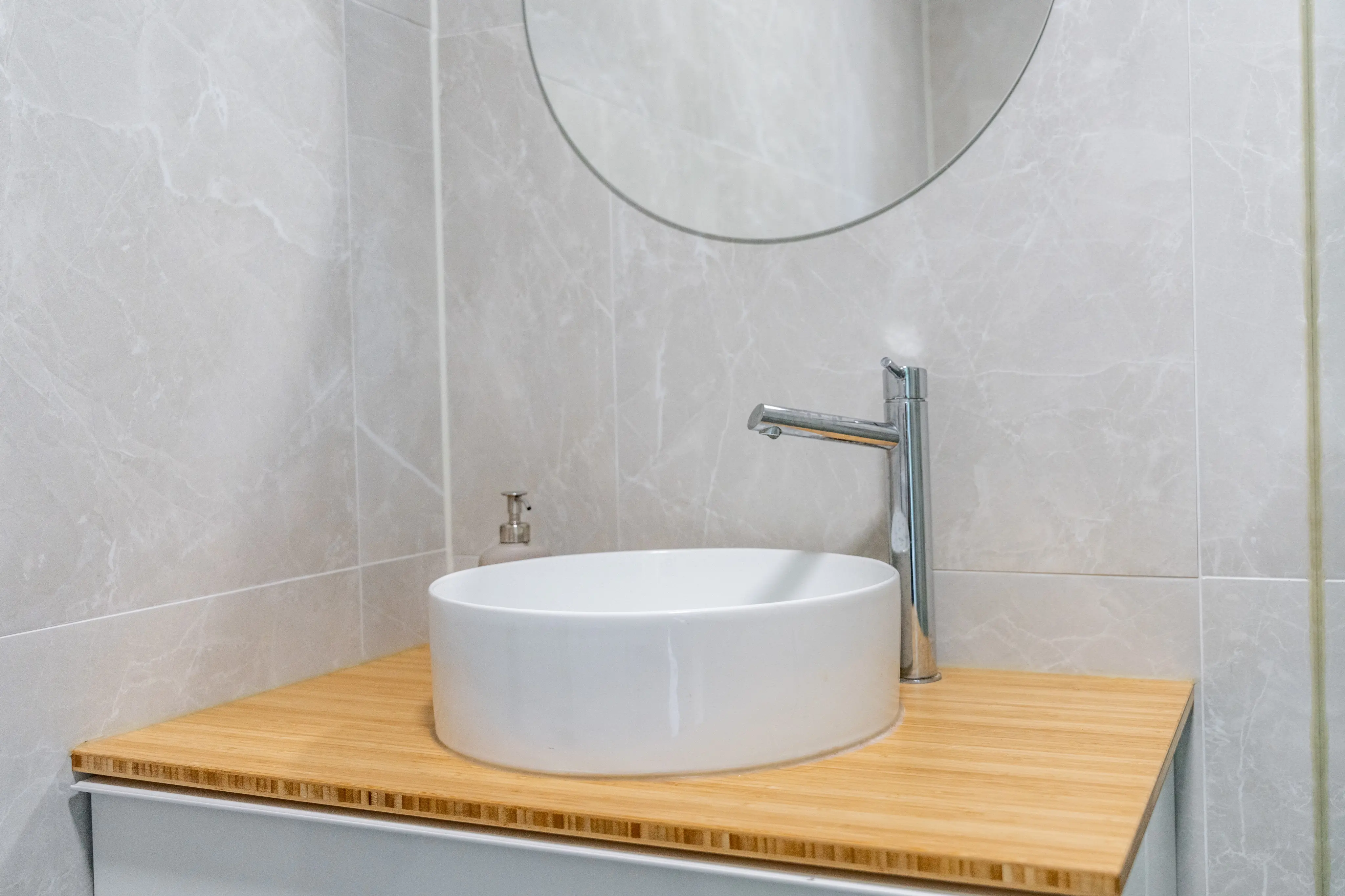 This floor offers two generously sized bedrooms, both easily accommodating a double bed and wardrobes. The bathroom is equipped with a shower, modern vanity unit, and connections for a washing machine and dryer.