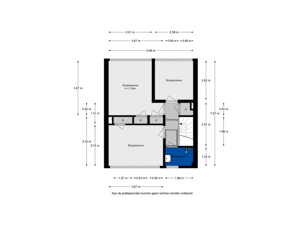 • Drie slaapkamers.
