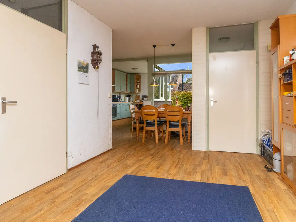 Bij binnenkomst valt direct de royale woonkamer op. Dankzij de grote raampartijen stroomt het daglicht rijkelijk naar binnen, wat zorgt voor een prettige en open sfeer. De woonkamer biedt volop ruimte voor een comfortabele zithoek én een gezellige eethoek bij de keuken.
