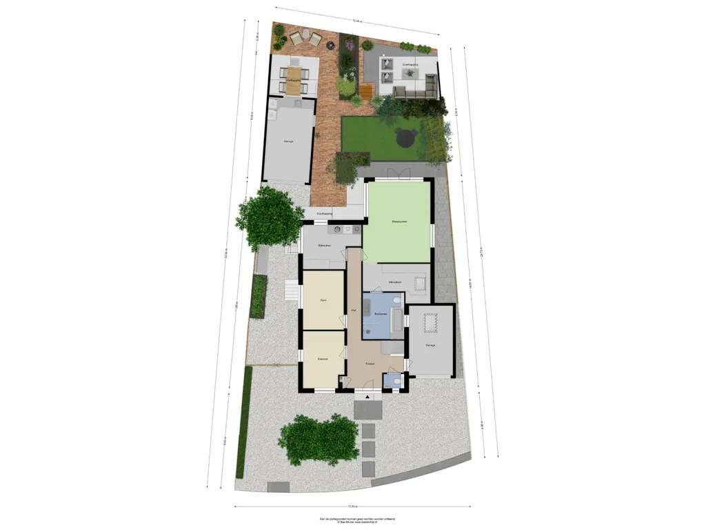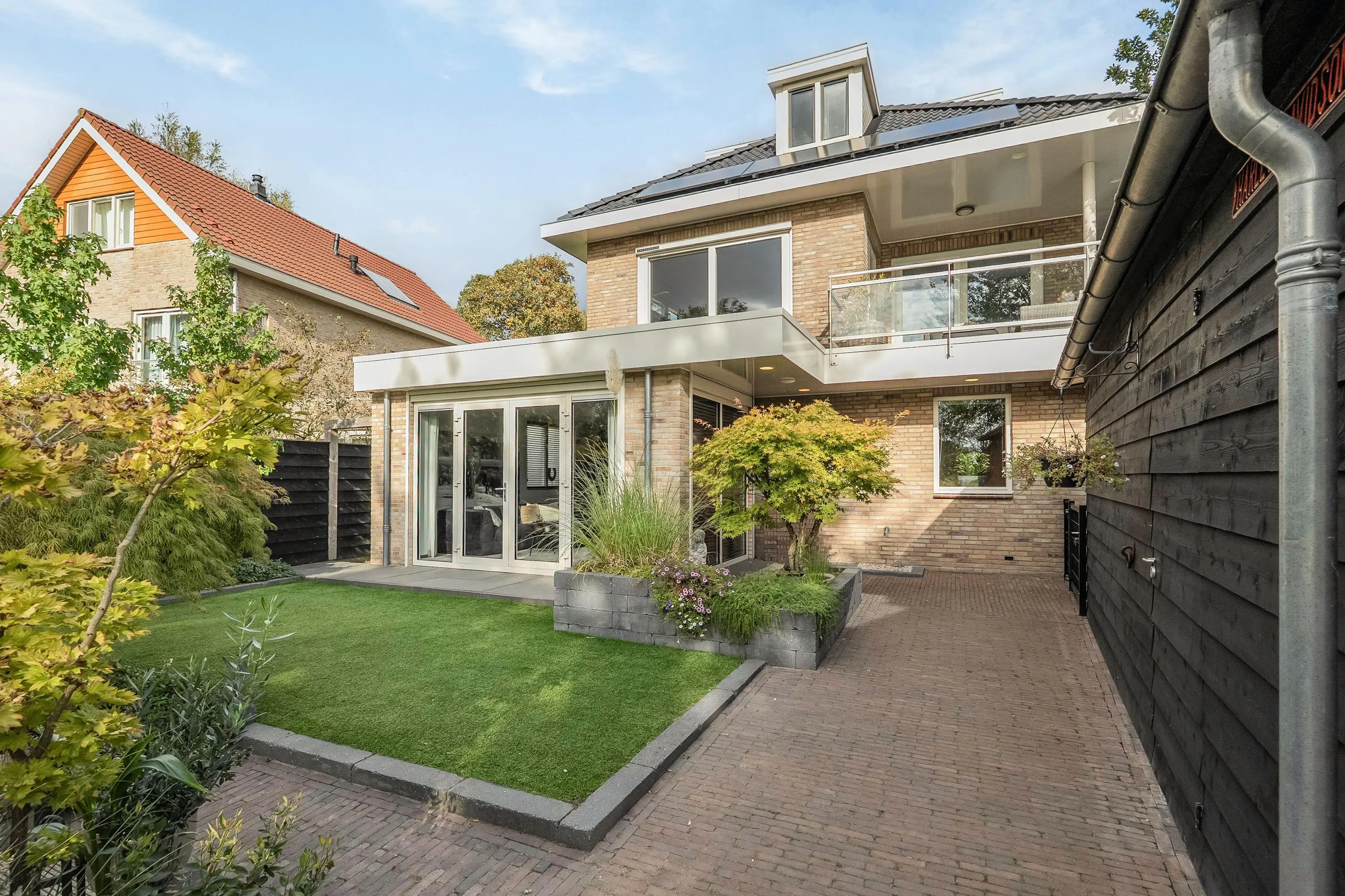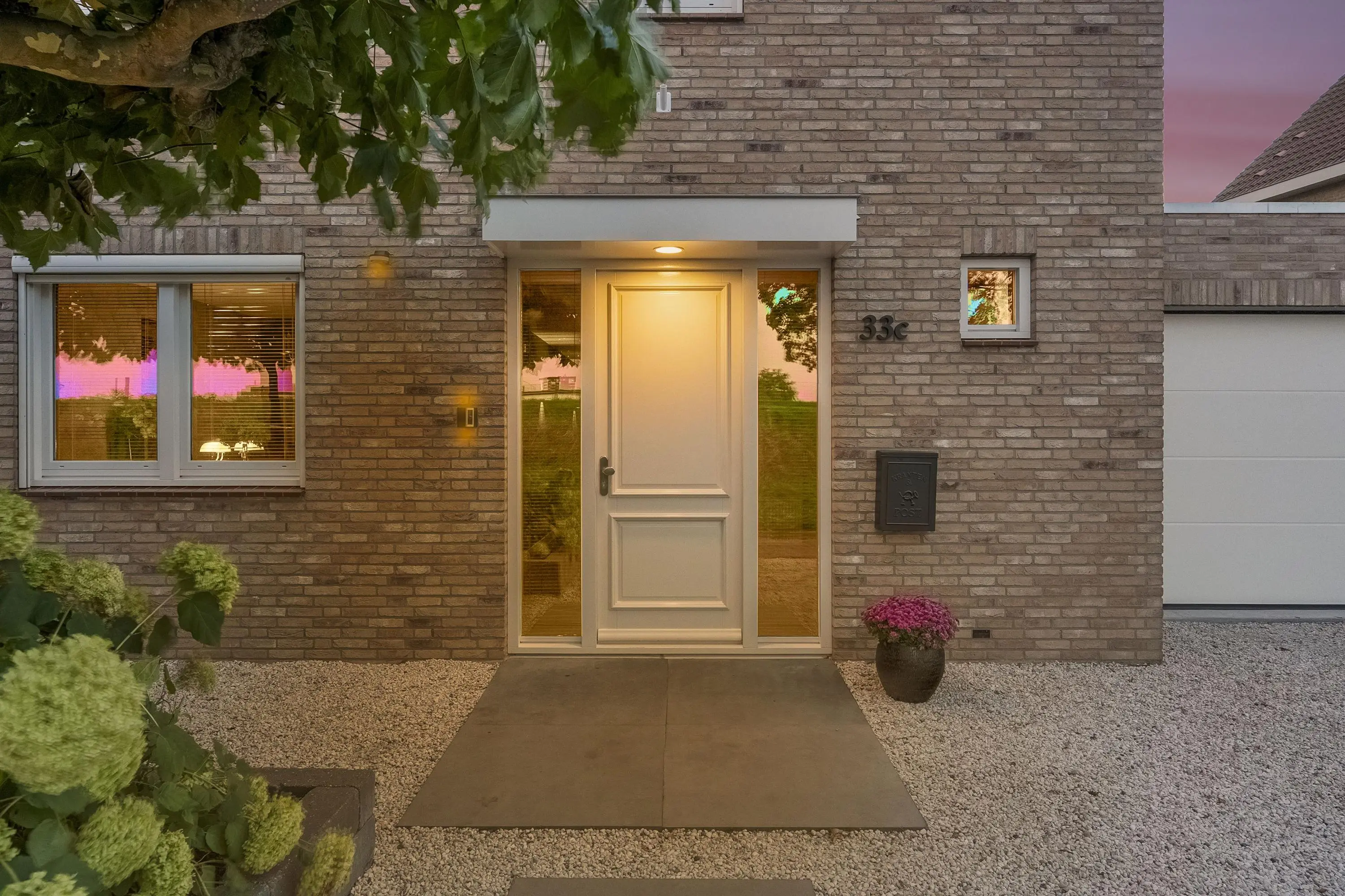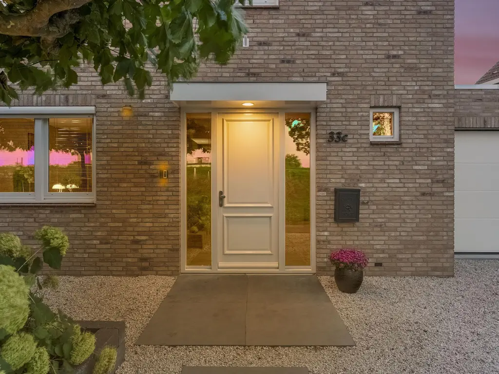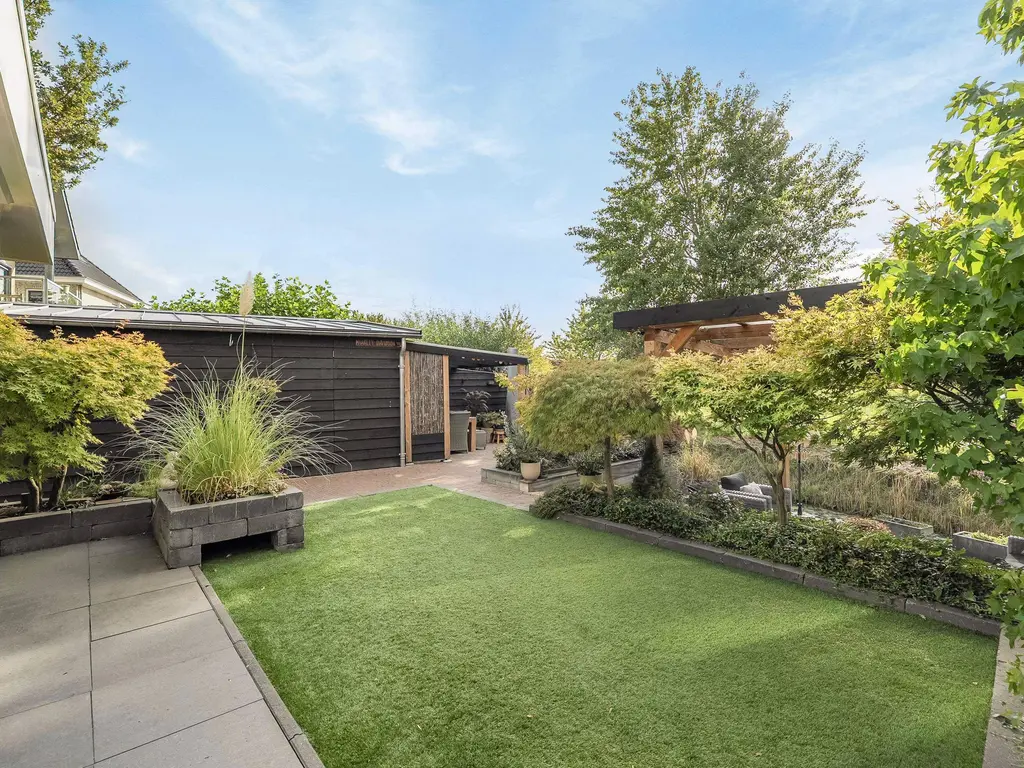 Fraai aangelegde voortuin met parkeergelegenheid voor drie auto's op eigen oprit. Tevens is de voortuin voorzien van een wandlader voor elektrische auto's, een handige buitenkraan, sfeerverlichting en stopcontacten. Via een openslaande poort heeft u toegang tot de achtertuin.