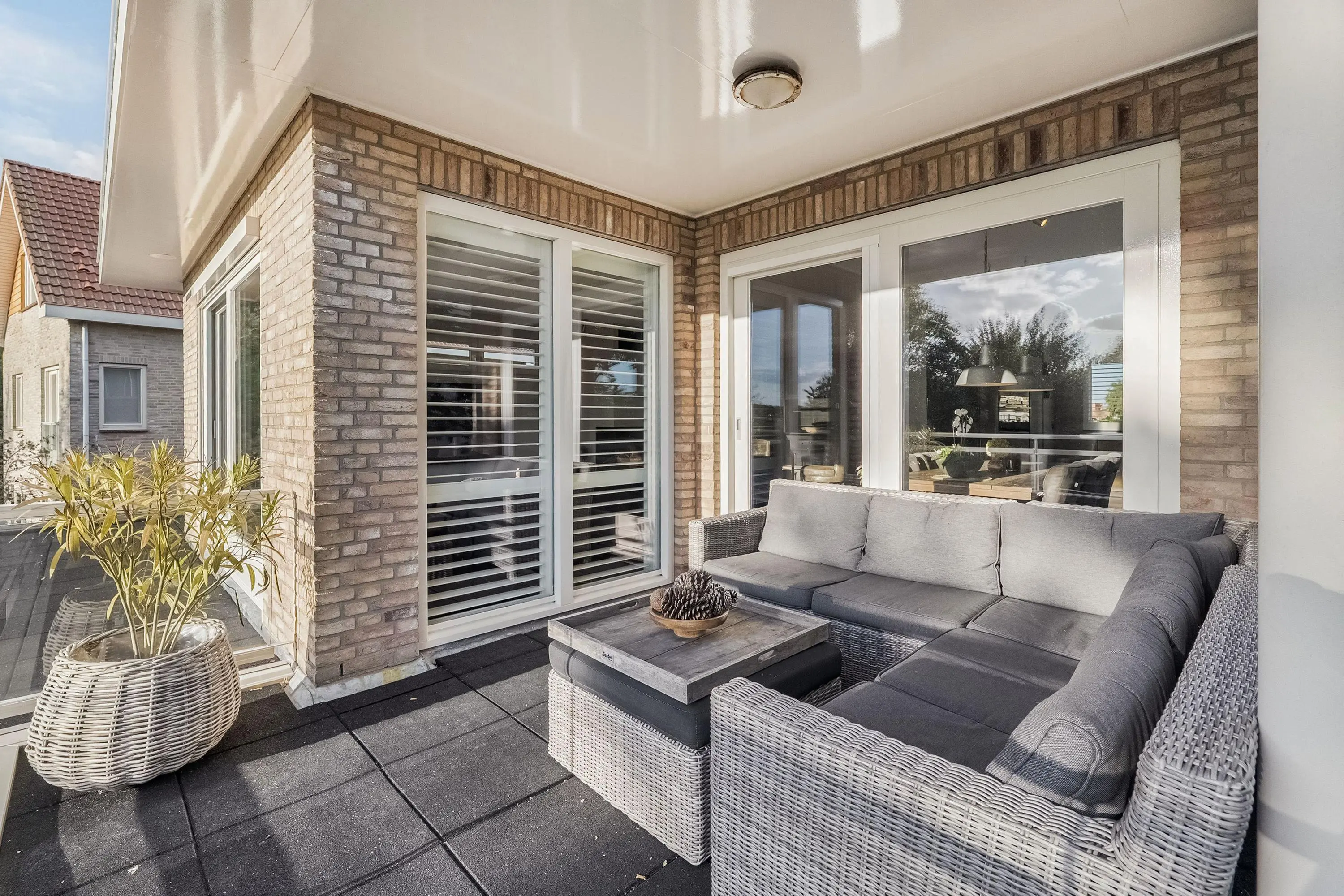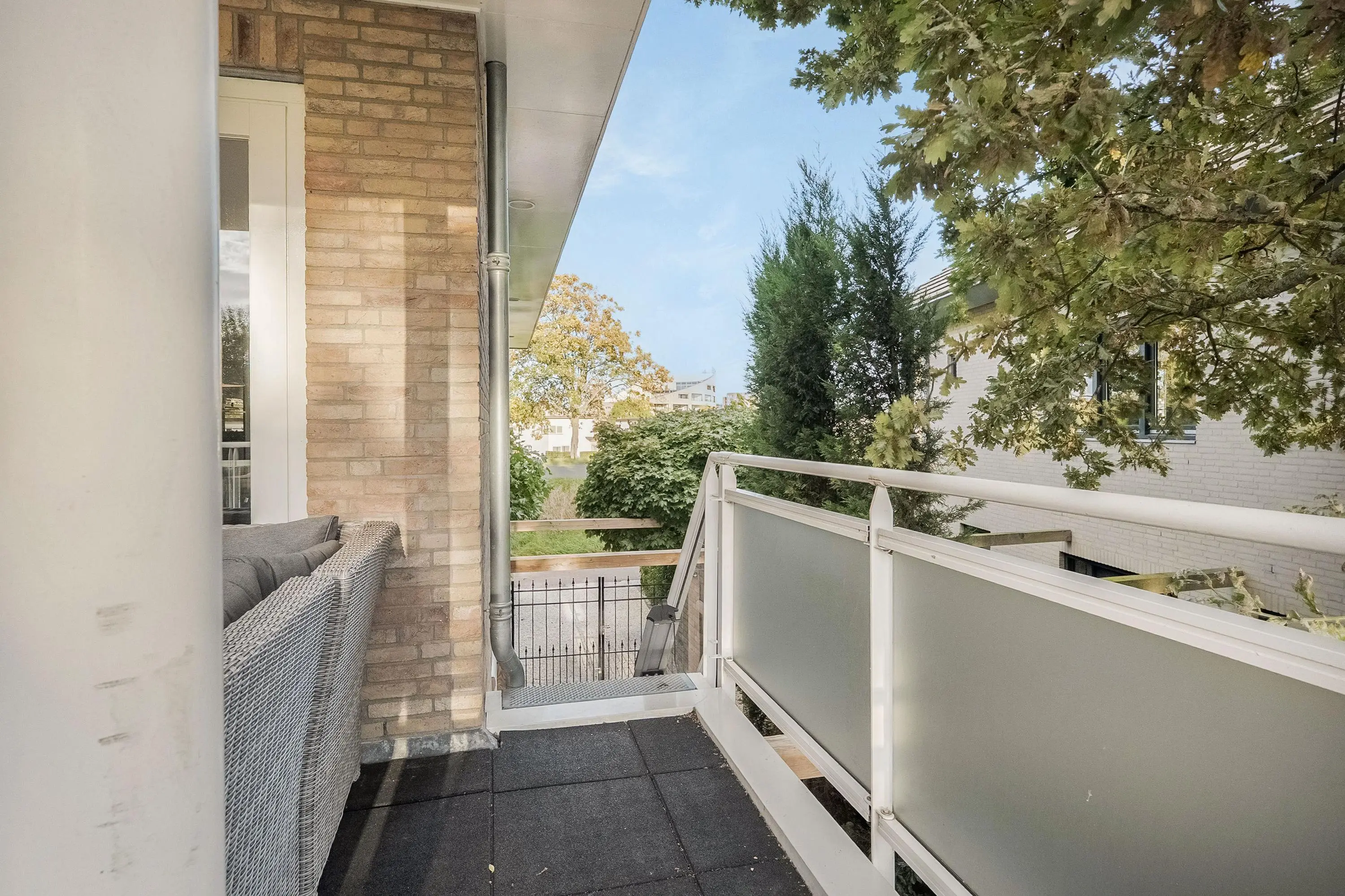 Balkon (ca. 16 m2) is gelegen op het zuiden en biedt toegang tot de achtertuin via een trap.