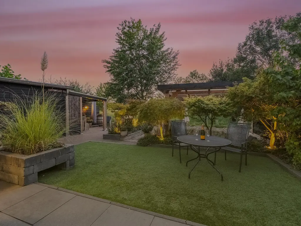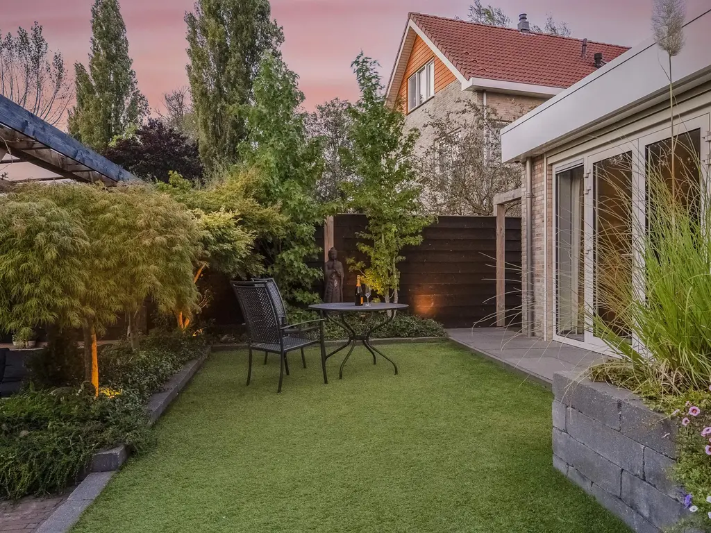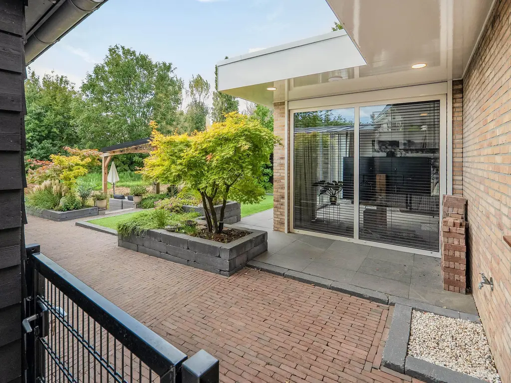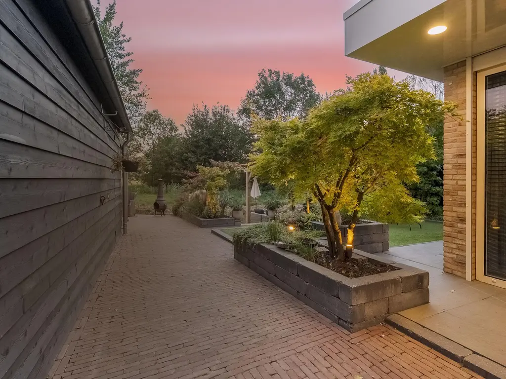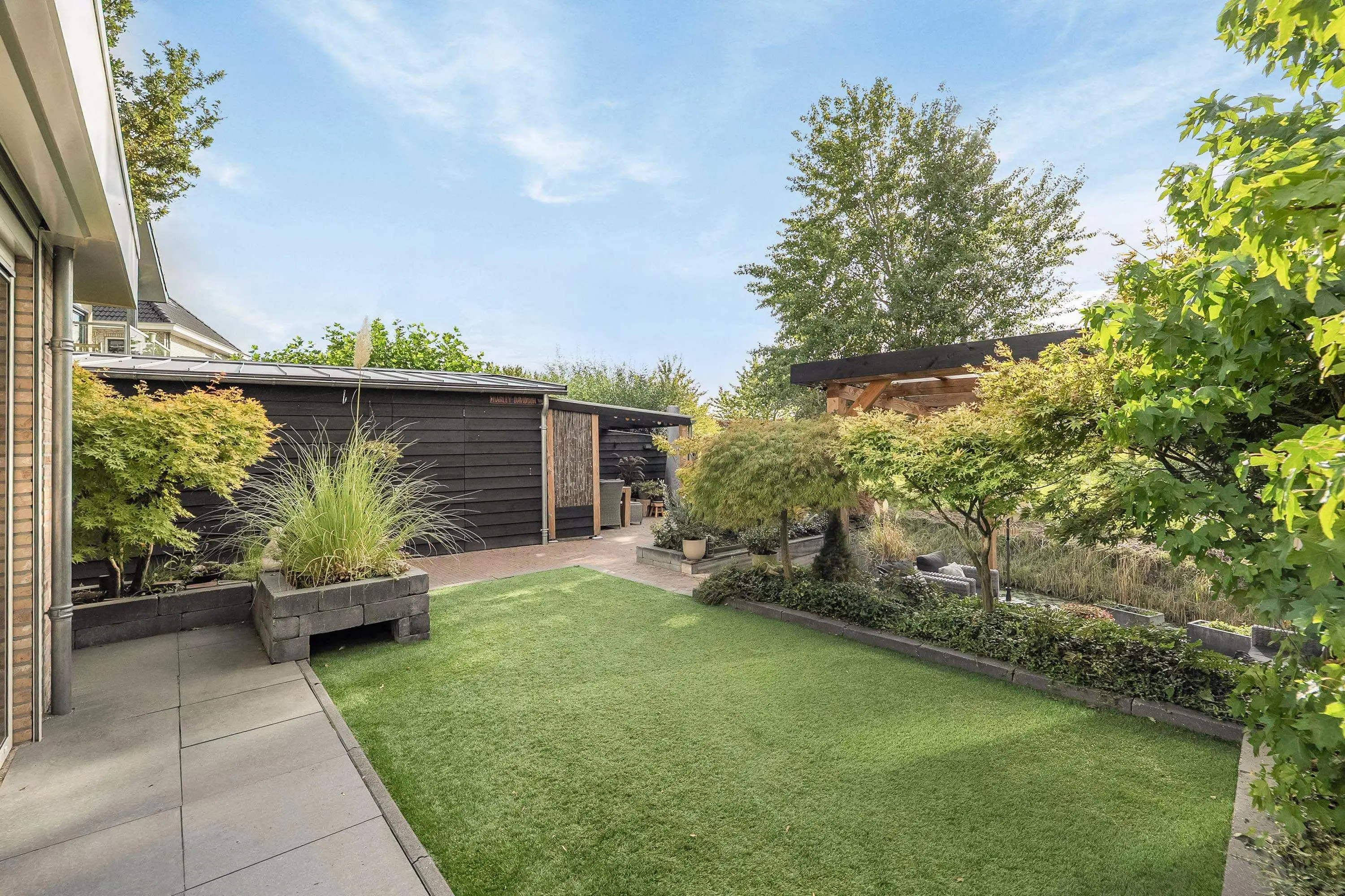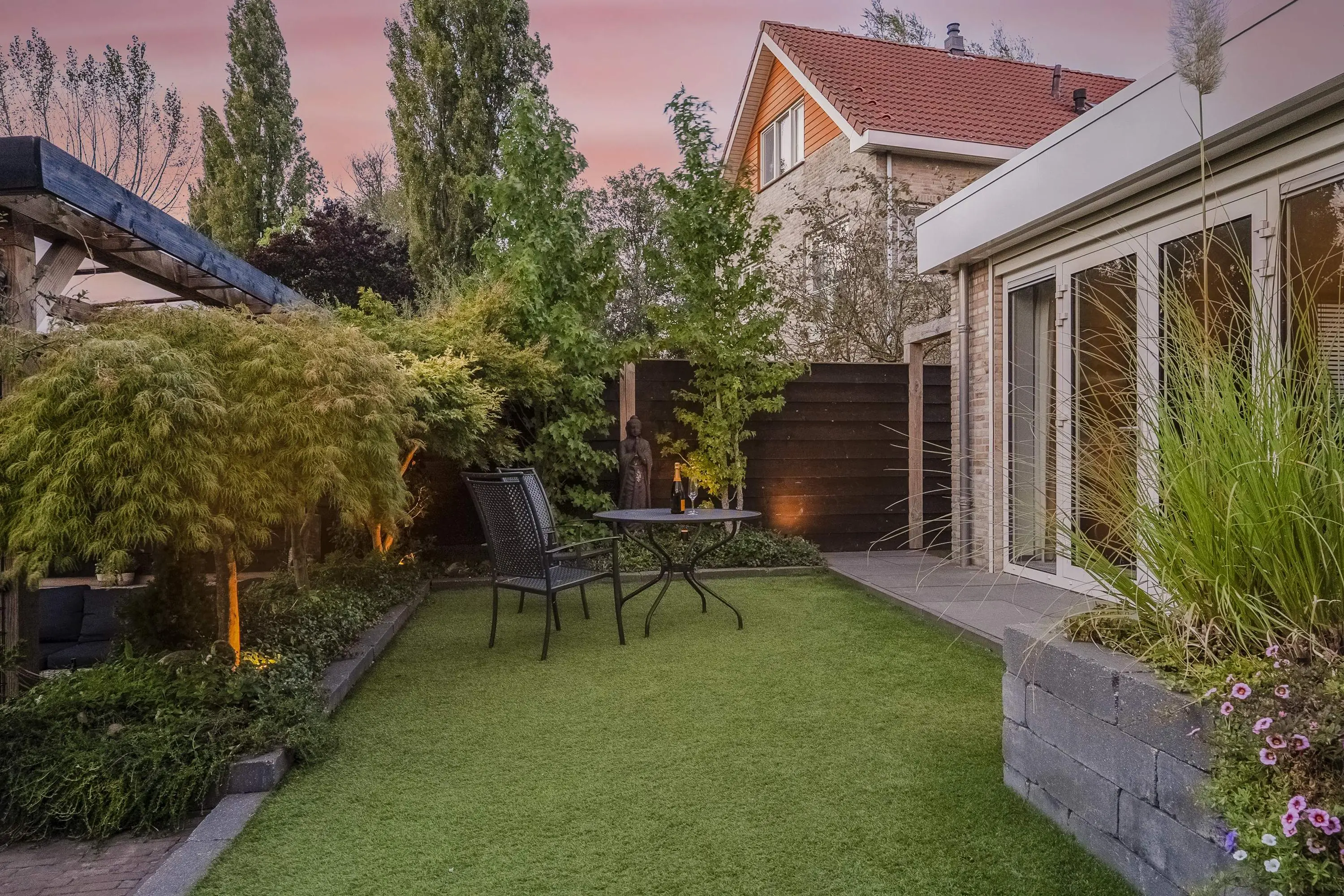 De achtertuin grenst aan het water en vanaf de tuin kijkt u uit over een uniek landschap waar talloze vogelsoorten hun thuis hebben gevonden, van zangvogels tot watervogels. Tussen het riet en de oevers leven bijzondere planten en kleine dieren die dit gebied extra karakter geven. In elk seizoen biedt de natuur een nieuw schouwspel – van bloeiende flora in de lente tot het zachte gefluit van vogels in de vroege ochtend. Deze prachtige achtertuin ligt op het zuiden en beschikt verder over een sproeisysteem, sfeerverlichting, kunstgras, sierbeplanting, verschillende terrassen, waterkraan, stopcontacten en een tweede overkapping aan de waterkant.