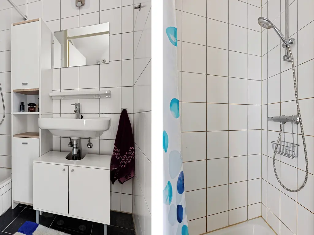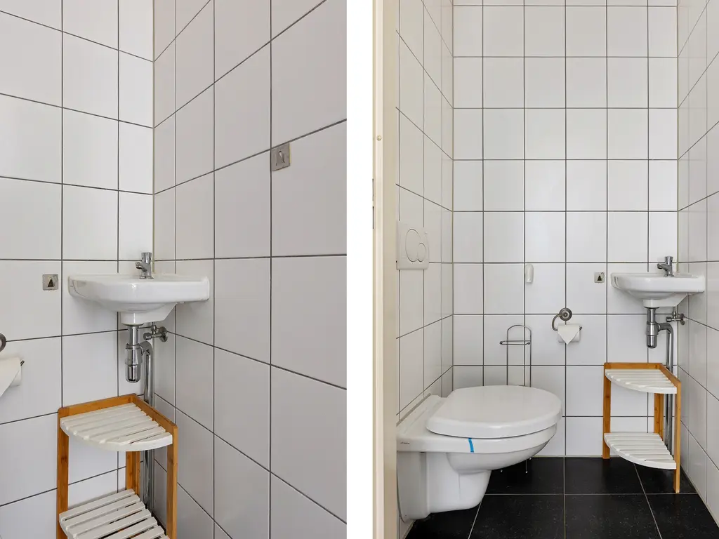 De badkamer is uitgevoerd in tijdloos wit-zwart tegelwerk en beschikt over een douche en een wastafel, zodat je hier nog jarenlang van kunt genieten.