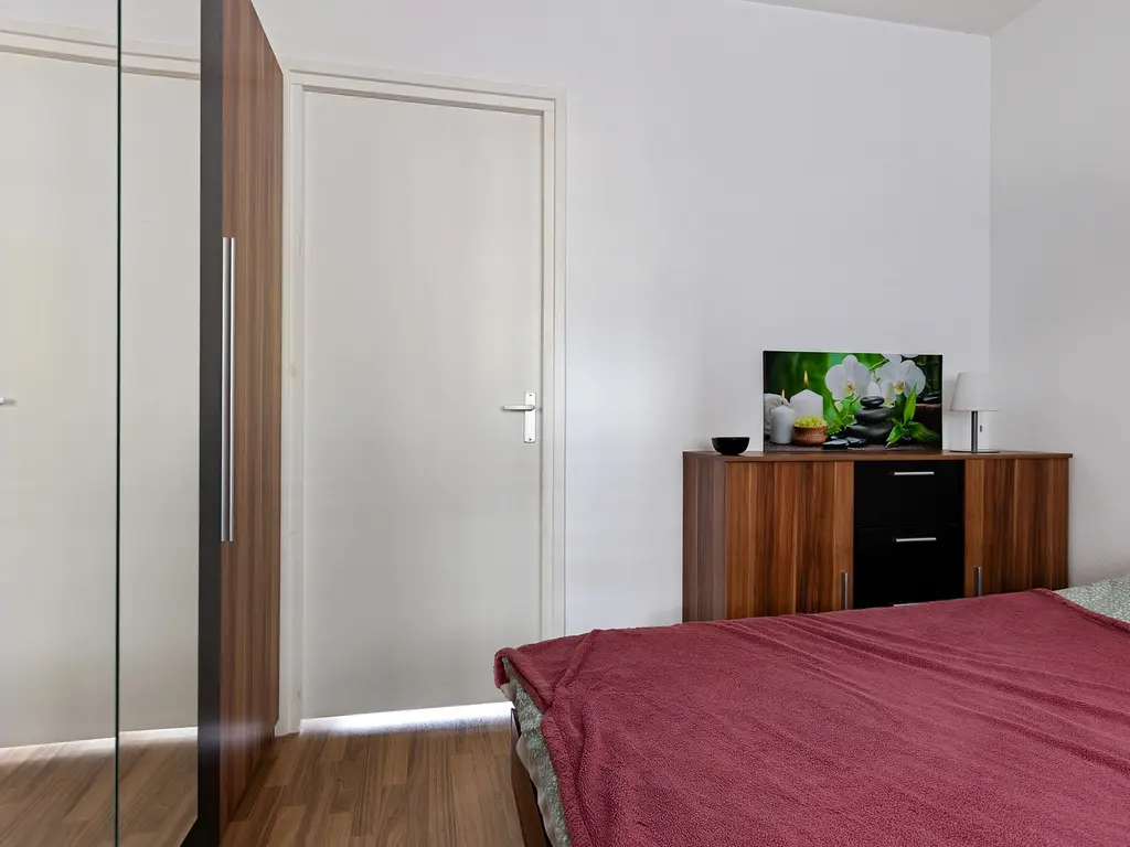 De slaapkamer is maar liefst 15 m² en biedt ruimte voor een tweepersoonsbed en een kledingkast.