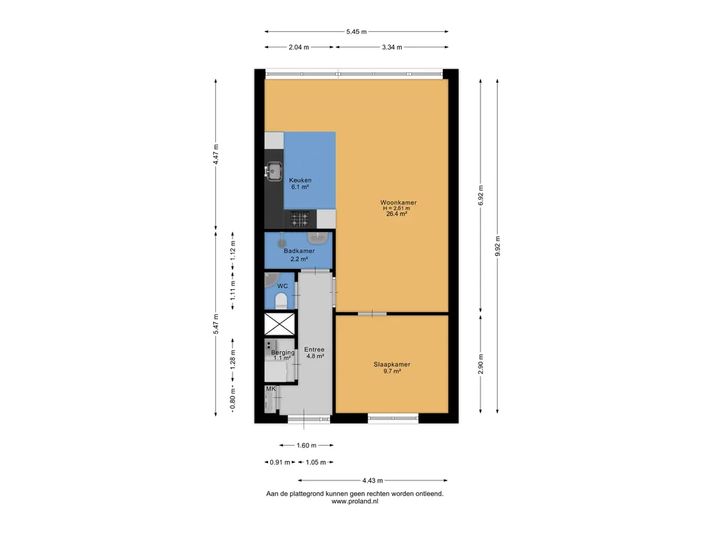 -1 slaapkamer, 1 badkamer, 1 afzonderlijk toilet