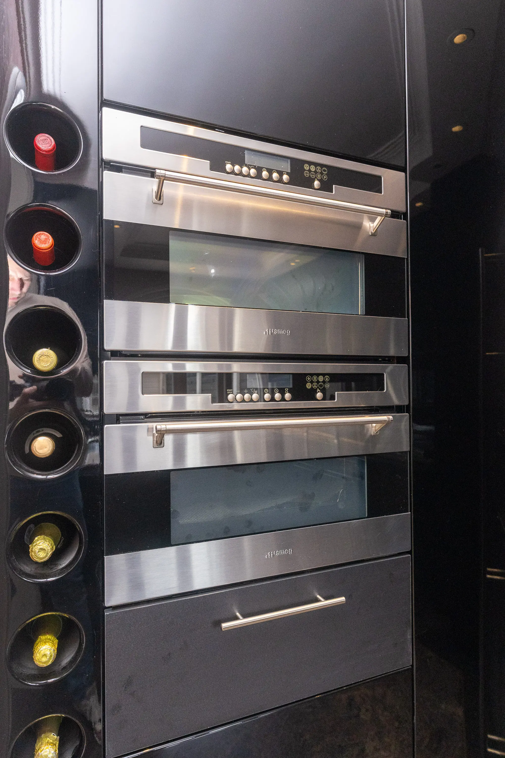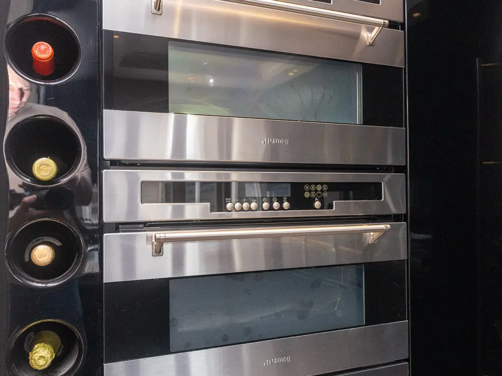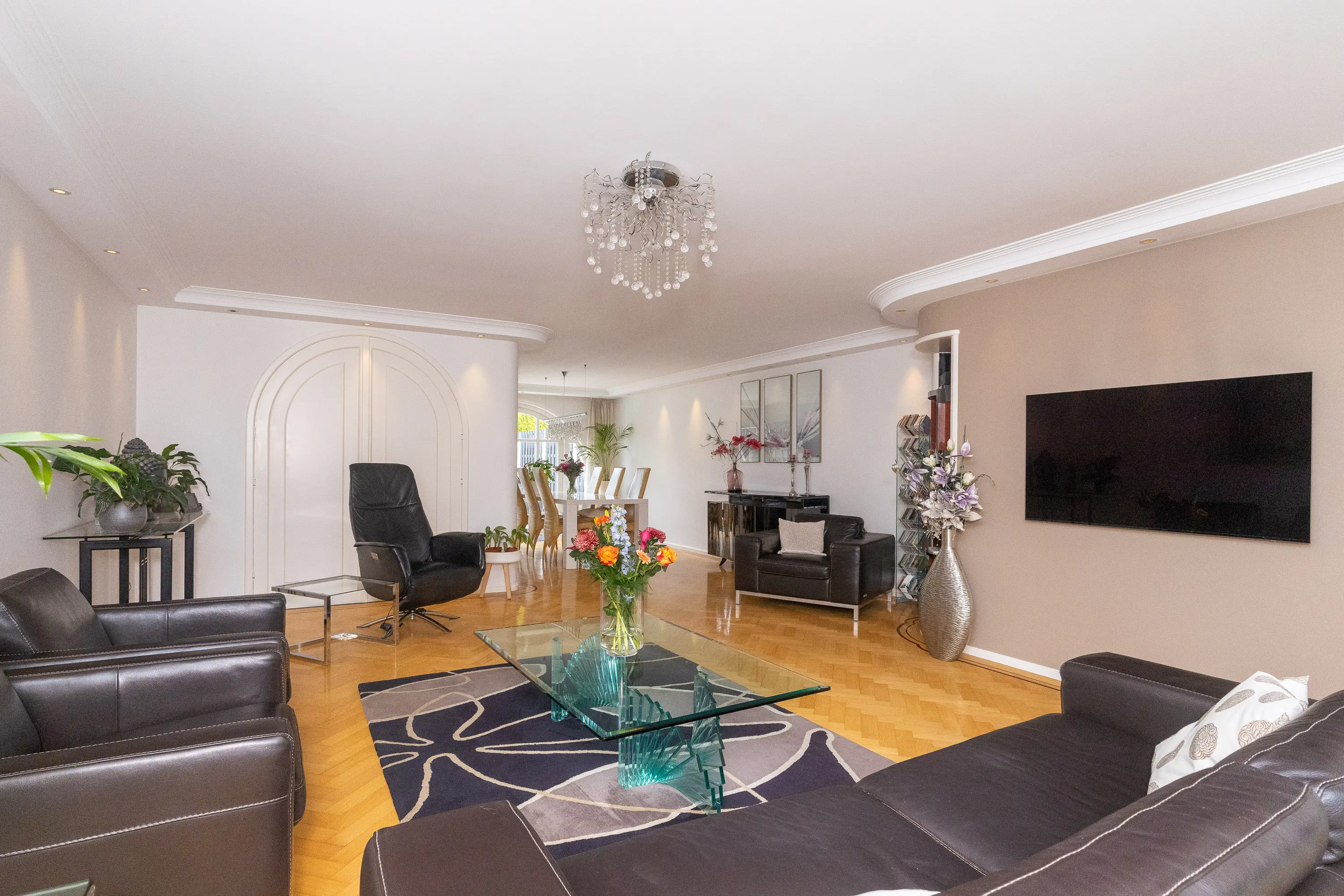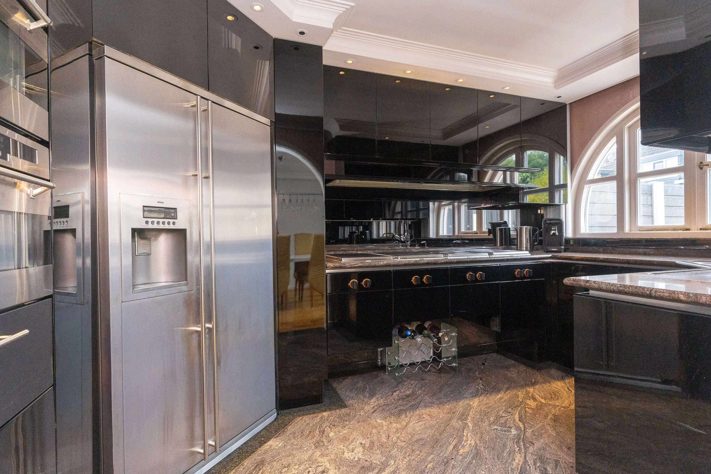 Achterin de woonkamer is de eethoek gesitueerd, met een directe verbinding naar de zonnige tuin op het zuidwesten via openslaande deuren. Naast de eethoek bevindt zich de luxe keuken. Aan kwaliteit geen gebrek: merkapparatuur, oven, combioven, Amerikaanse koelkast, een professioneel breed afzuigsysteem (extra krachtig), vernieuwde vaatwasser, een 8-pits fornuis en een fraai granieten aanrechtblad. Hier wordt koken een ware beleving. De keuken is bovendien voorzien van vloerverwarming, wat bijdraagt aan het comfort.