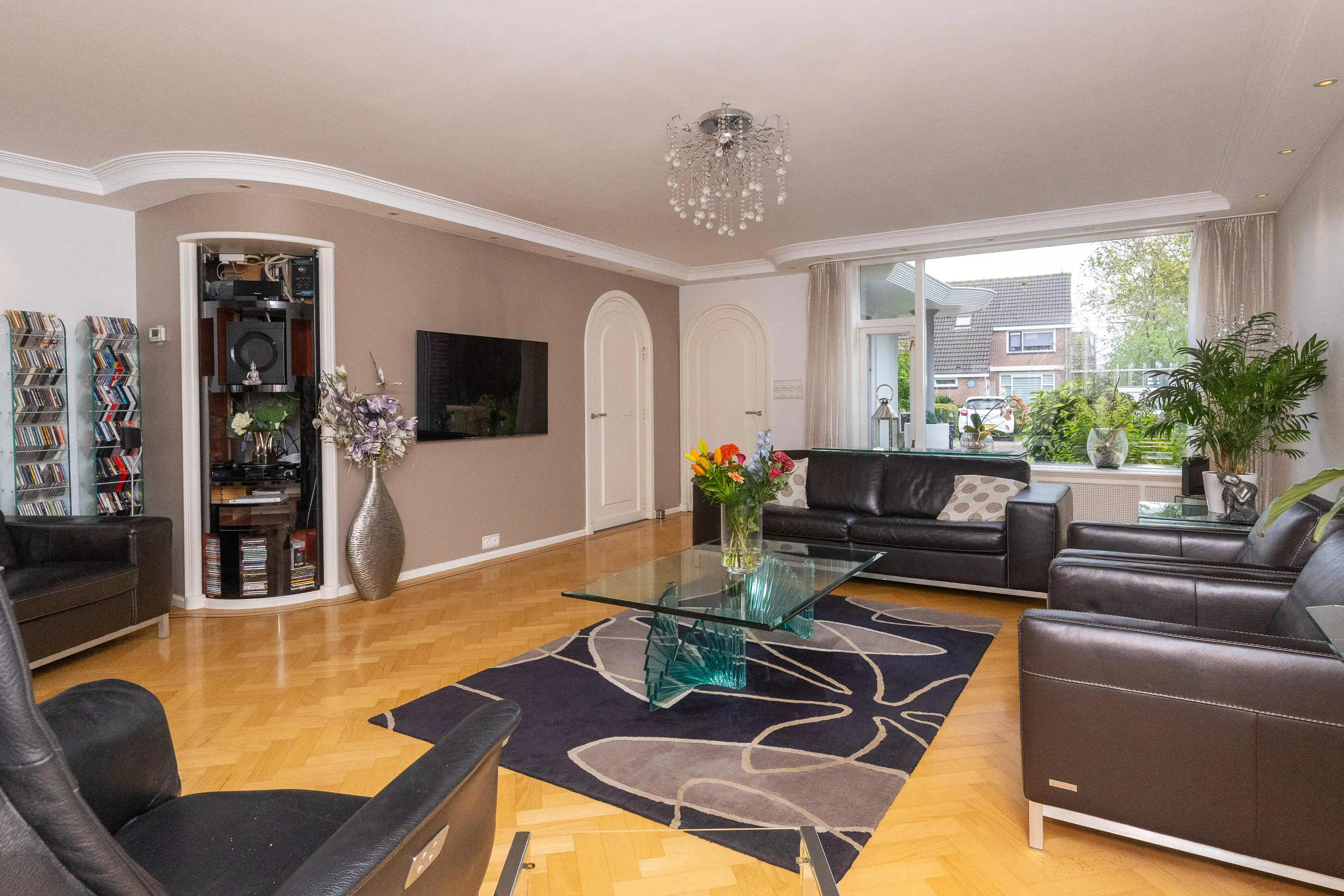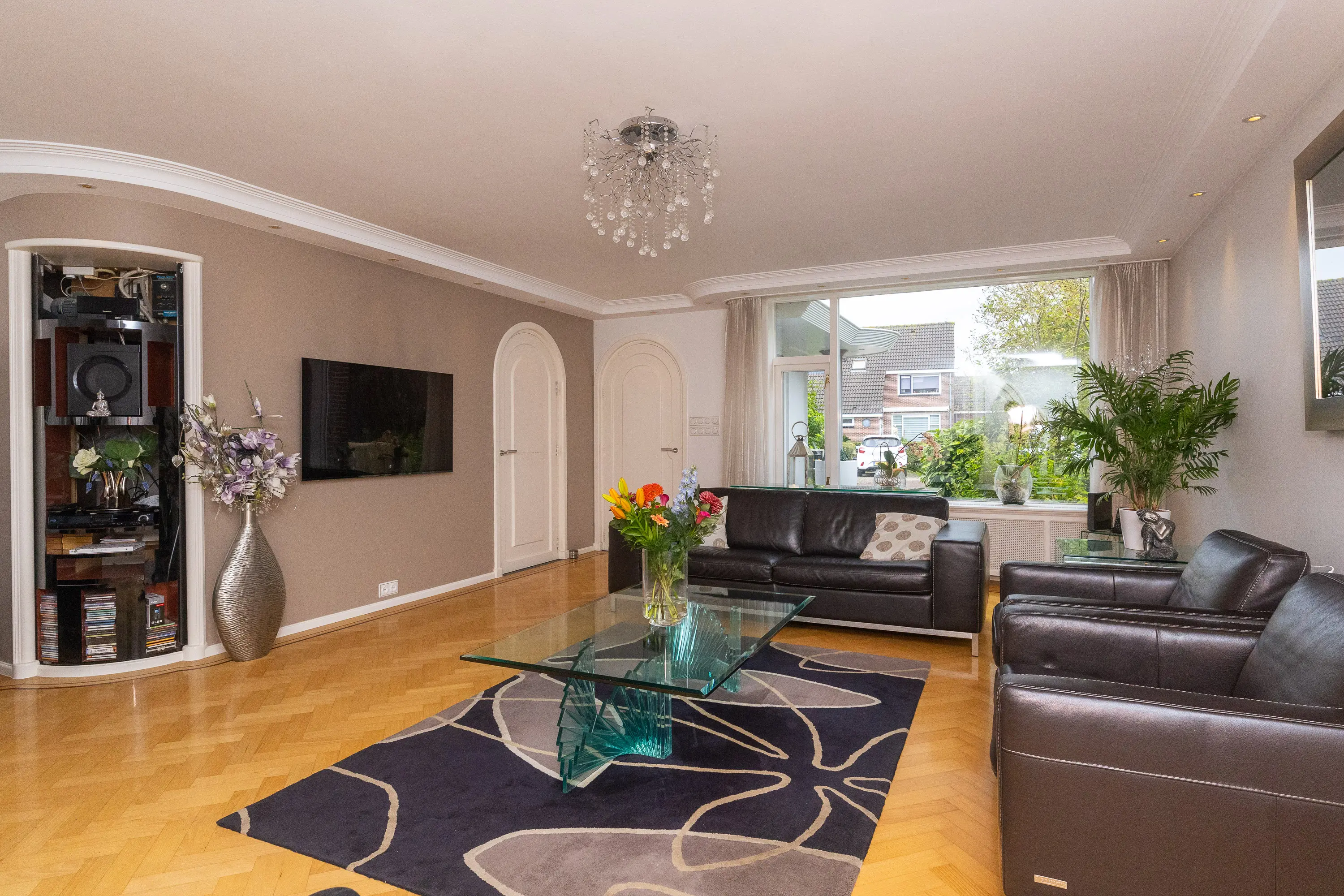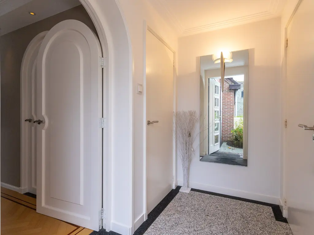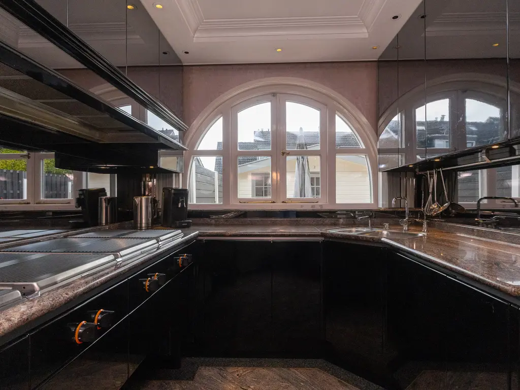 Overal in de woning komen de architectonische ronde vormen terug. Beginnend bij de statige entree aan de voorzijde, zowel in de woning, in het op maat gemaakte meubel, de ronde vormen in de afwerking, de deuren van de kasten, de keuken, de achterdeur en zelfs in de kozijnen. Alles ademt stijl, karakter en een uniek gevoel van harmonie.