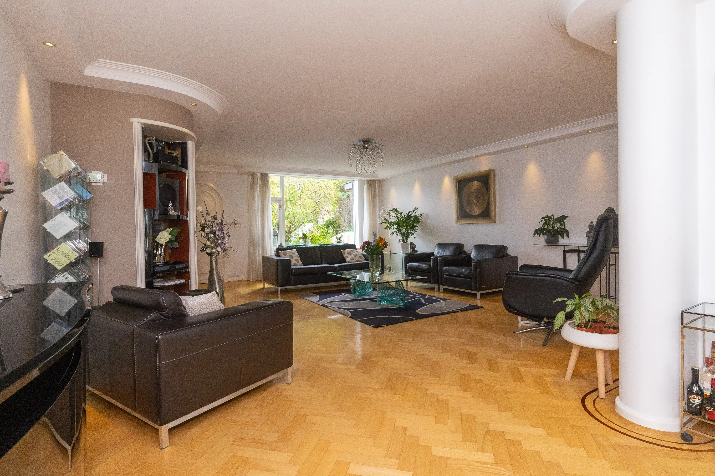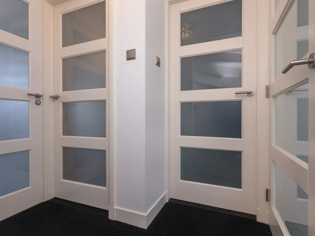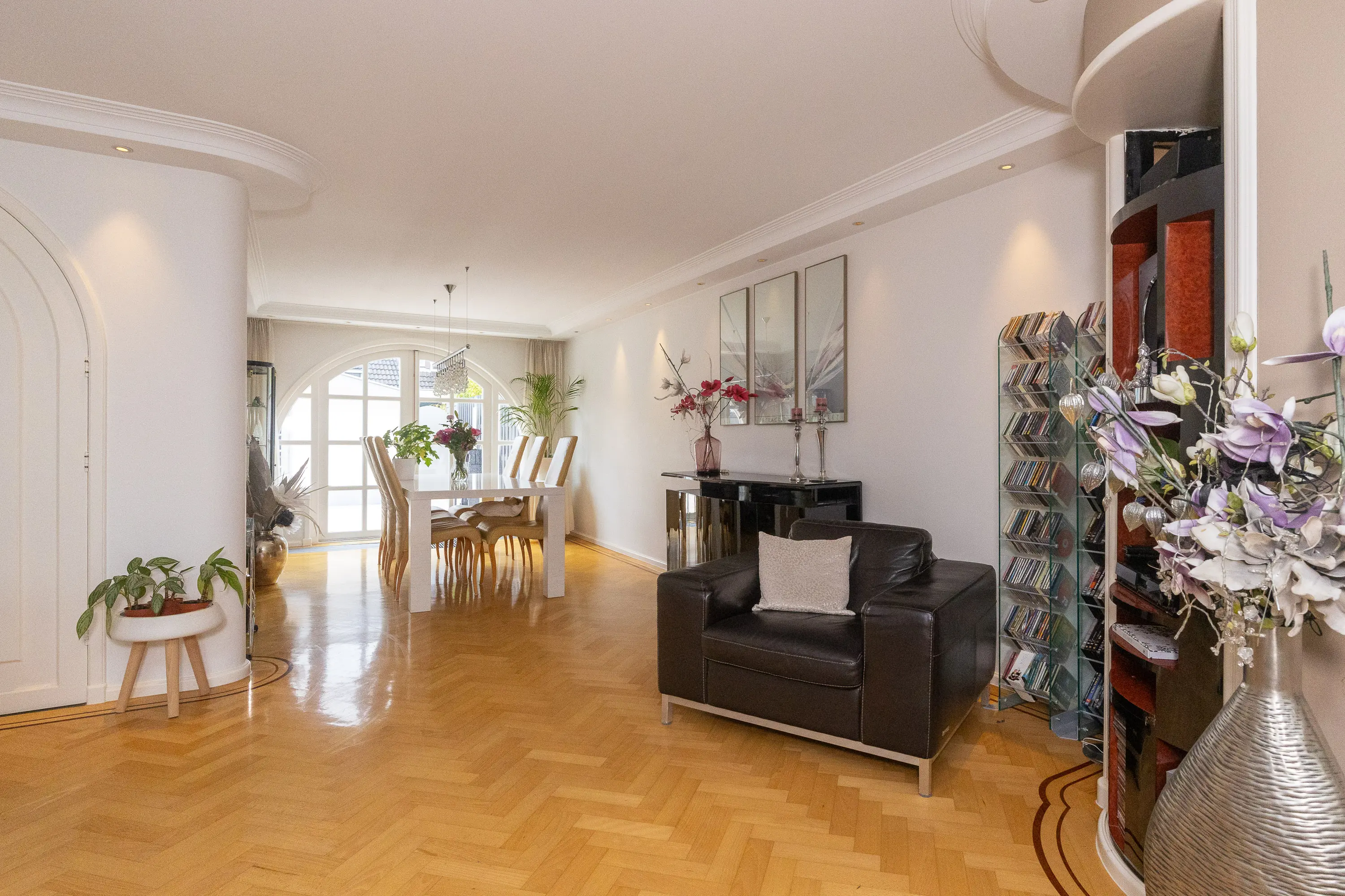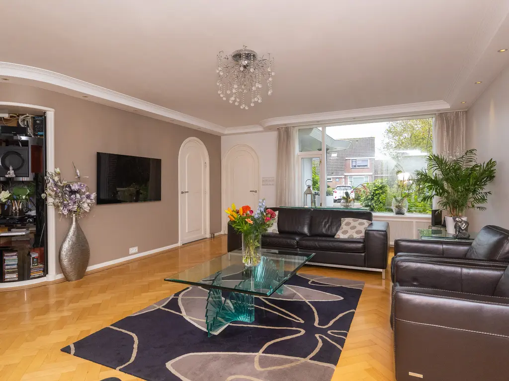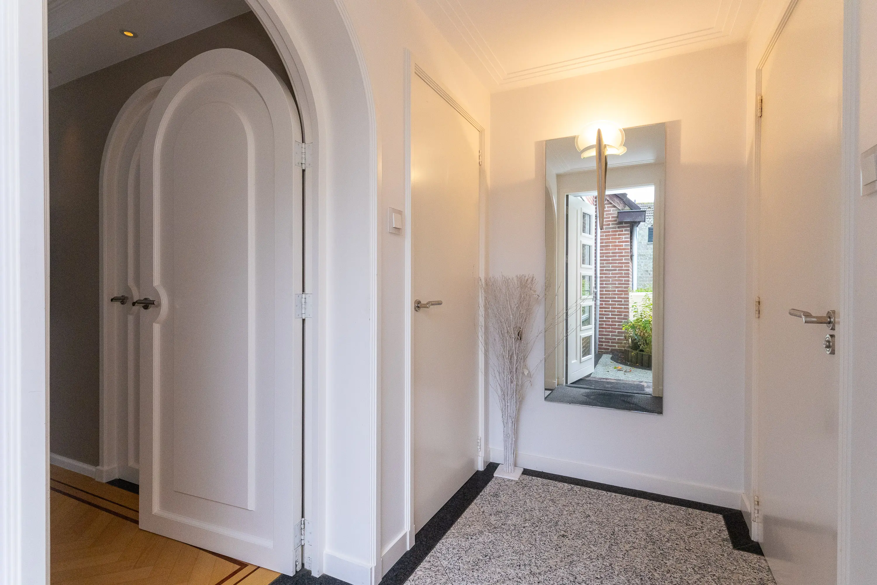 Overal in de woning komen de architectonische ronde vormen terug. Beginnend bij de statige entree aan de voorzijde, zowel in de woning, in het op maat gemaakte meubel, de ronde vormen in de afwerking, de deuren van de kasten, de keuken, de achterdeur en zelfs in de kozijnen. Alles ademt stijl, karakter en een uniek gevoel van harmonie.