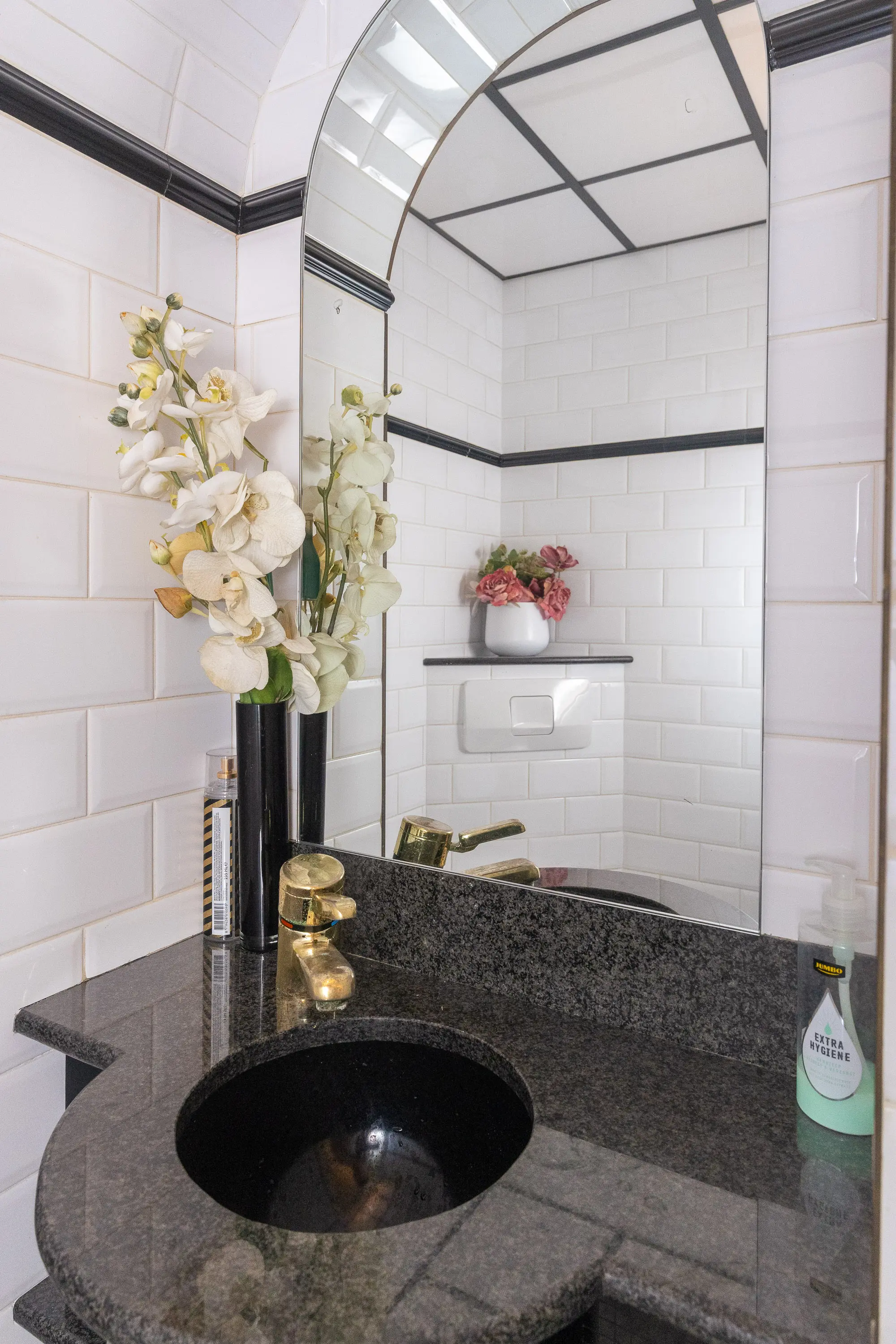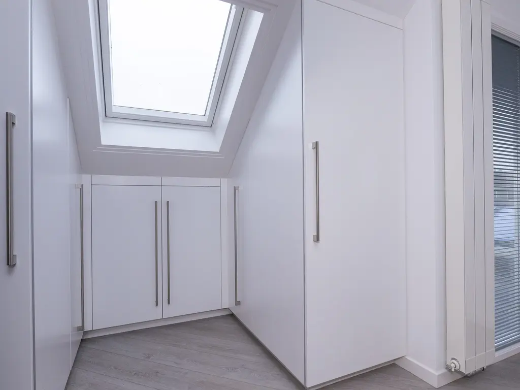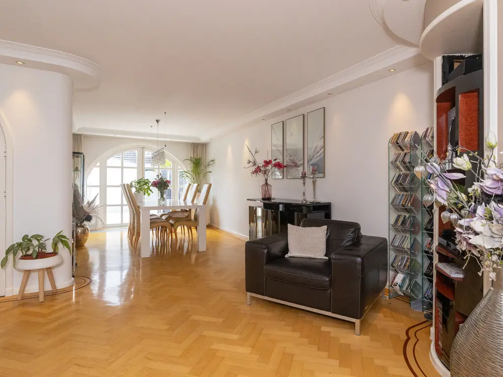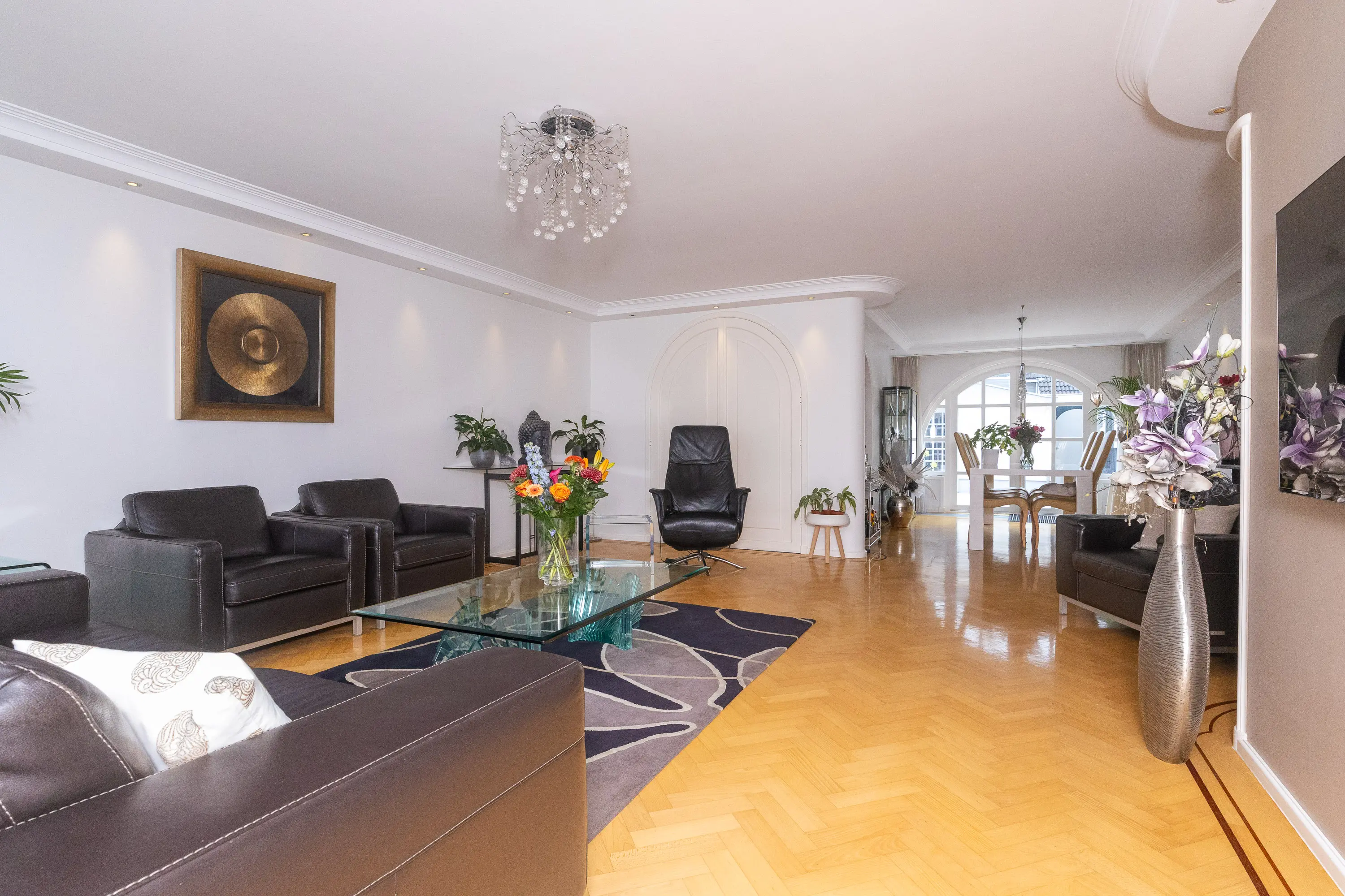 Overal in de woning komen de architectonische ronde vormen terug. Beginnend bij de statige entree aan de voorzijde, zowel in de woning, in het op maat gemaakte meubel, de ronde vormen in de afwerking, de deuren van de kasten, de keuken, de achterdeur en zelfs in de kozijnen. Alles ademt stijl, karakter en een uniek gevoel van harmonie.