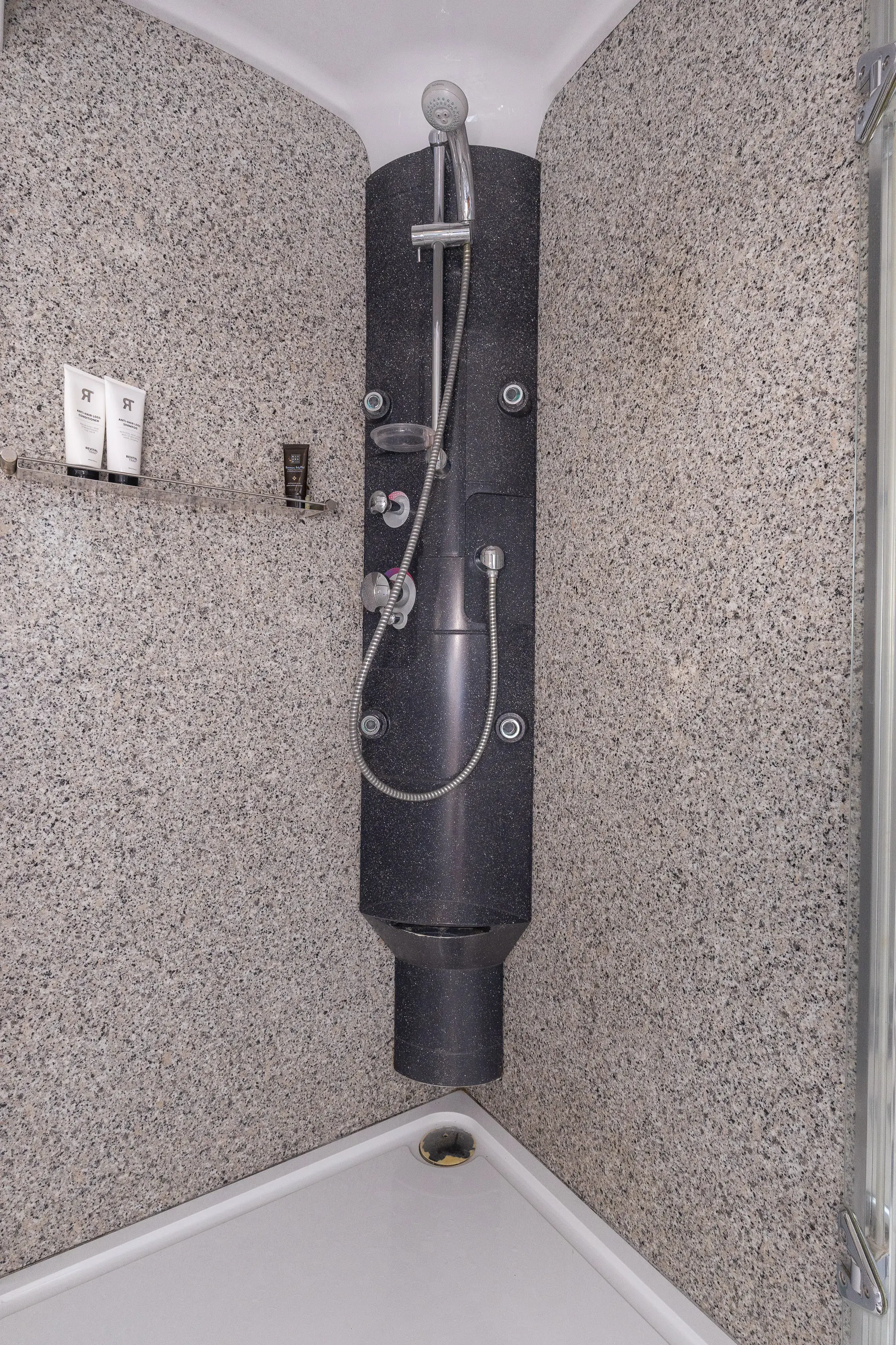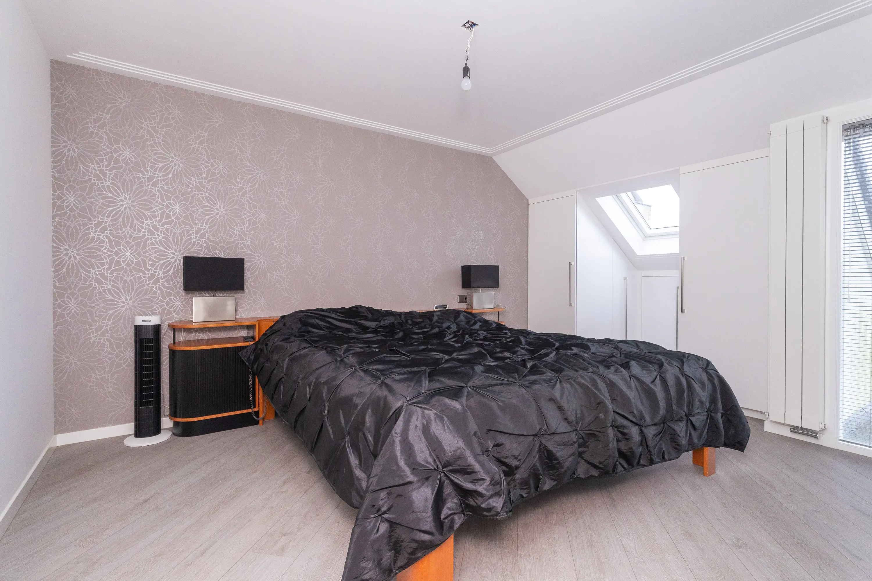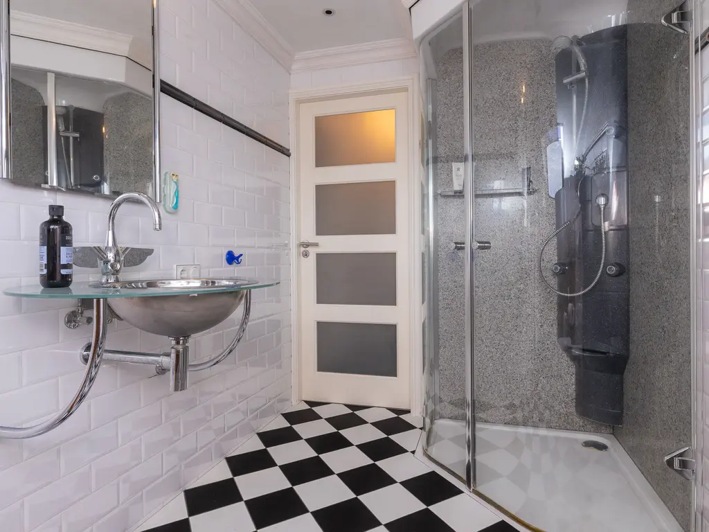 Via het gesloten trappenhuis in de woonkamer bereikt u de eerste etage. Deze is voorzien van drie (slaap-)kamers en een nette badkamer. Aan de achterzijde bevinden zich twee kamers, waarvan de grootste is uitgerust met een dakraam voor extra lichtinval. Aan de voorzijde treft u nog een ruime slaapkamer en de badkamer, voorzien van een inloopdouche, wastafel, toilet, dakraam en nette afwerking, inclusief een granieten wandradiator die perfect past bij de stijl van de woning.